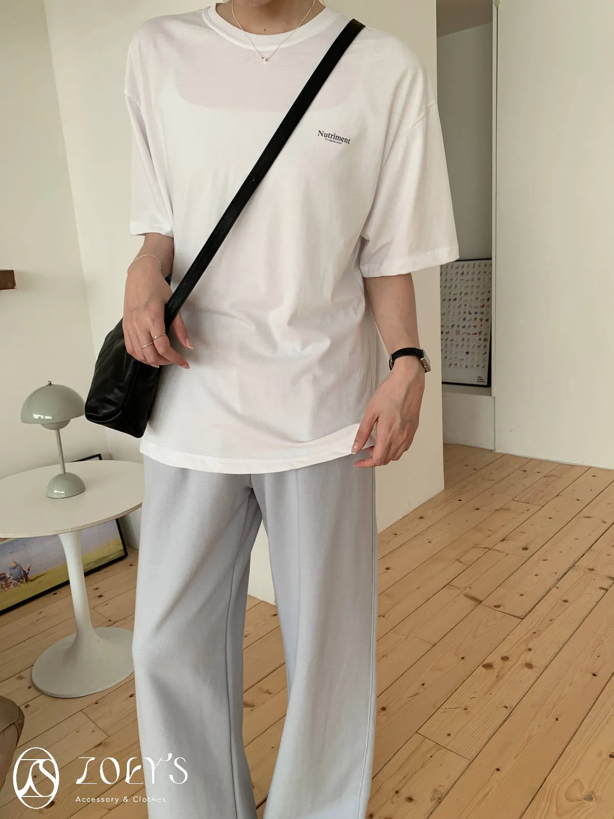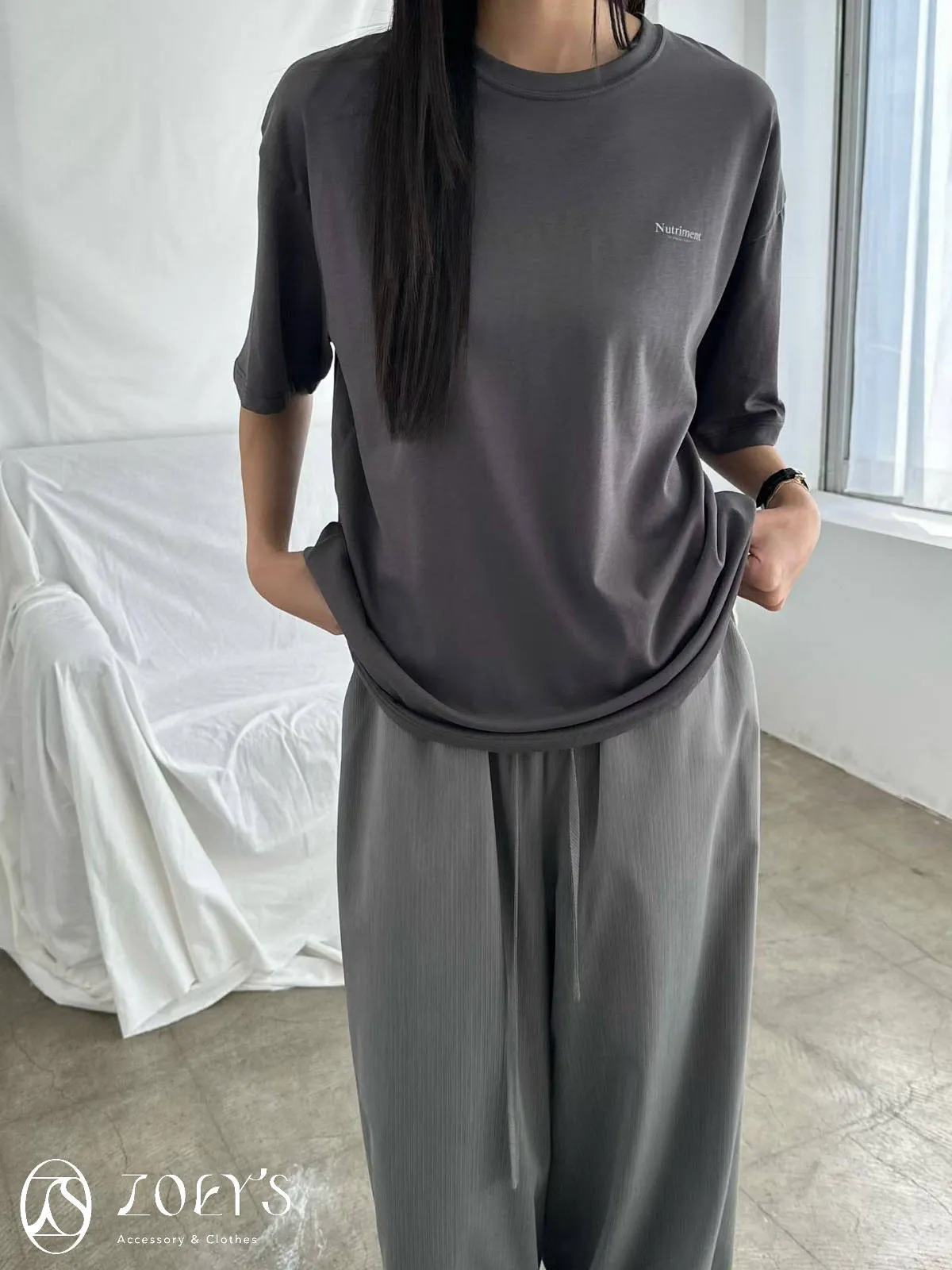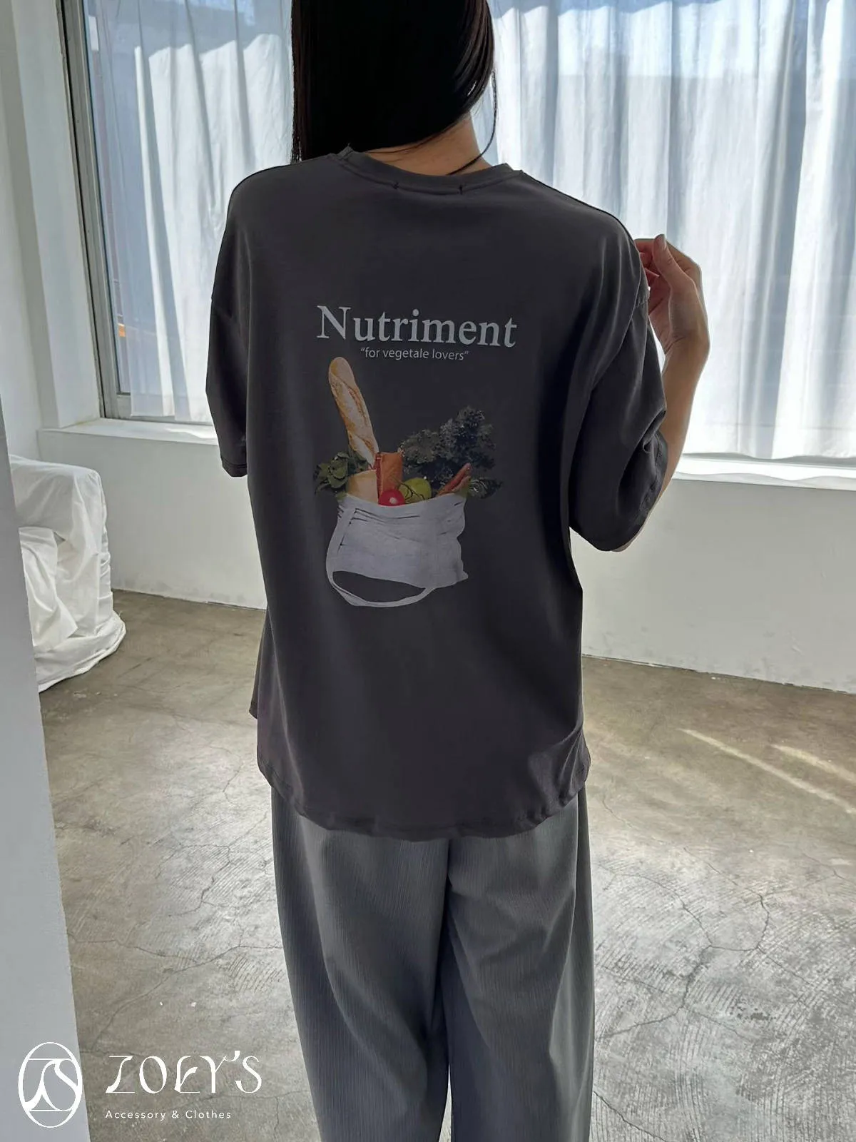 正韓 Nutriment薄棉T 深灰/白