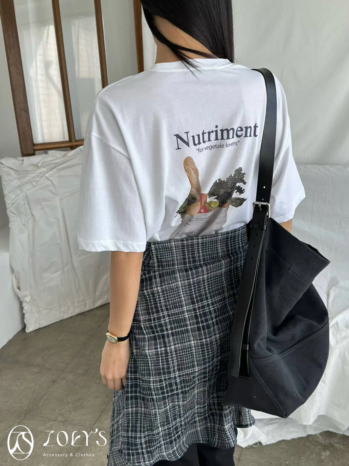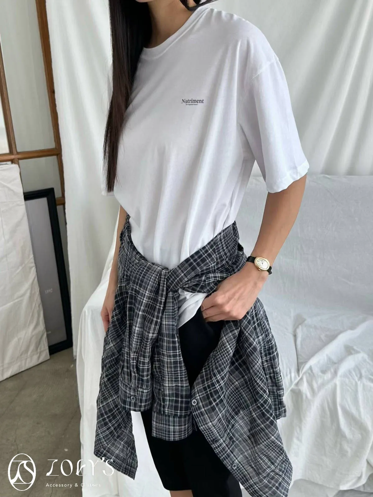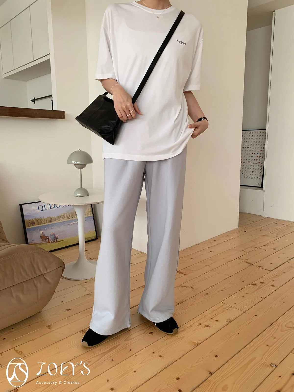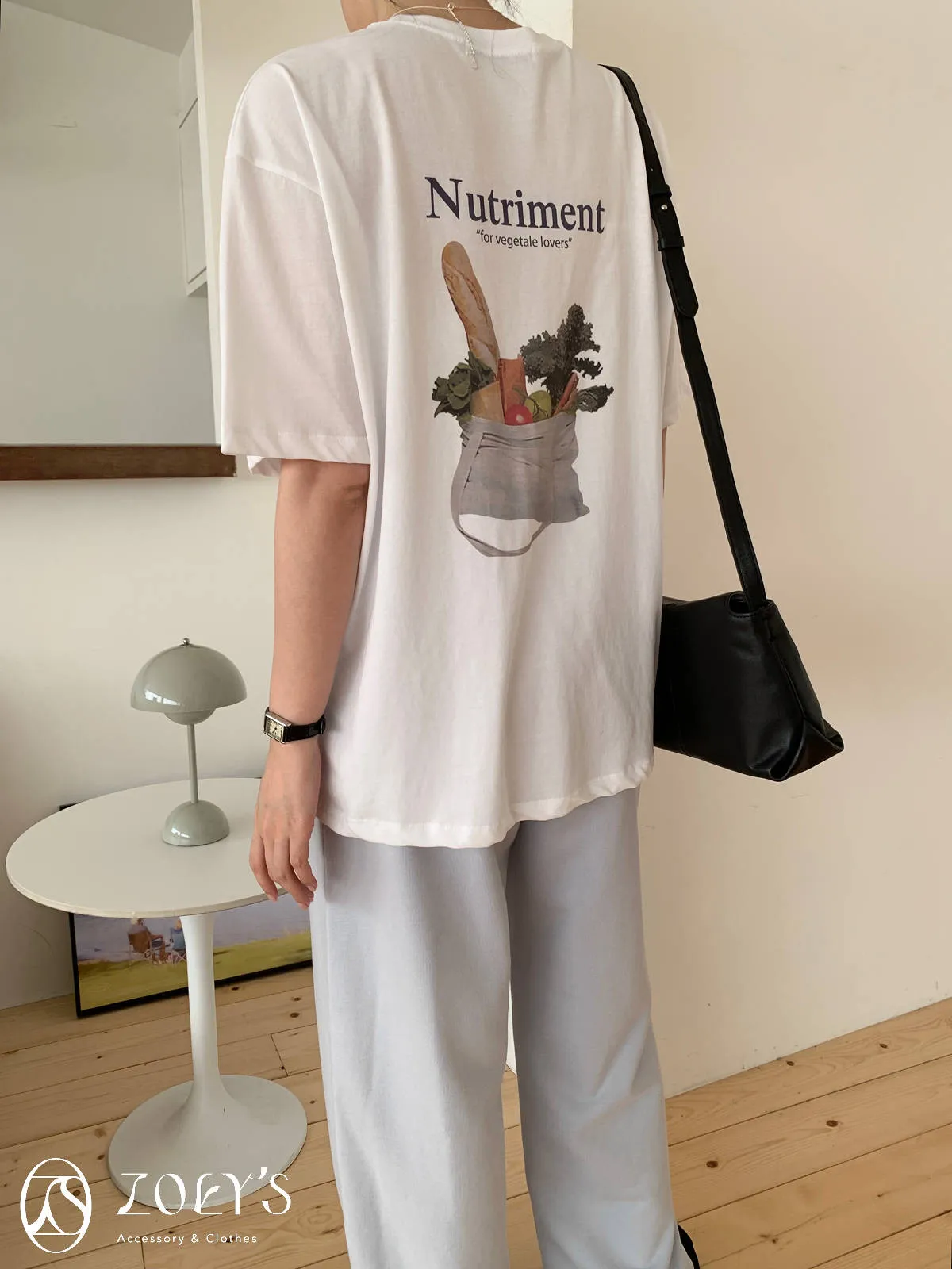 正韓 Nutriment薄棉T 深灰/白