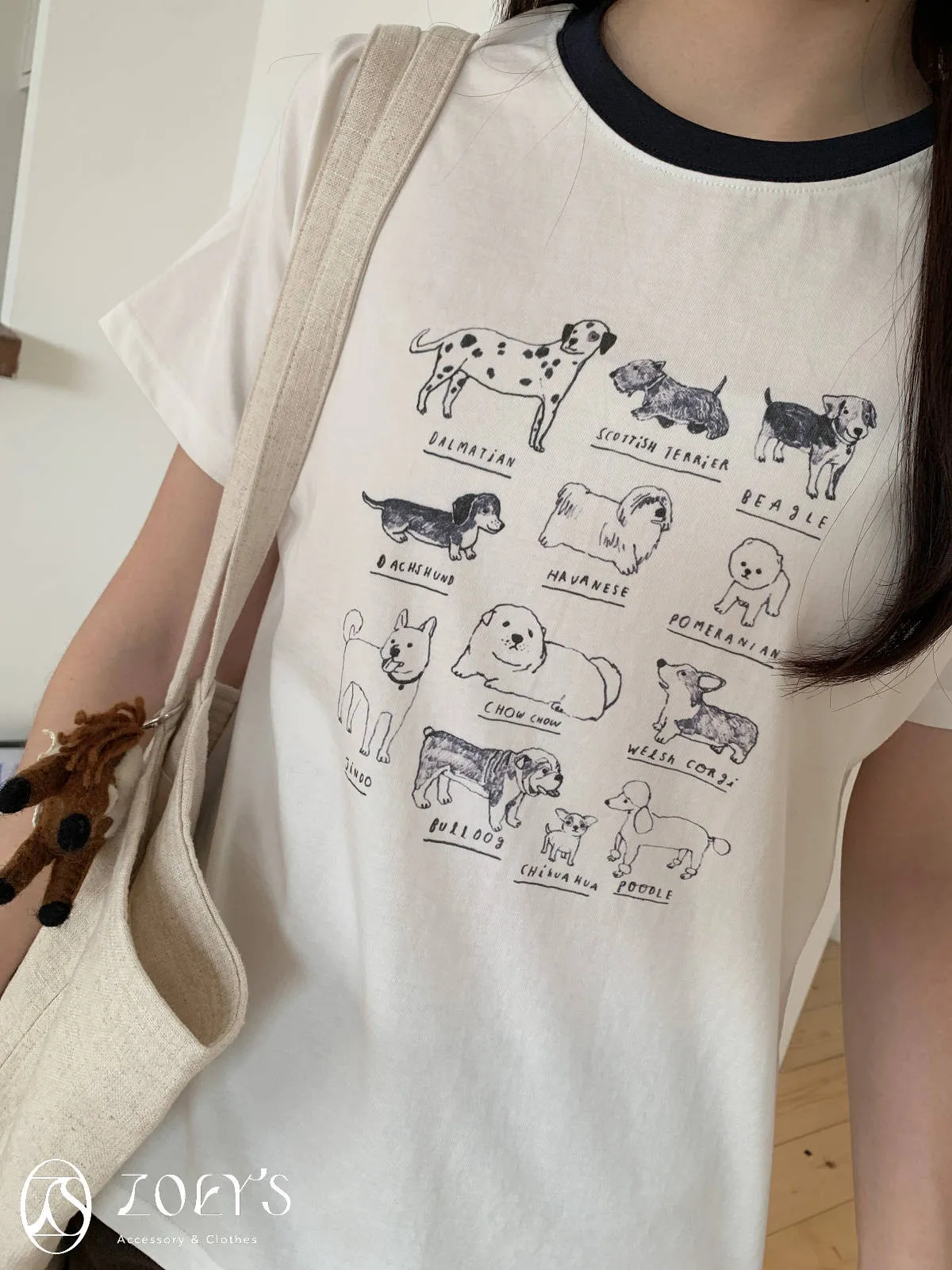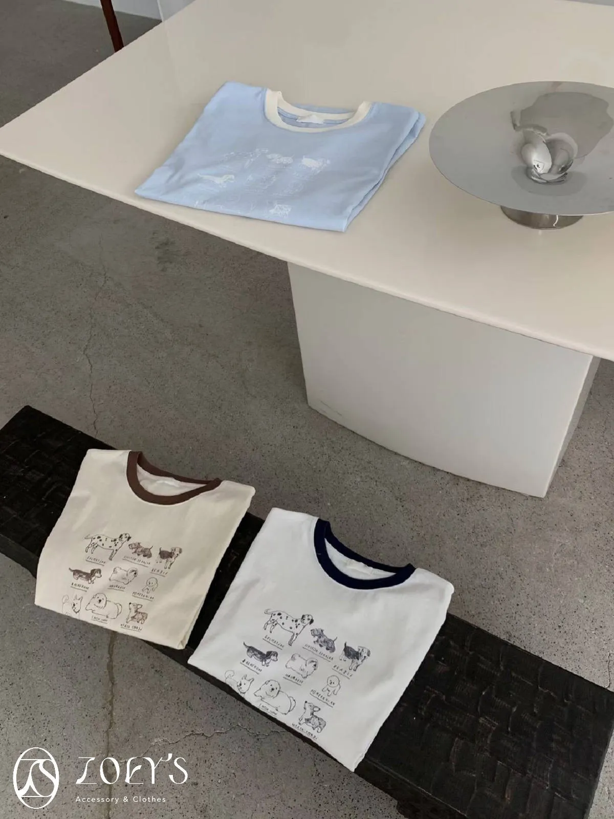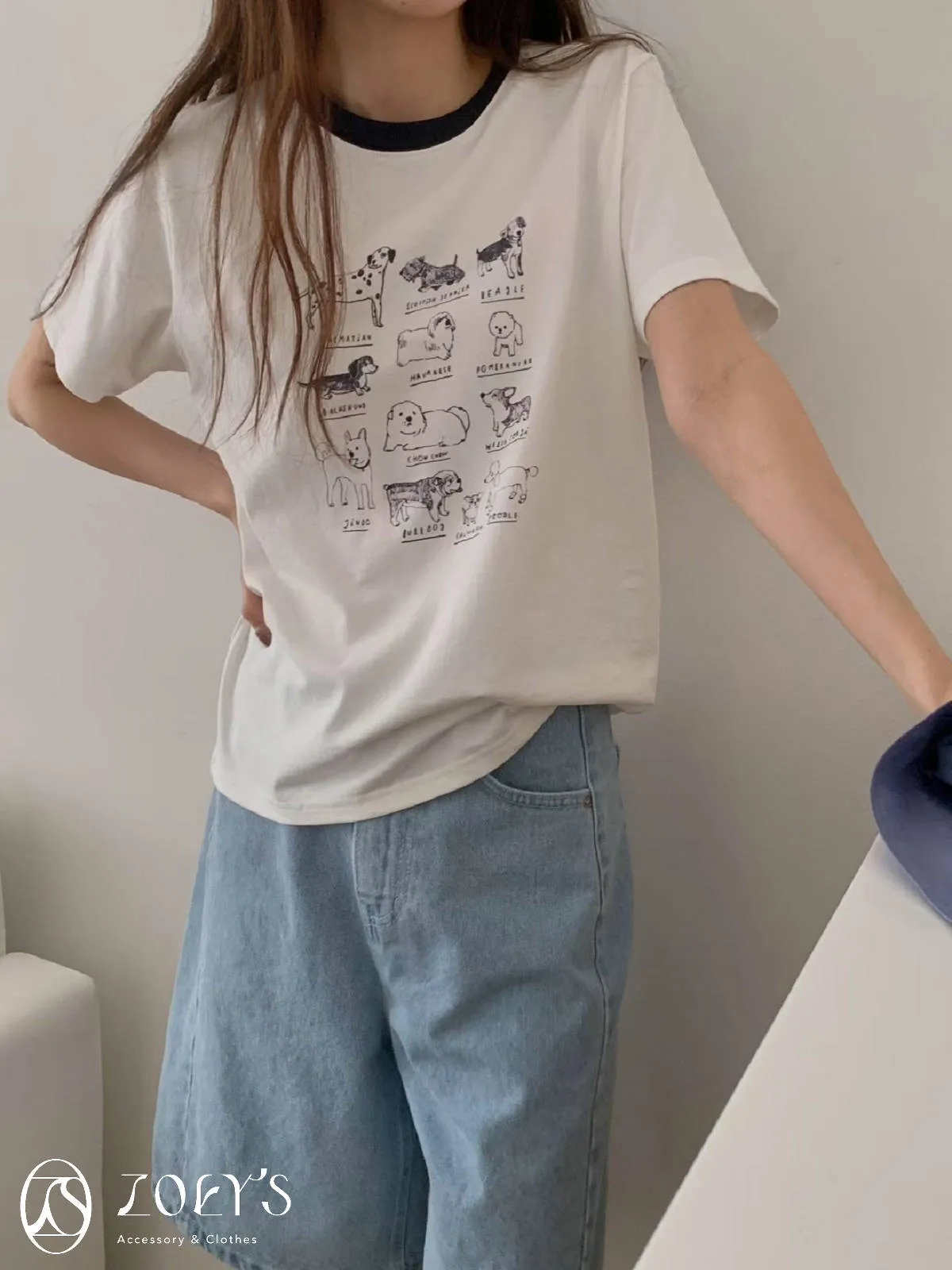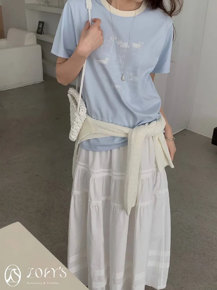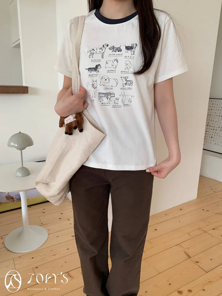 正韓 極Q狗狗圖鑑T 水藍/白/米
