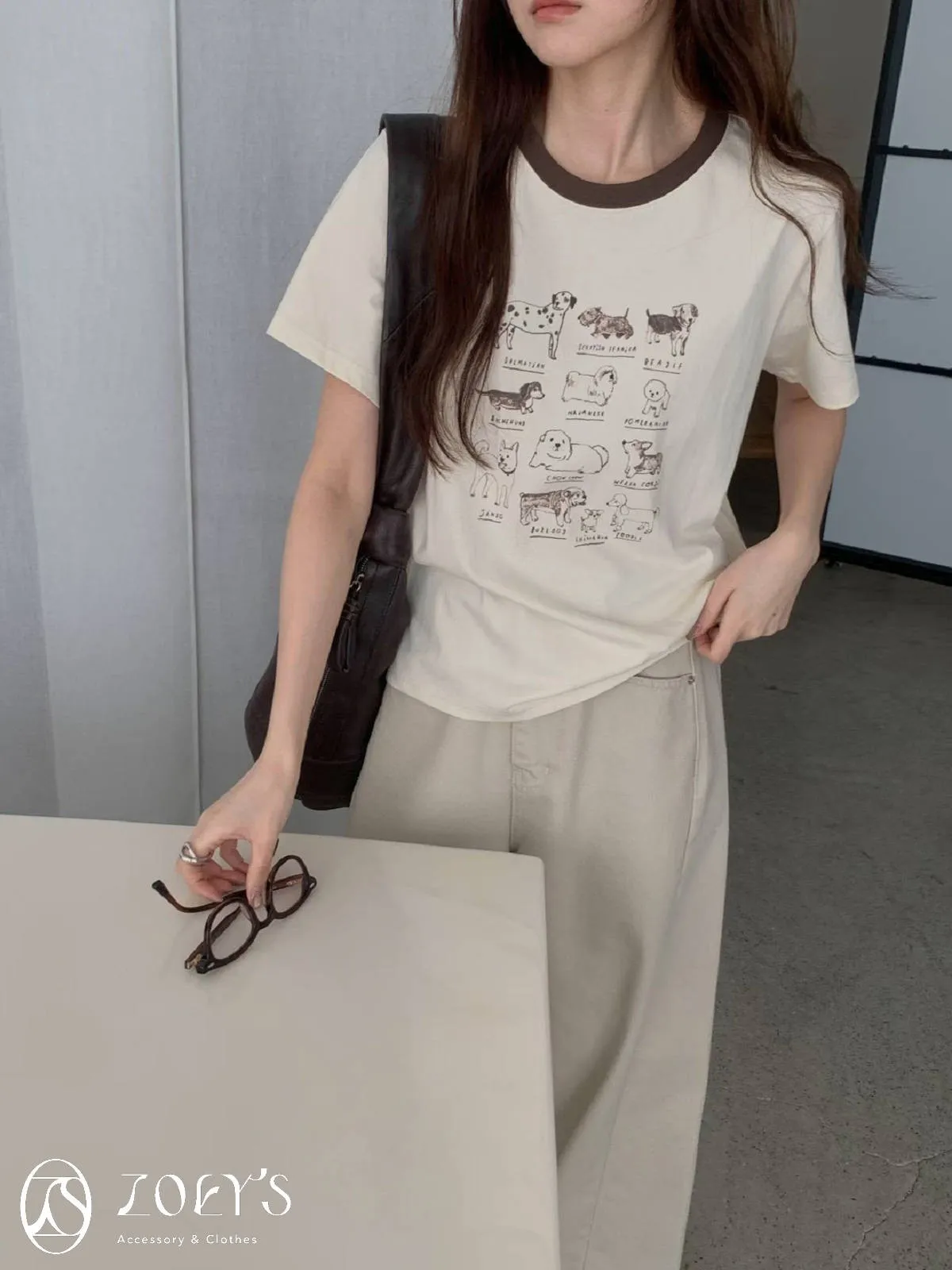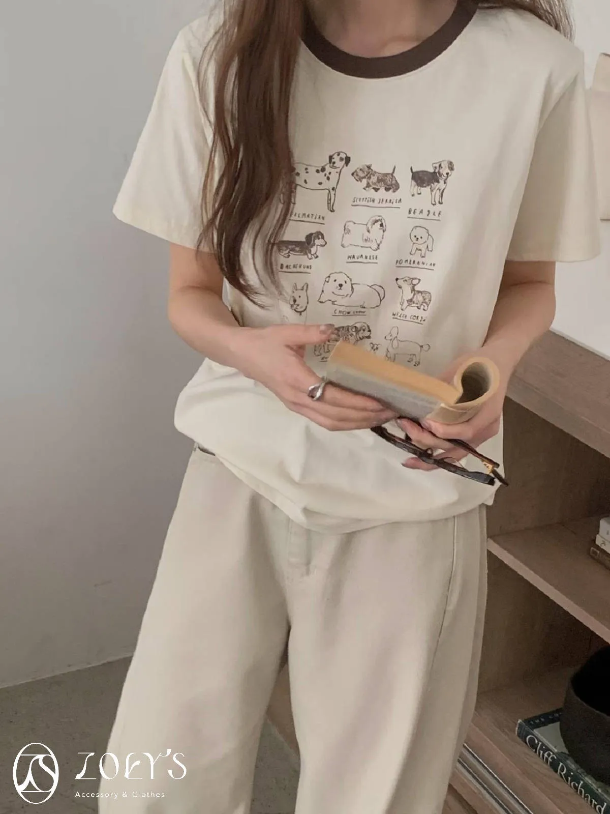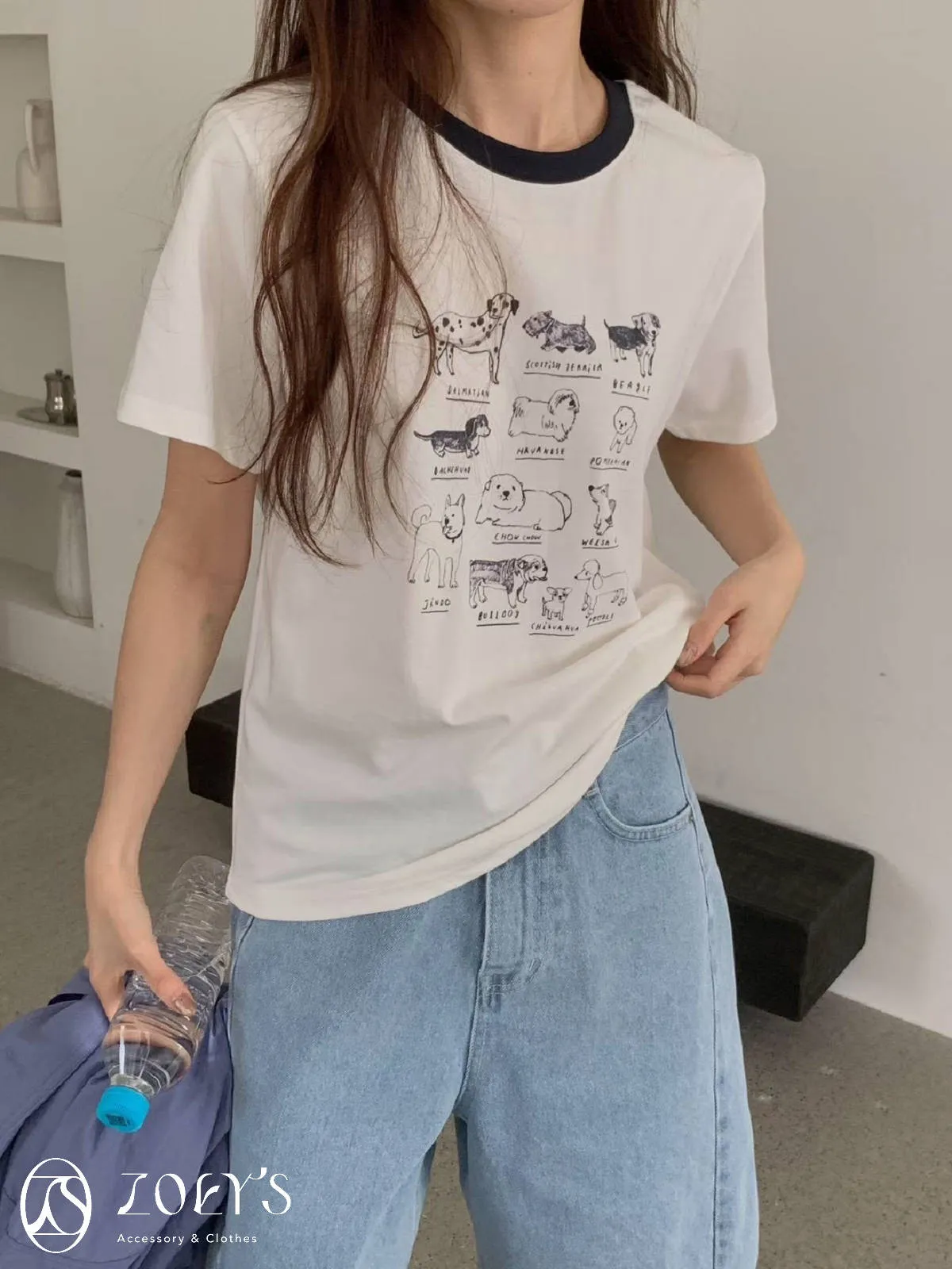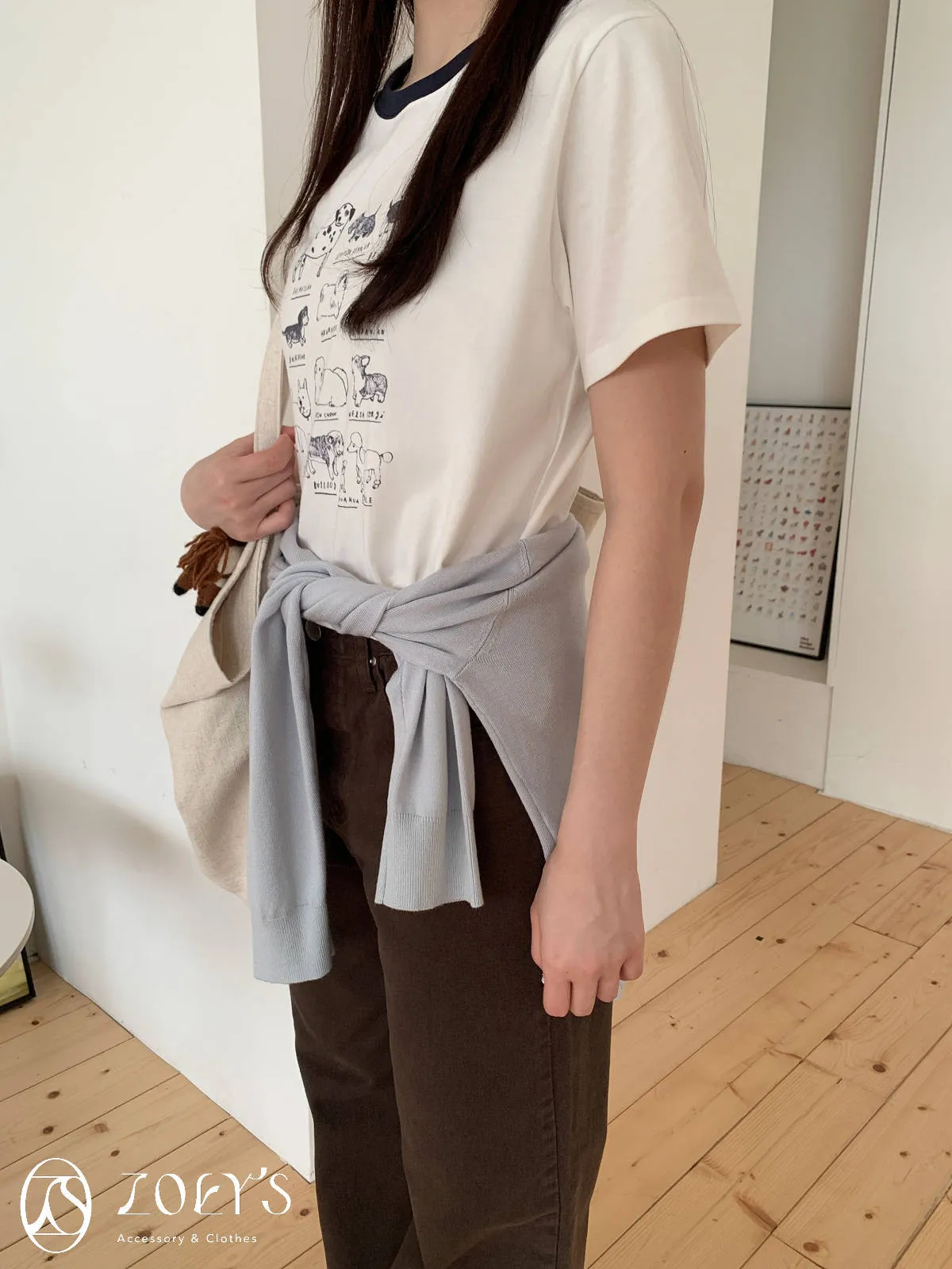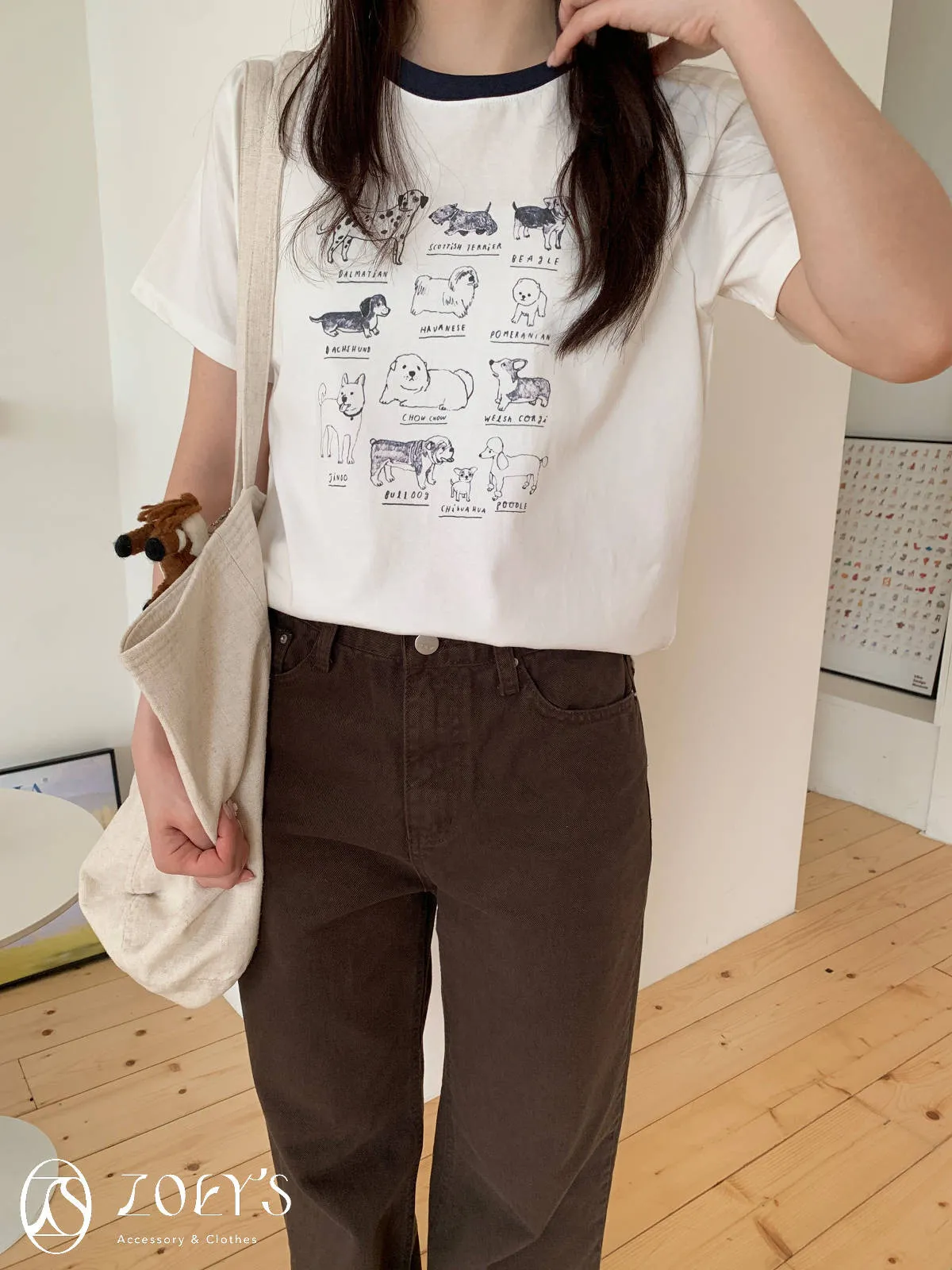 正韓 極Q狗狗圖鑑T 水藍/白/米