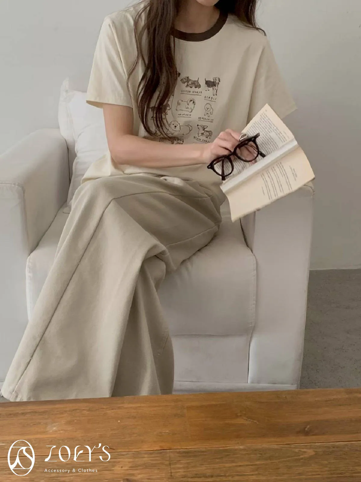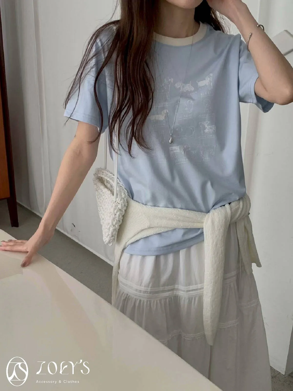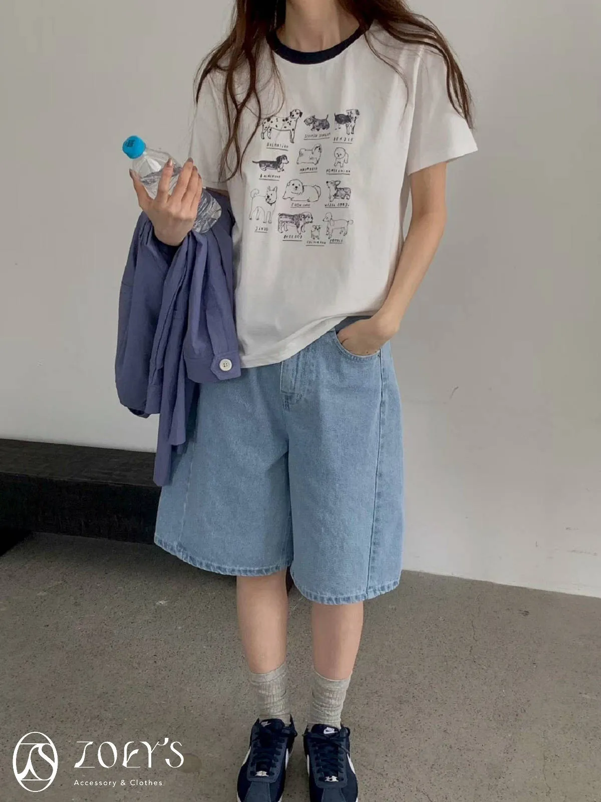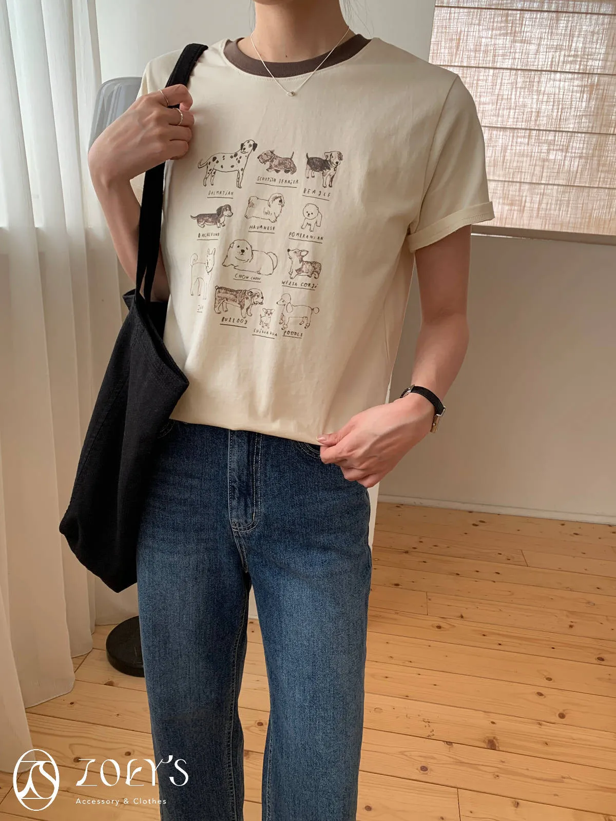 正韓 極Q狗狗圖鑑T 水藍/白/米