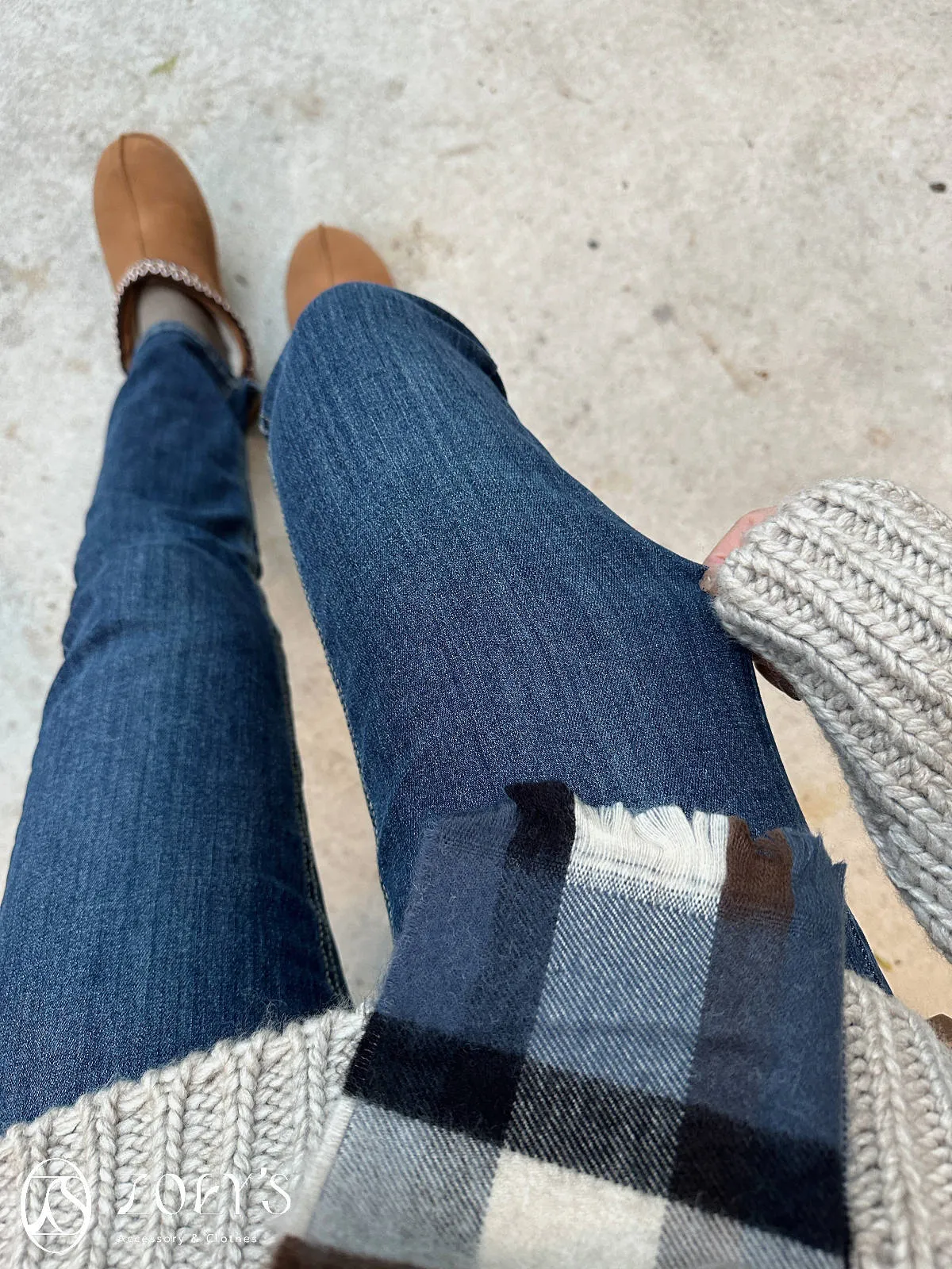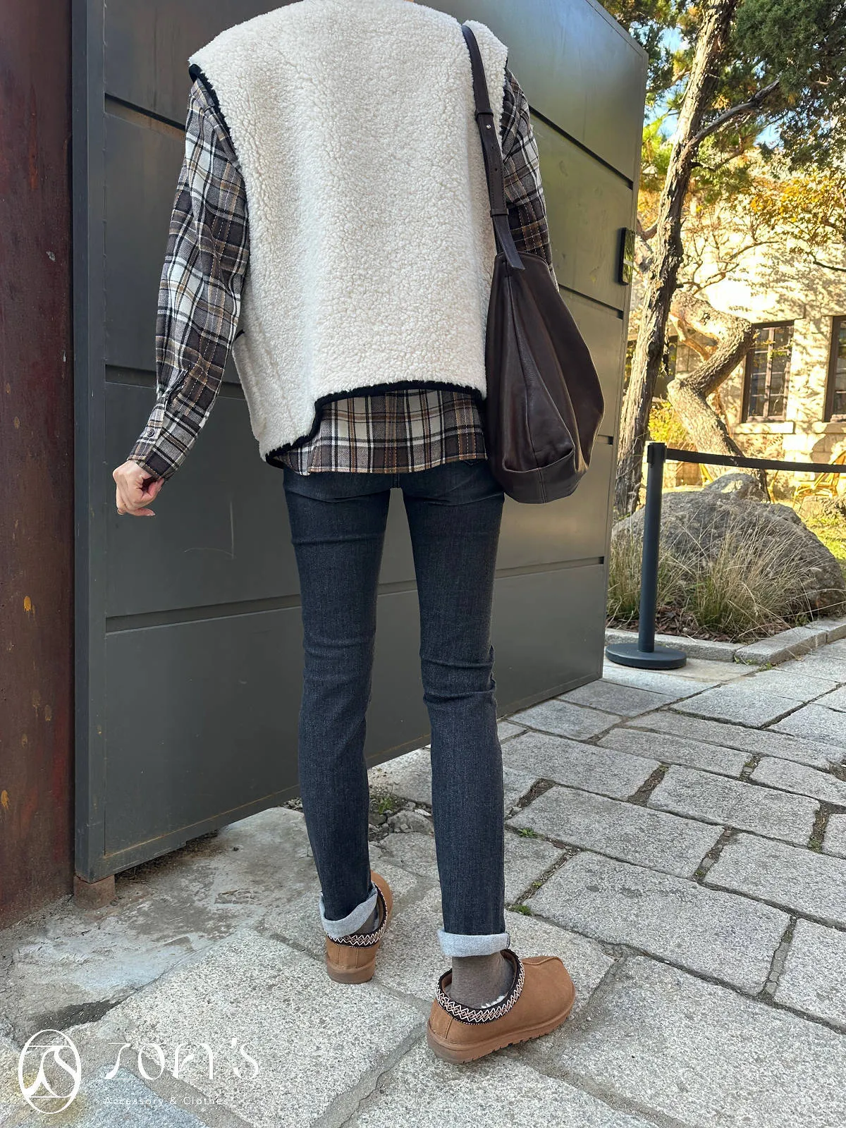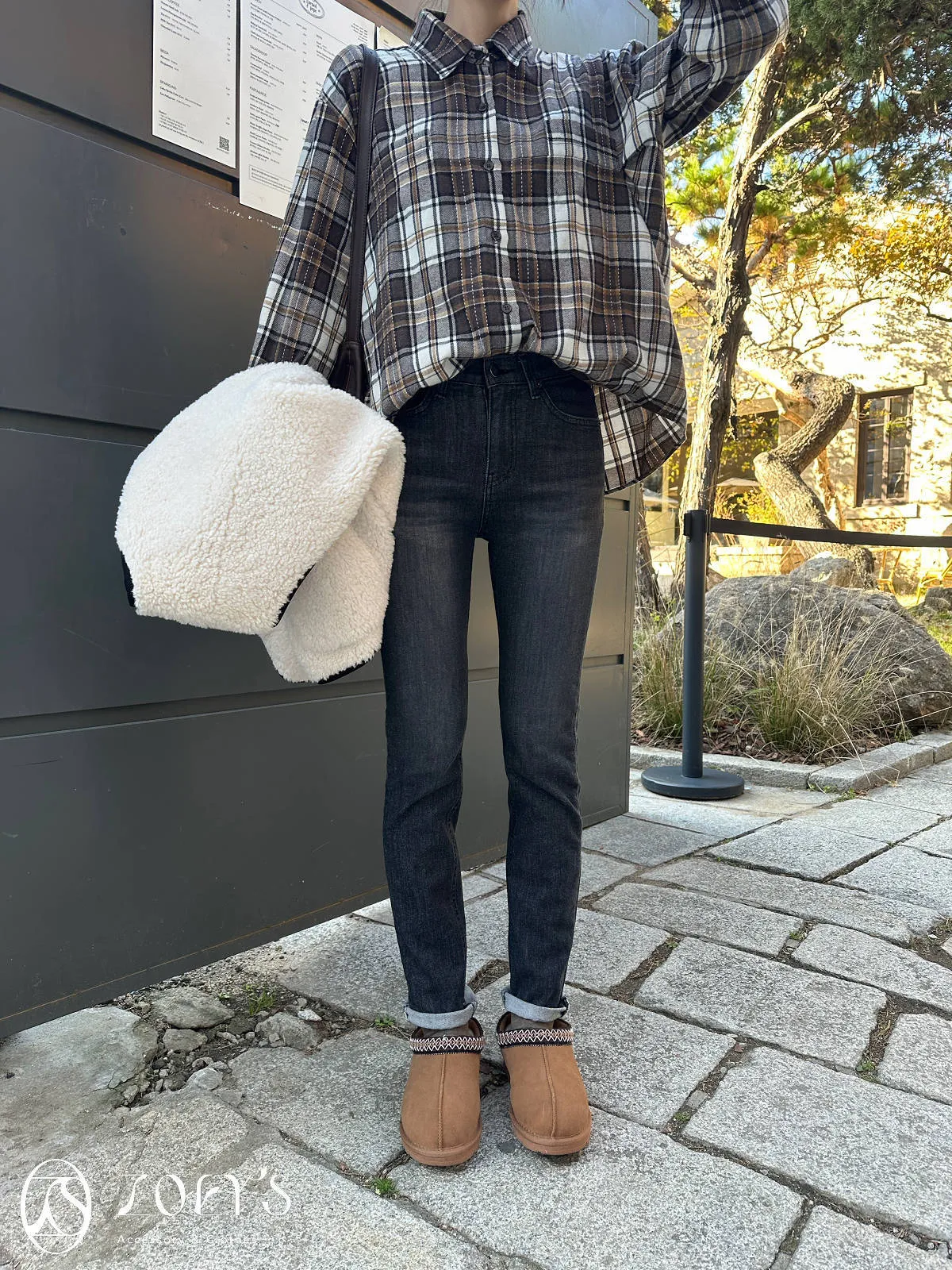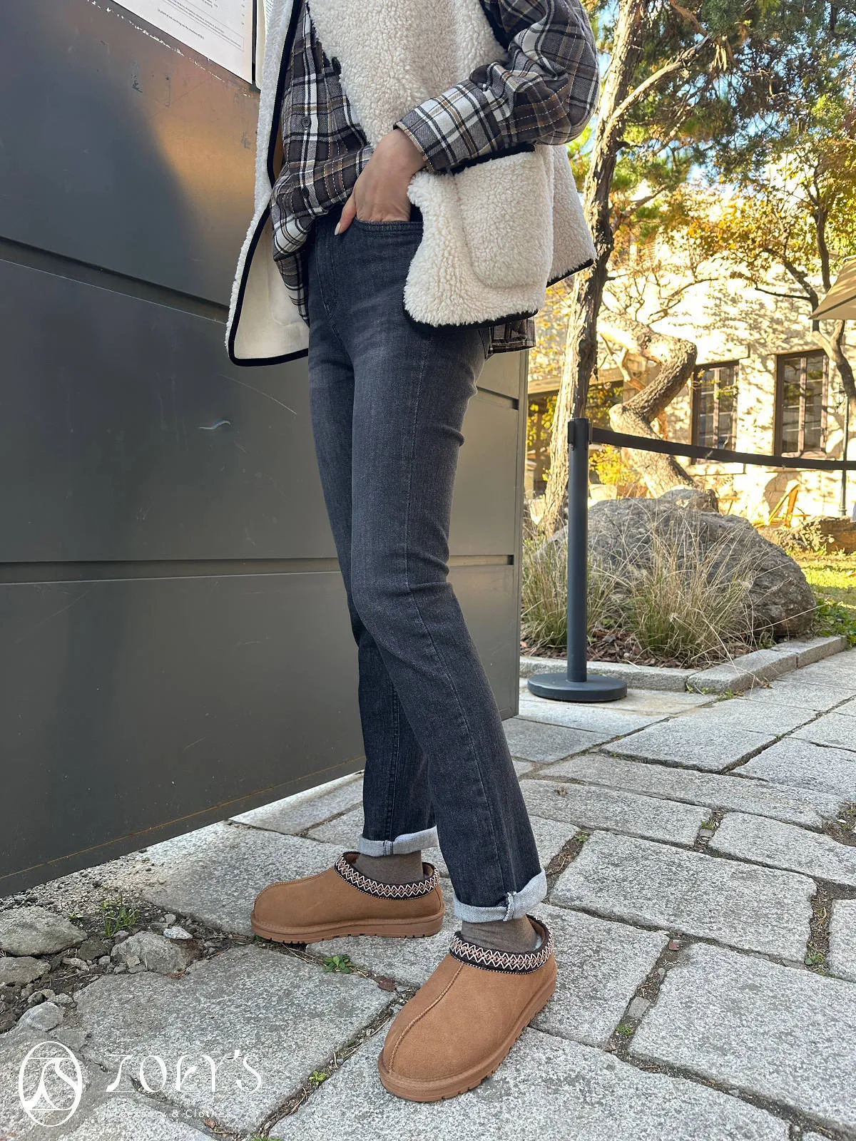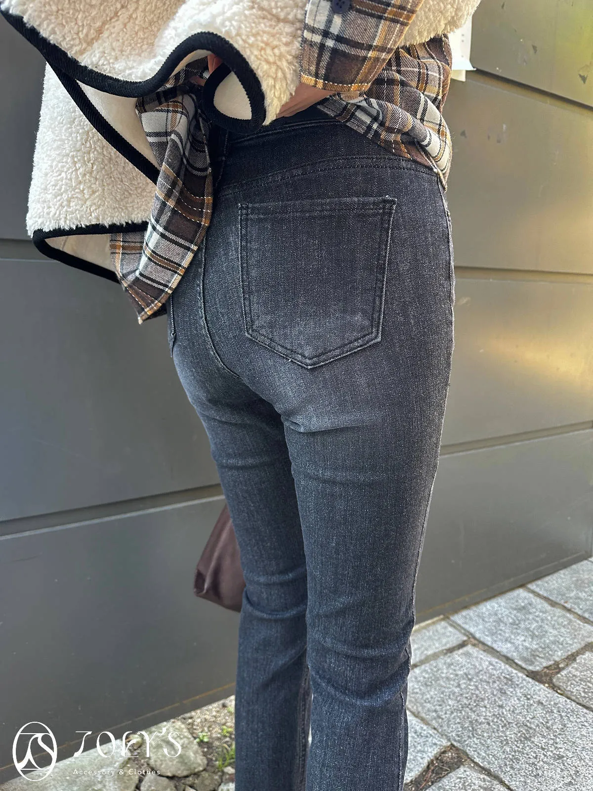 褲腳切口+細直紋刷色穿起來要不要這麼瘦~~