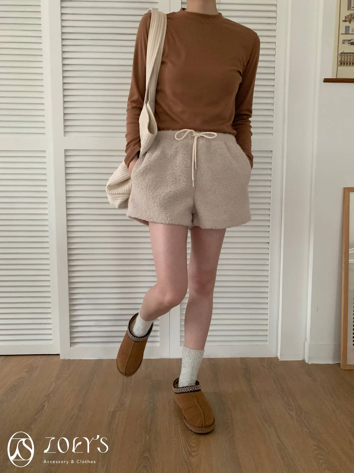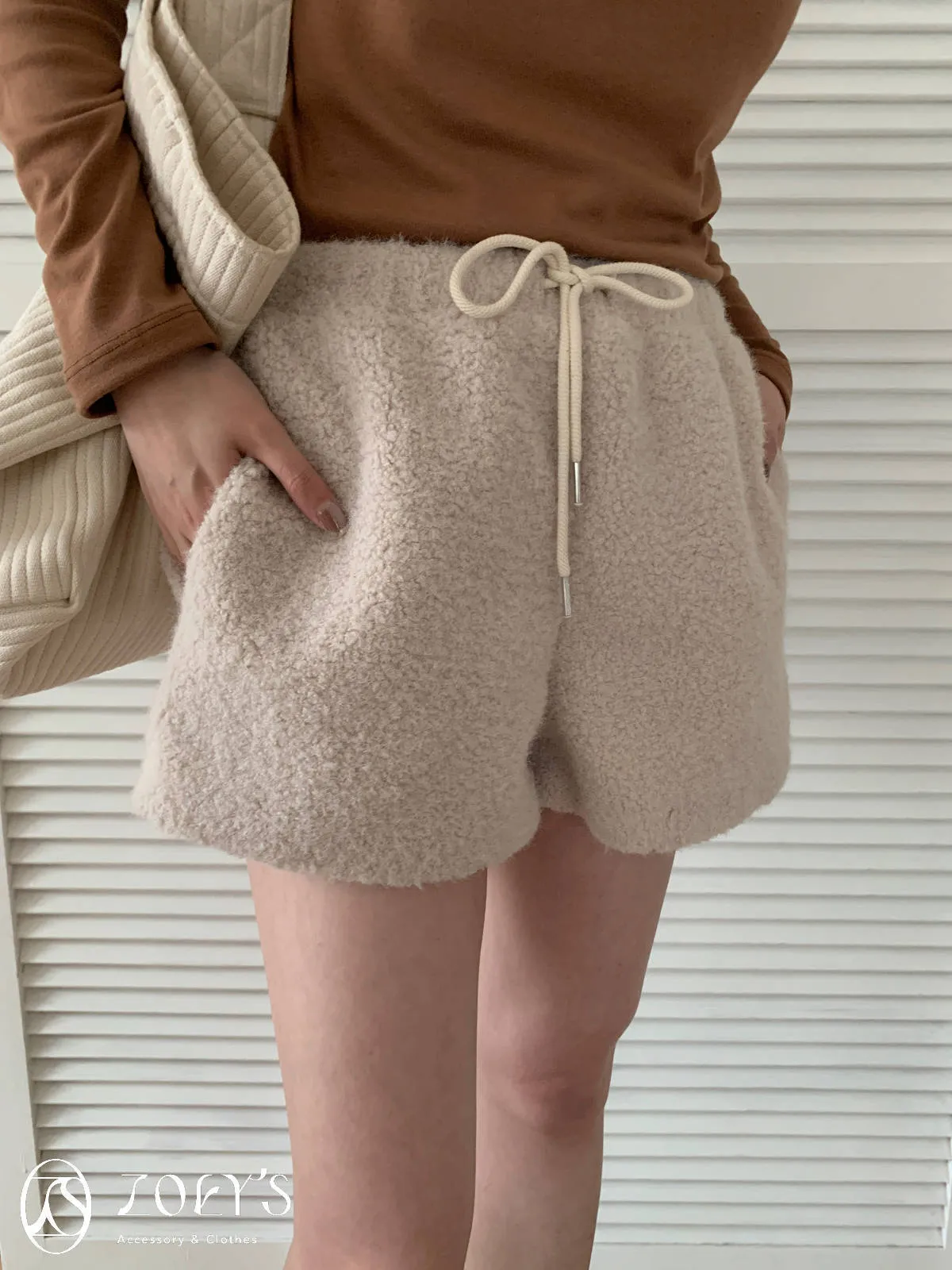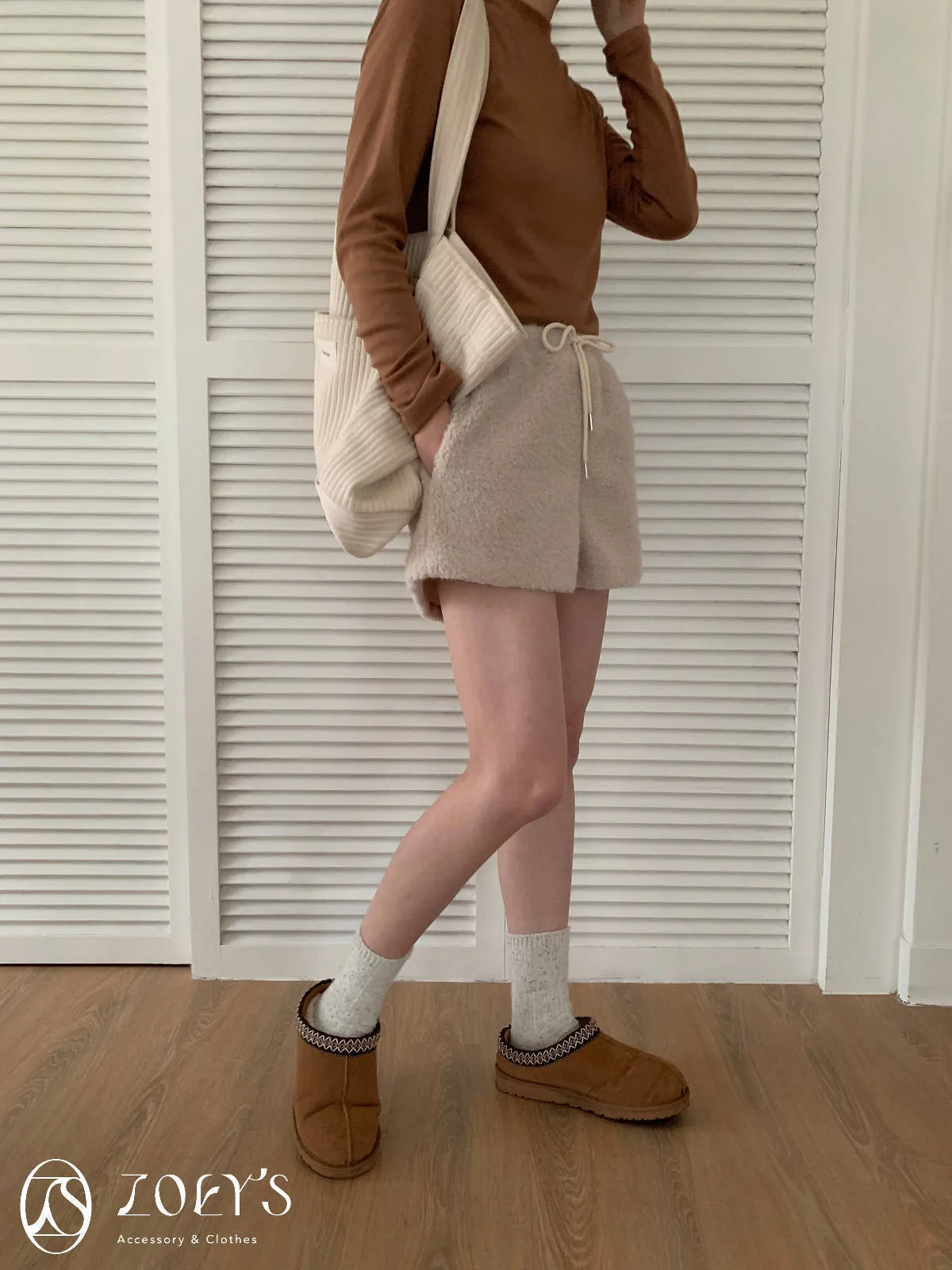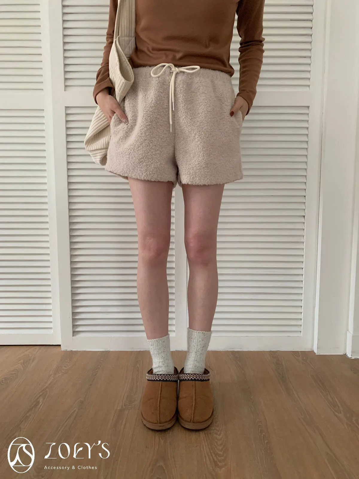 正韓 奶茶絨毛綁繩短褲 SALE現貨
