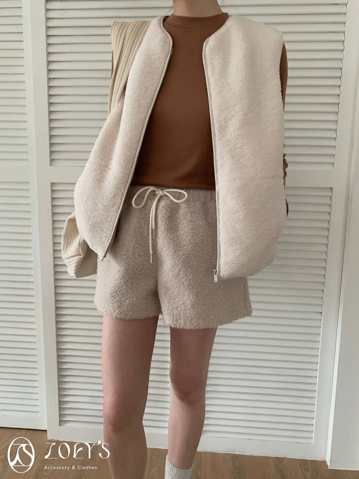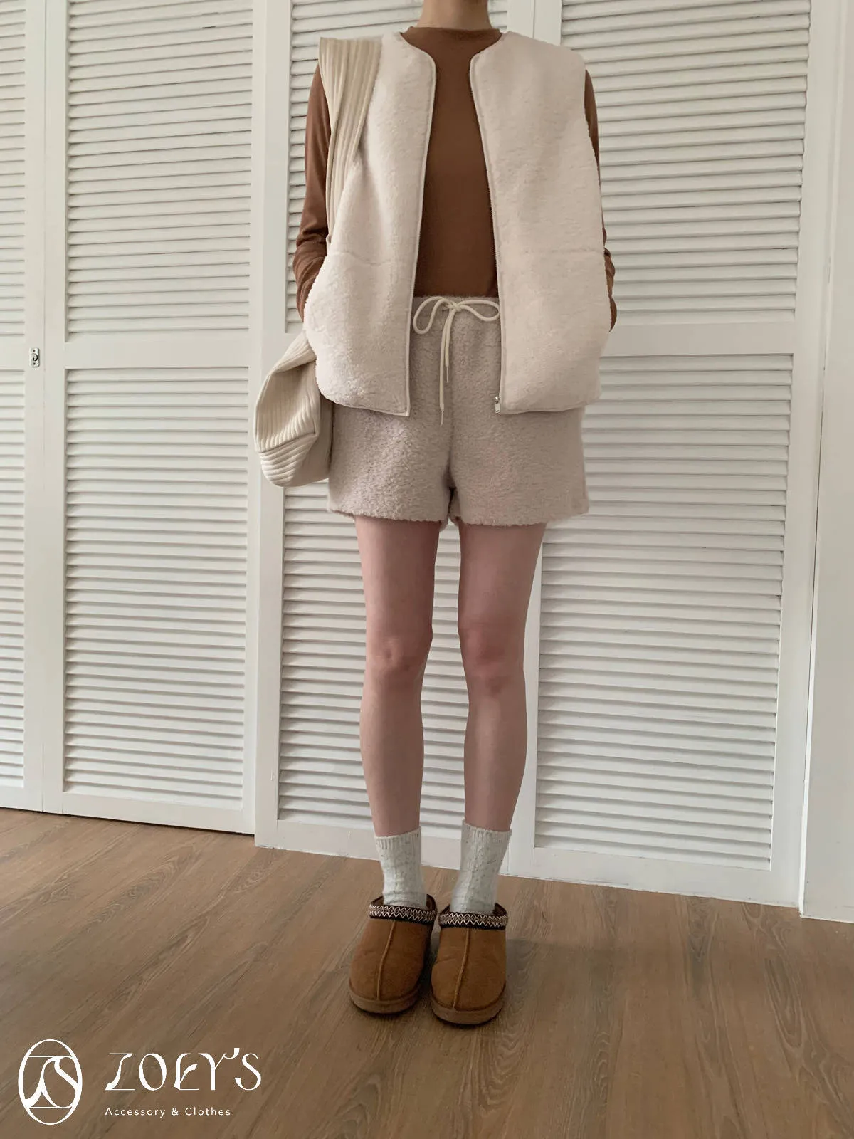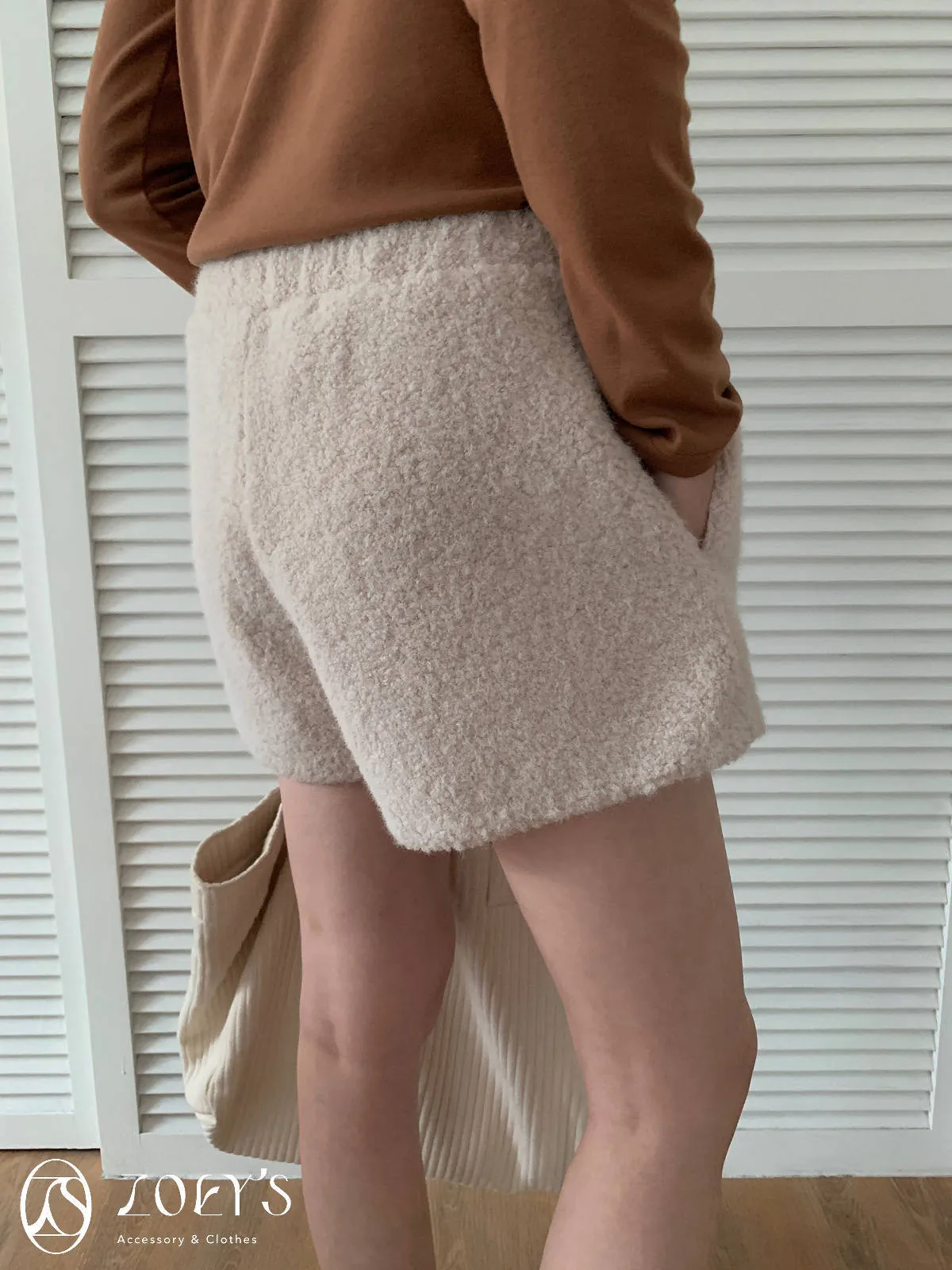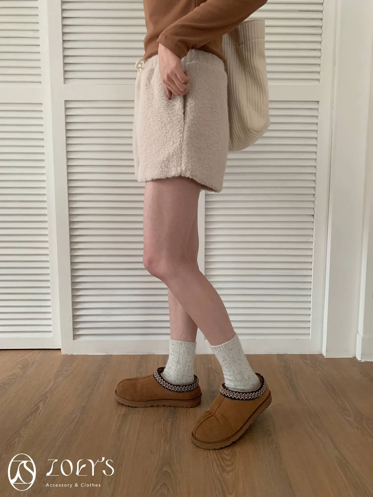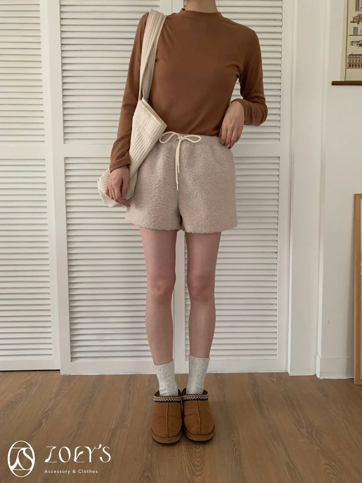 正韓 奶茶絨毛綁繩短褲 SALE現貨