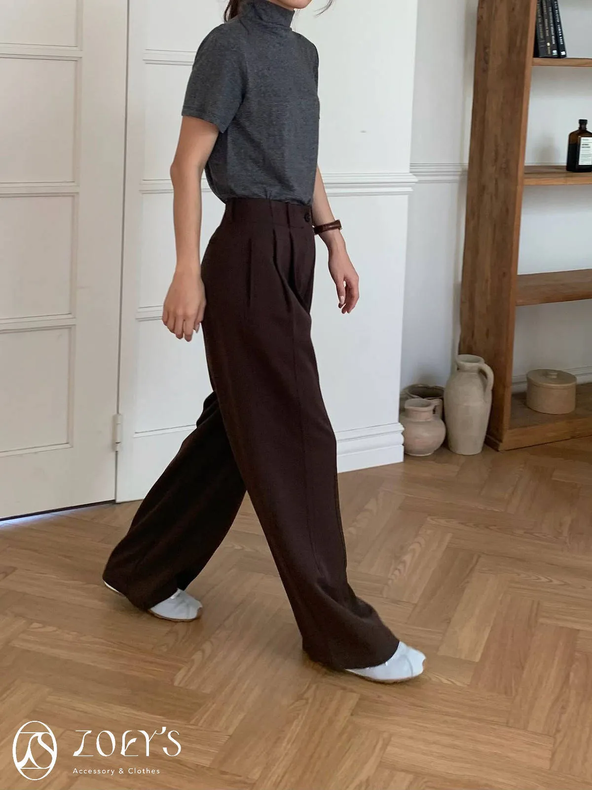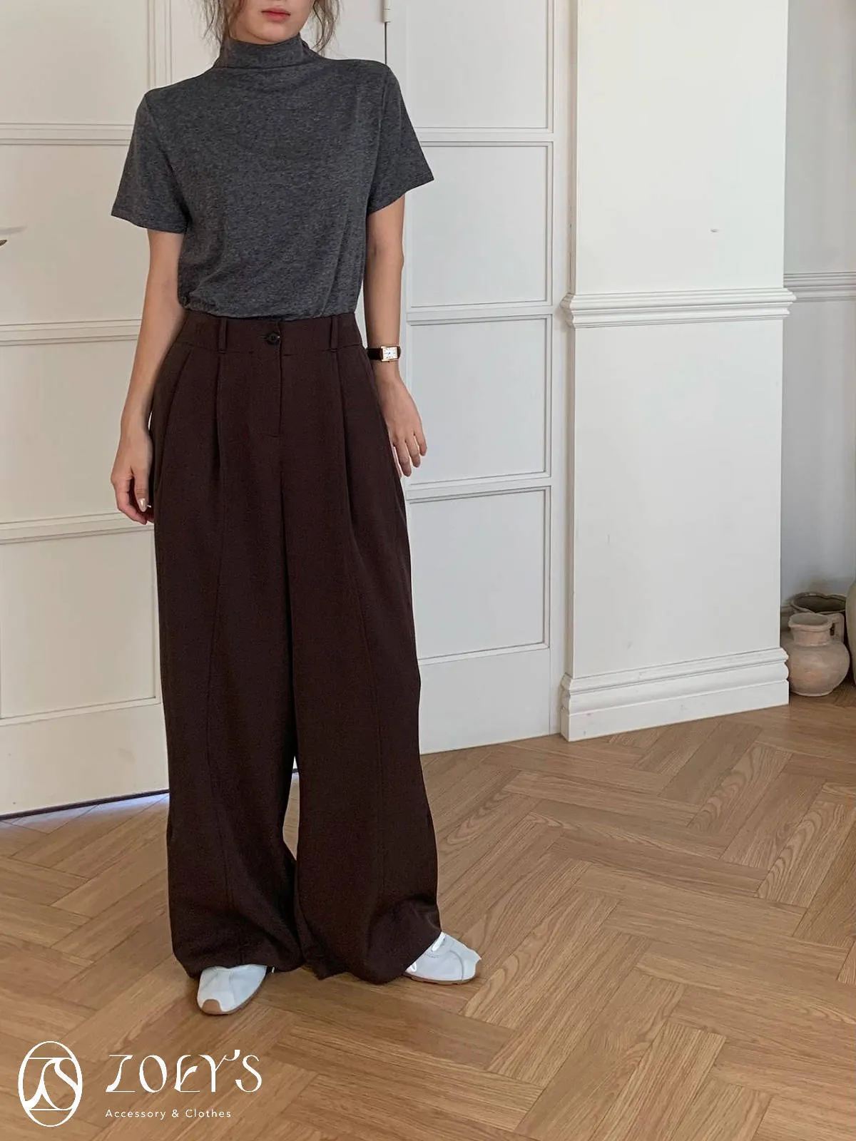 正韓 藏肉褶線西裝寬褲 SALE現貨棕M