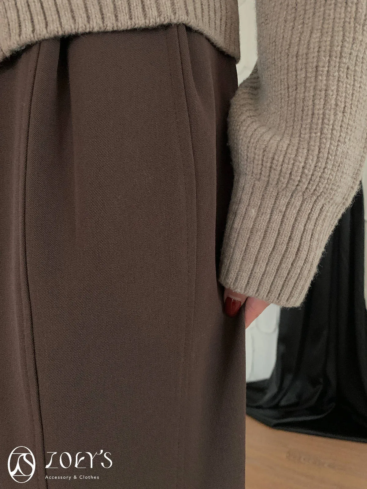 正韓 意外顯瘦腰鬆緊直坑紋開衩裙