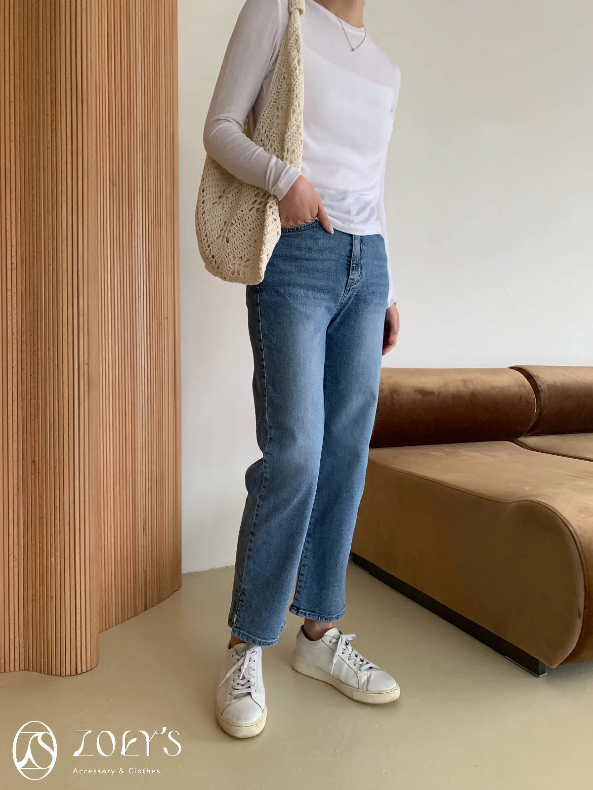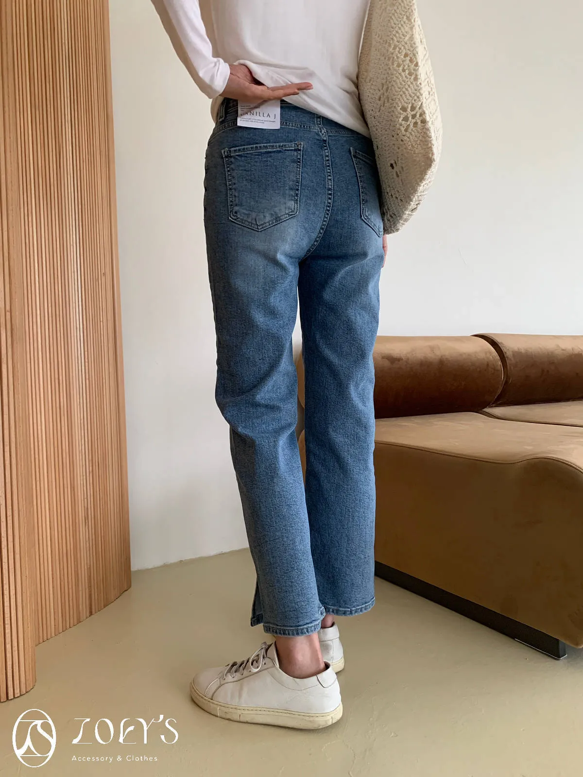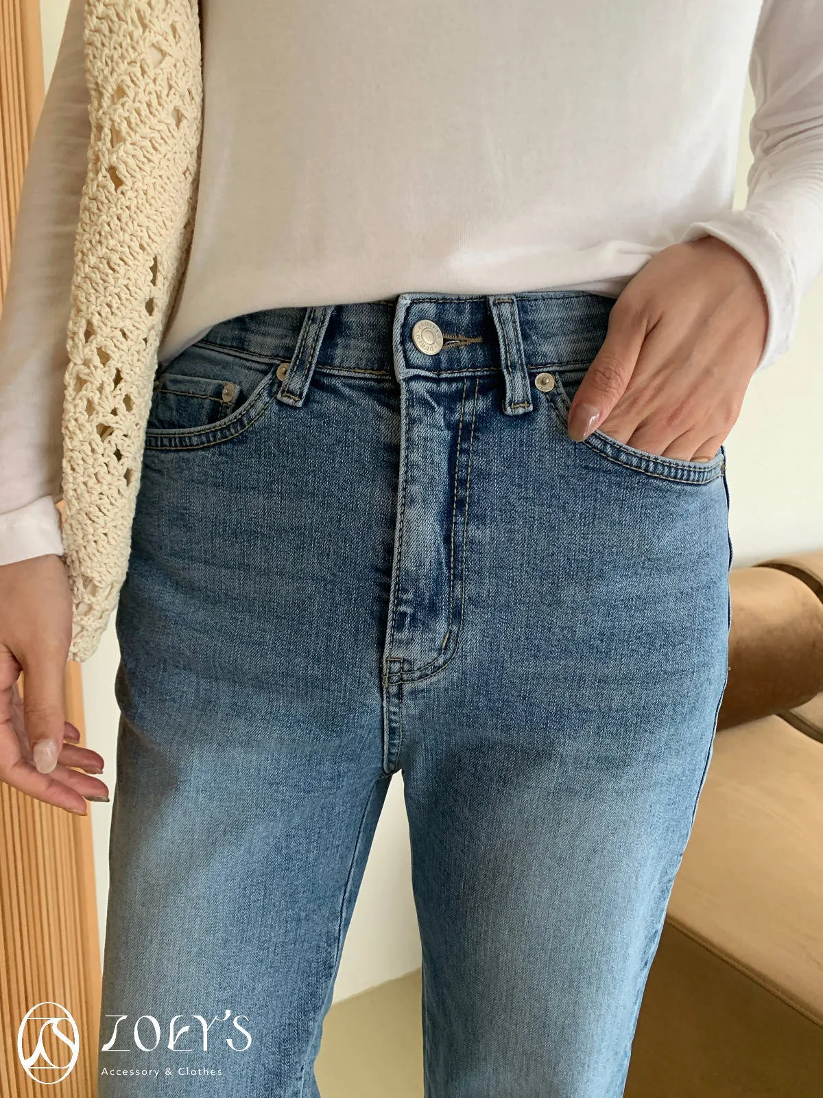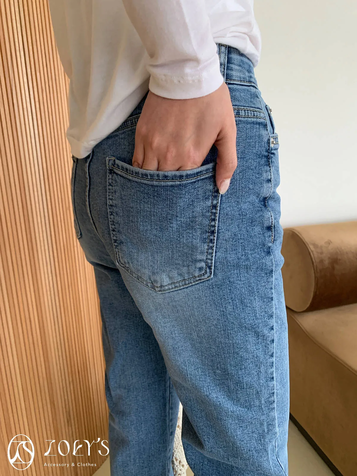 臀算合但腿部還有空間的順身剪裁,搭配偏薄丹寧布料