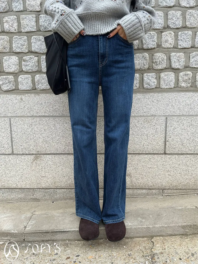 正韓 顯瘦深藍全彈性牛仔褲 S/M/L
