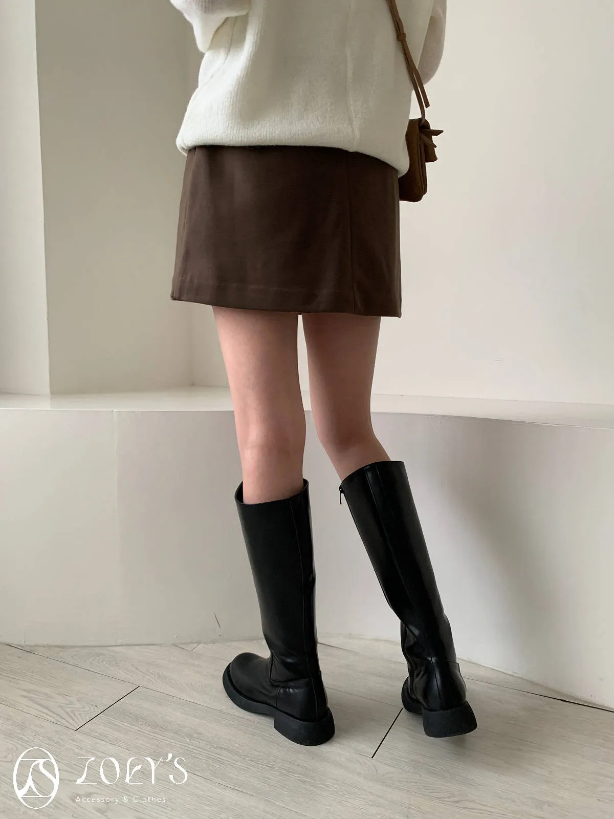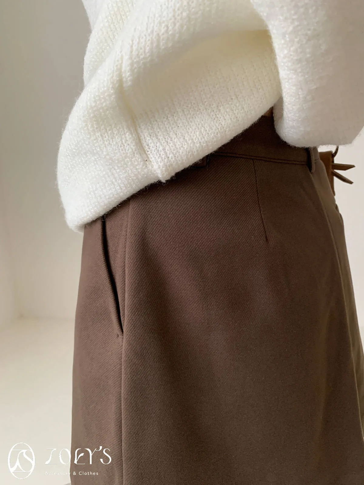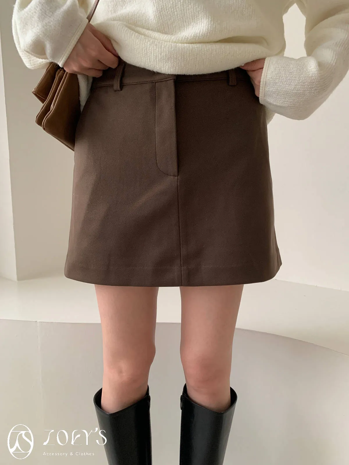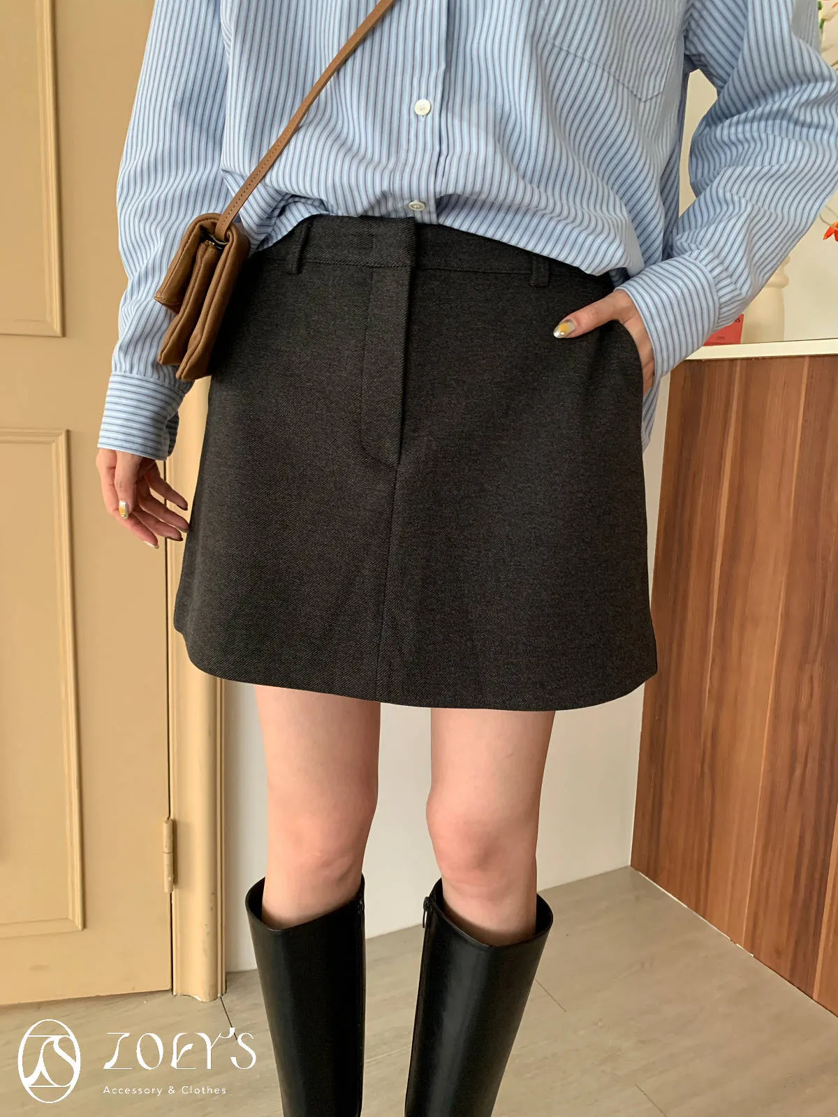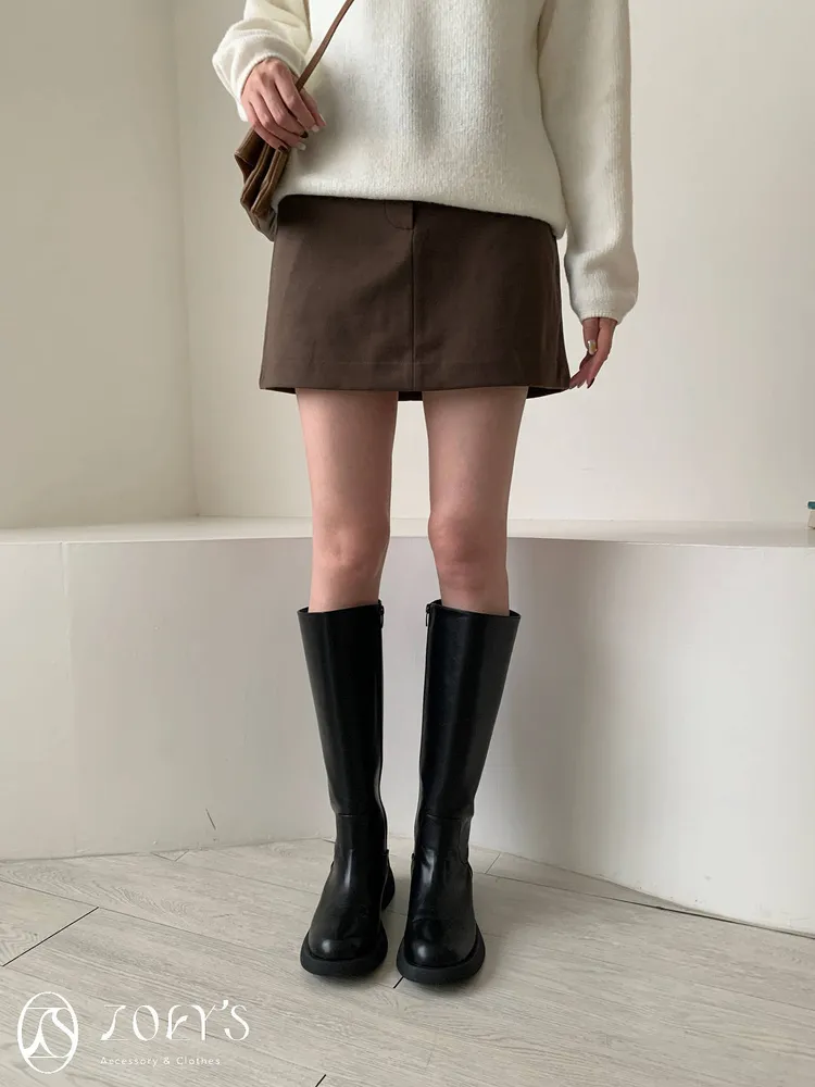 正韓 千載難逢不易皺厚料短褲裙 墨/咖 獨家訂製S/M/L