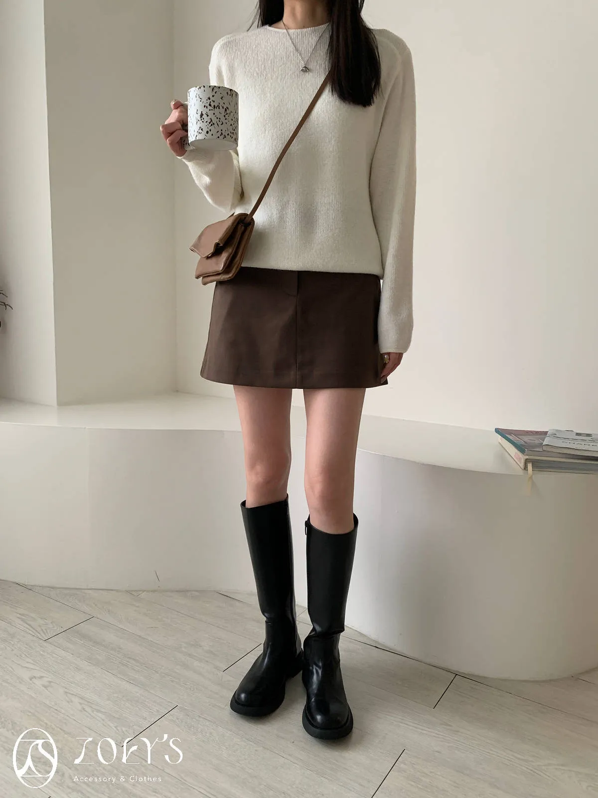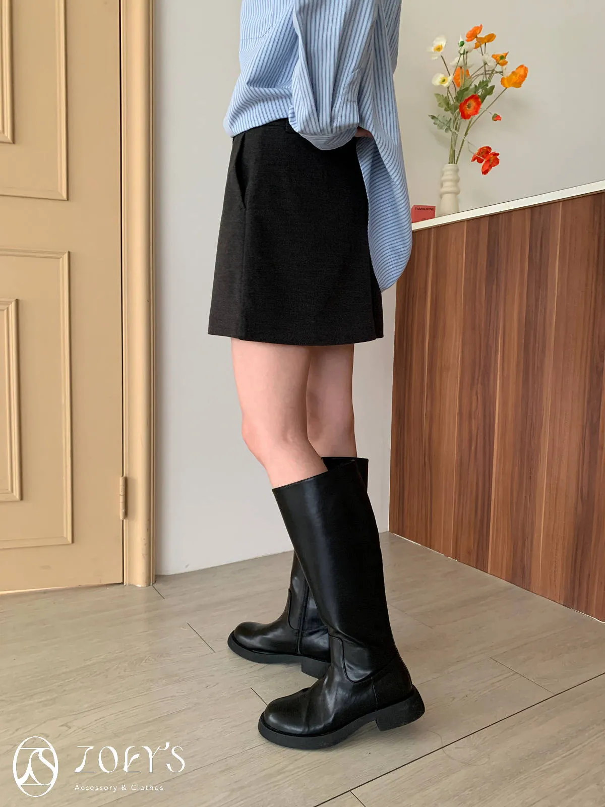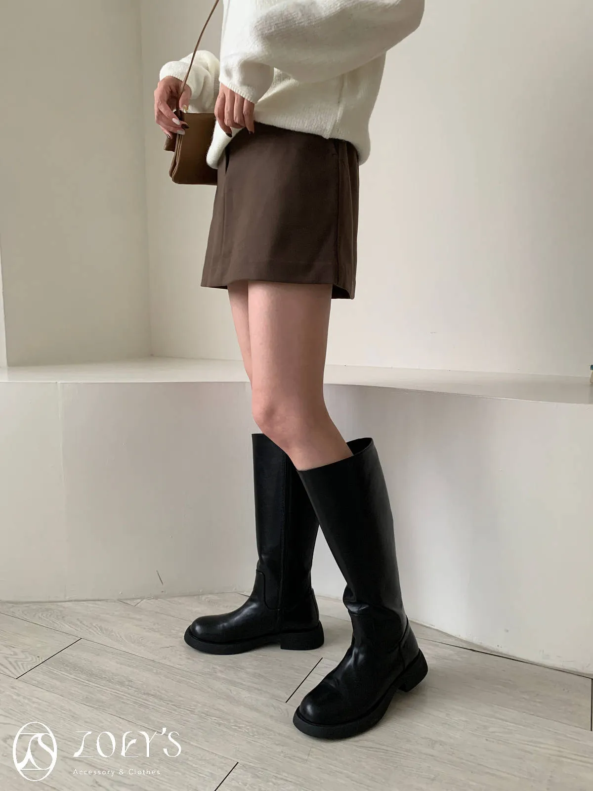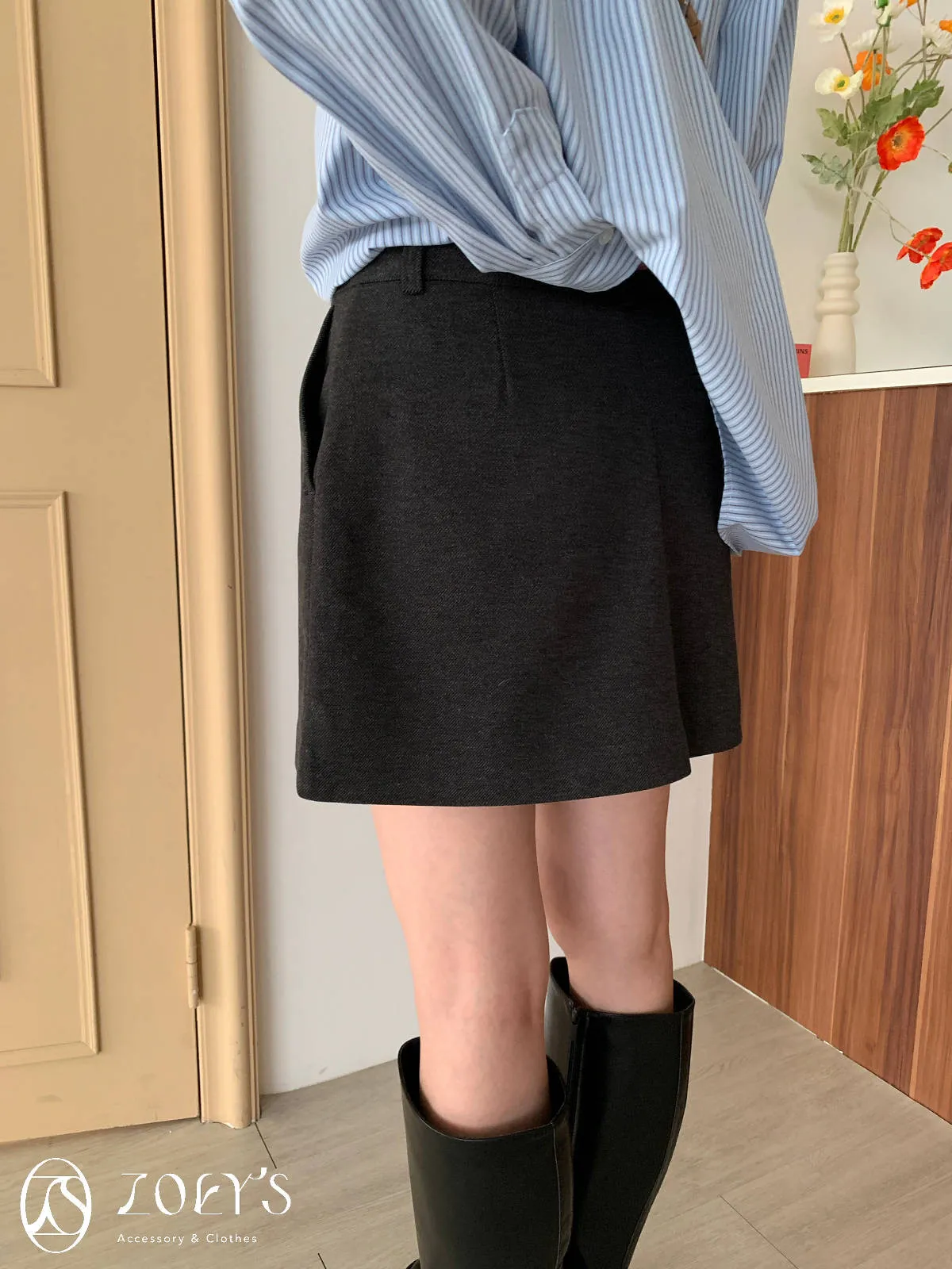 正韓 千載難逢不易皺厚料短褲裙 墨/咖 獨家訂製S/M/L