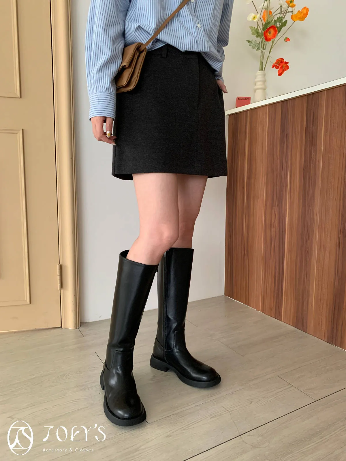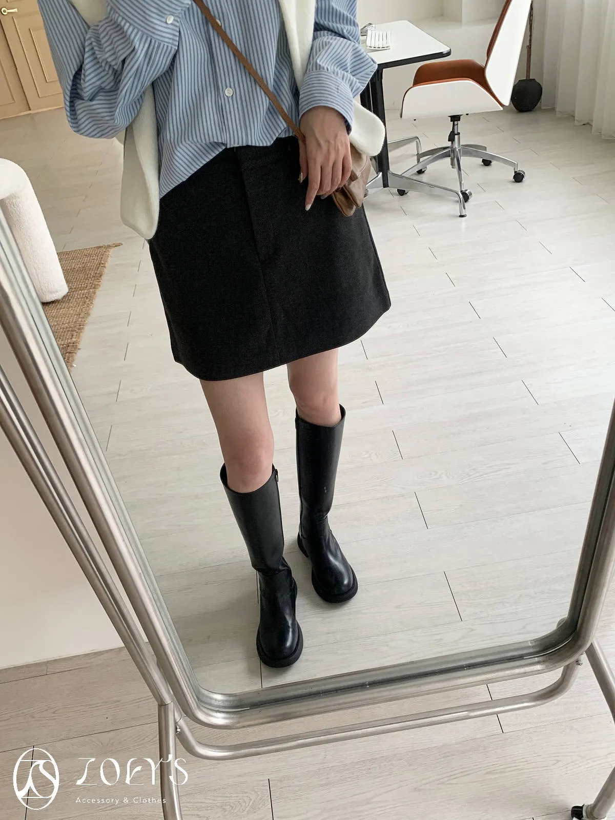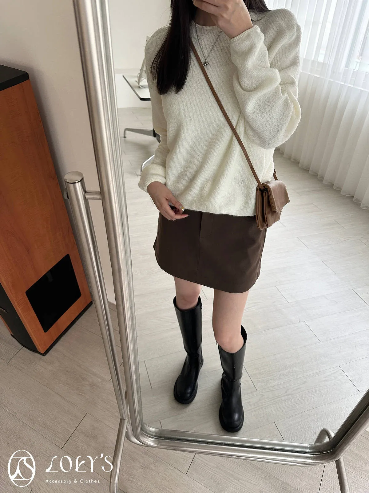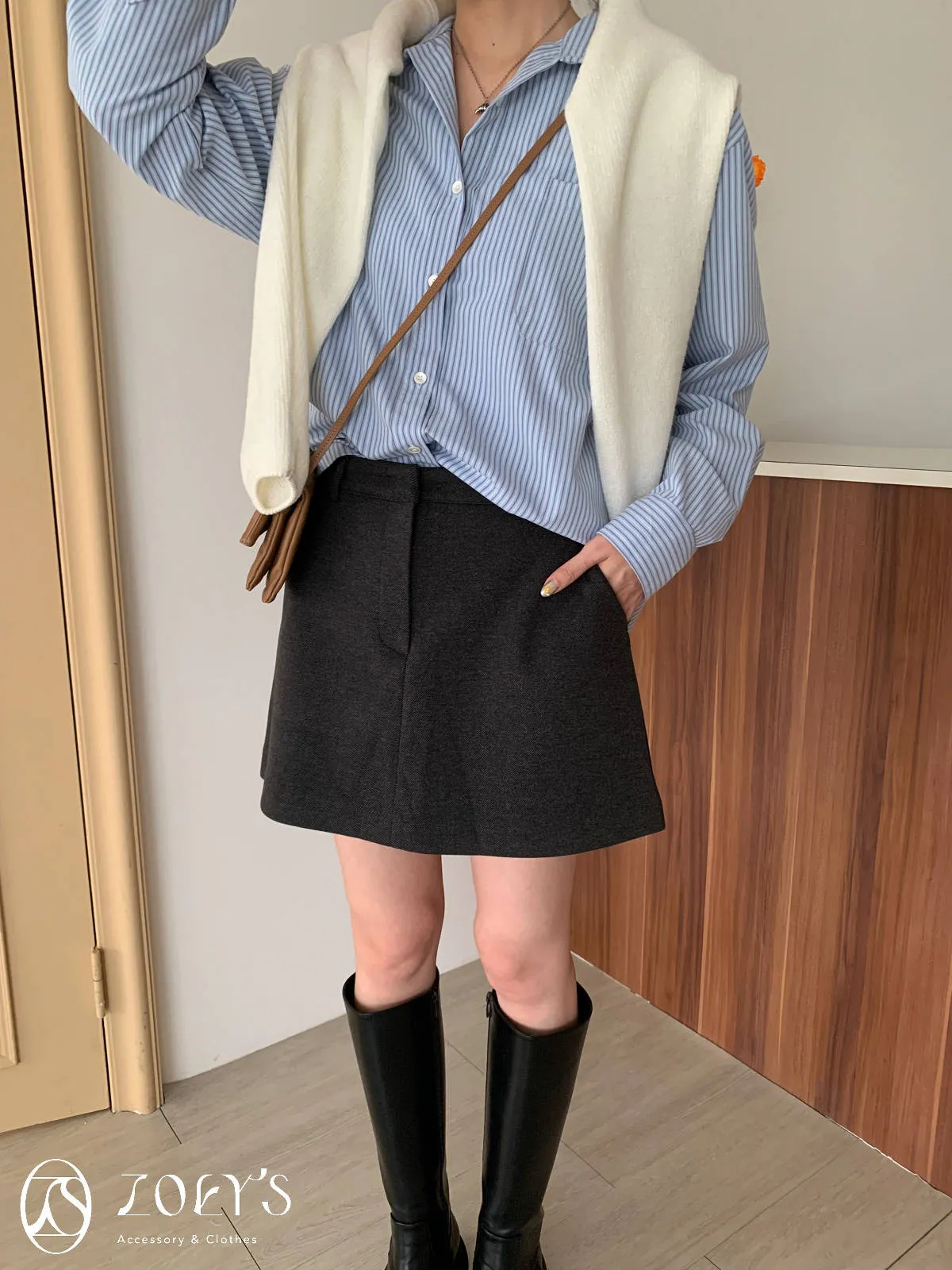 正韓 千載難逢不易皺厚料短褲裙 墨/咖 獨家訂製S/M/L