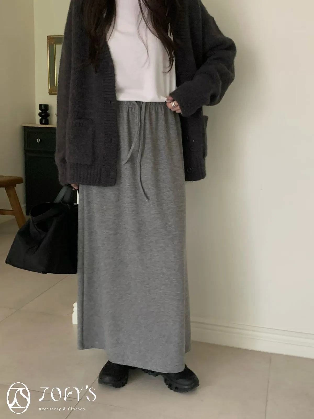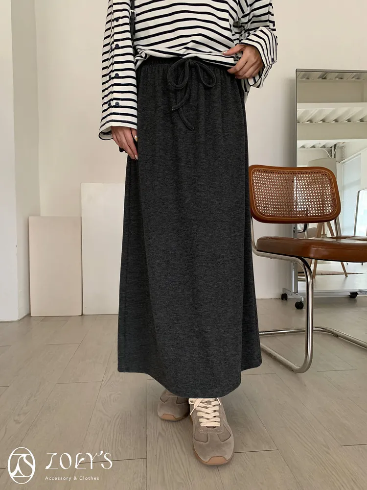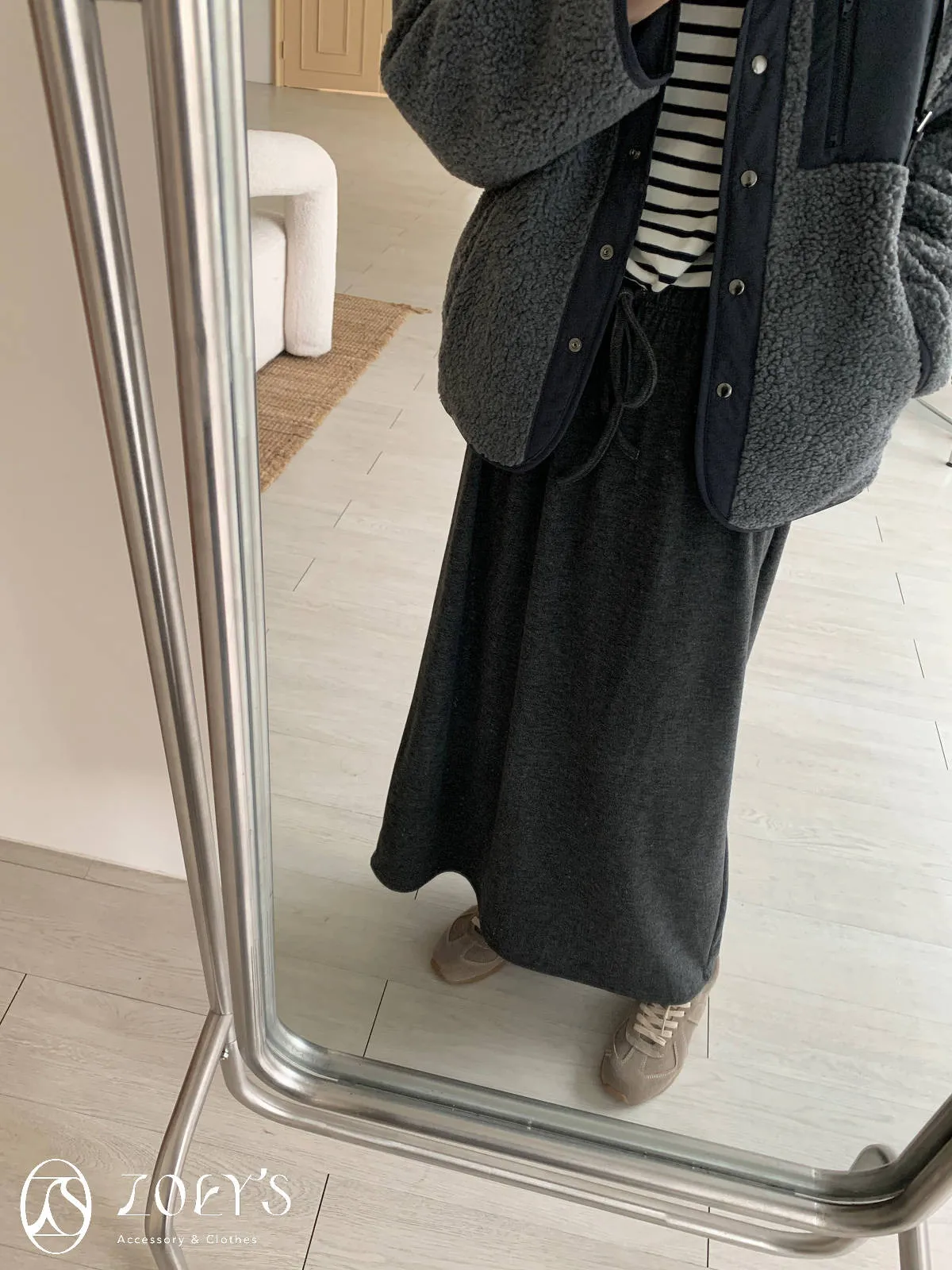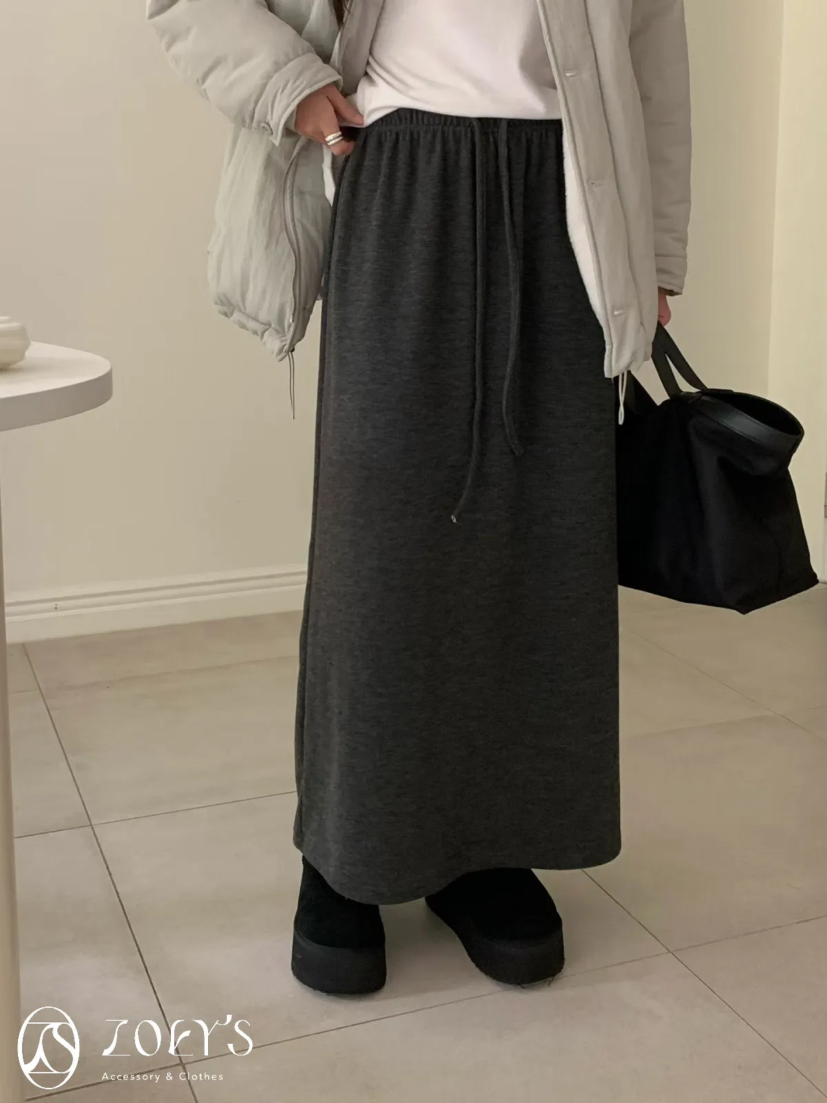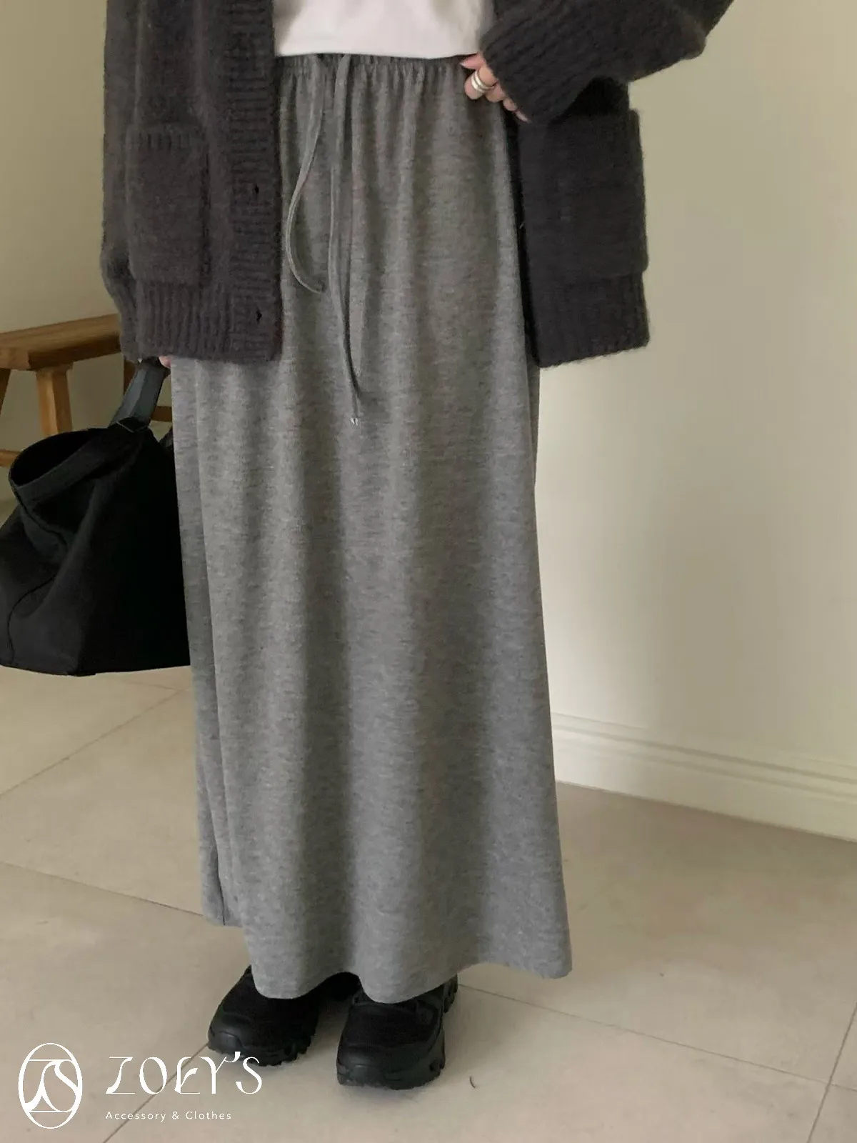 正韓 極柔綁腰內短絨長裙 墨/淺灰