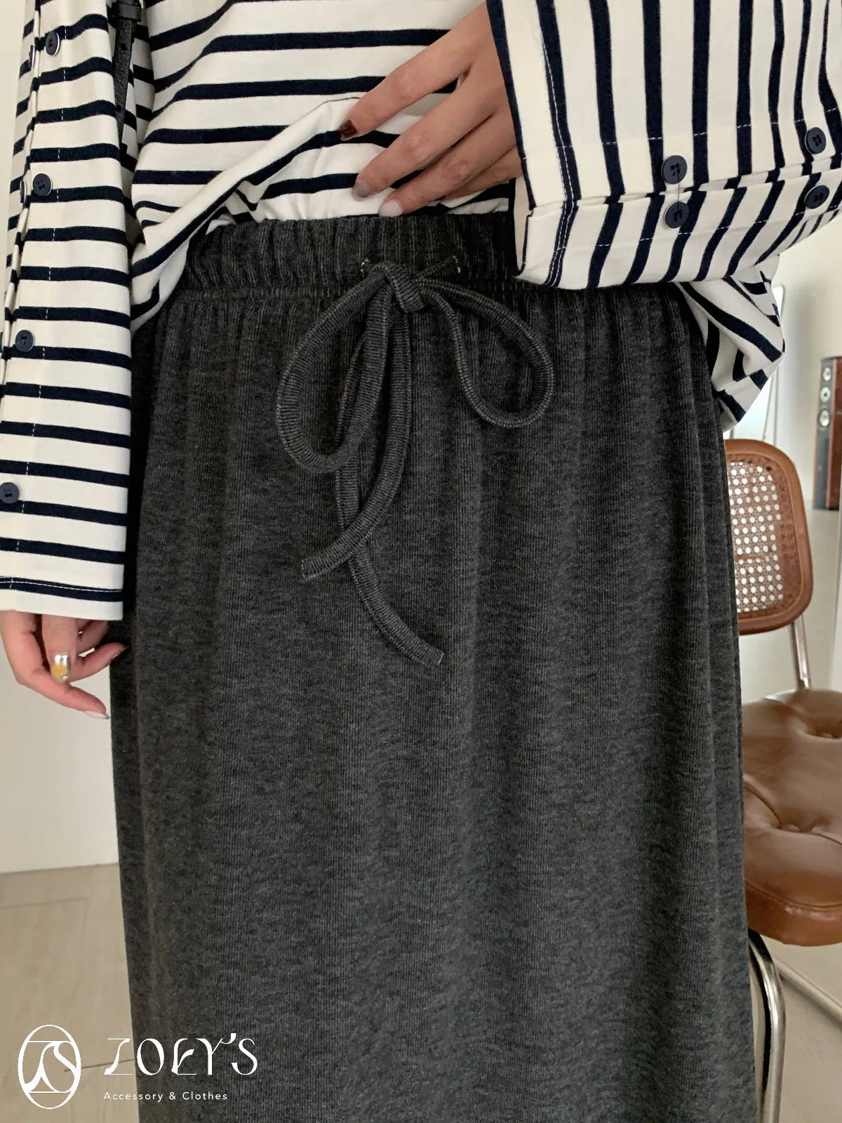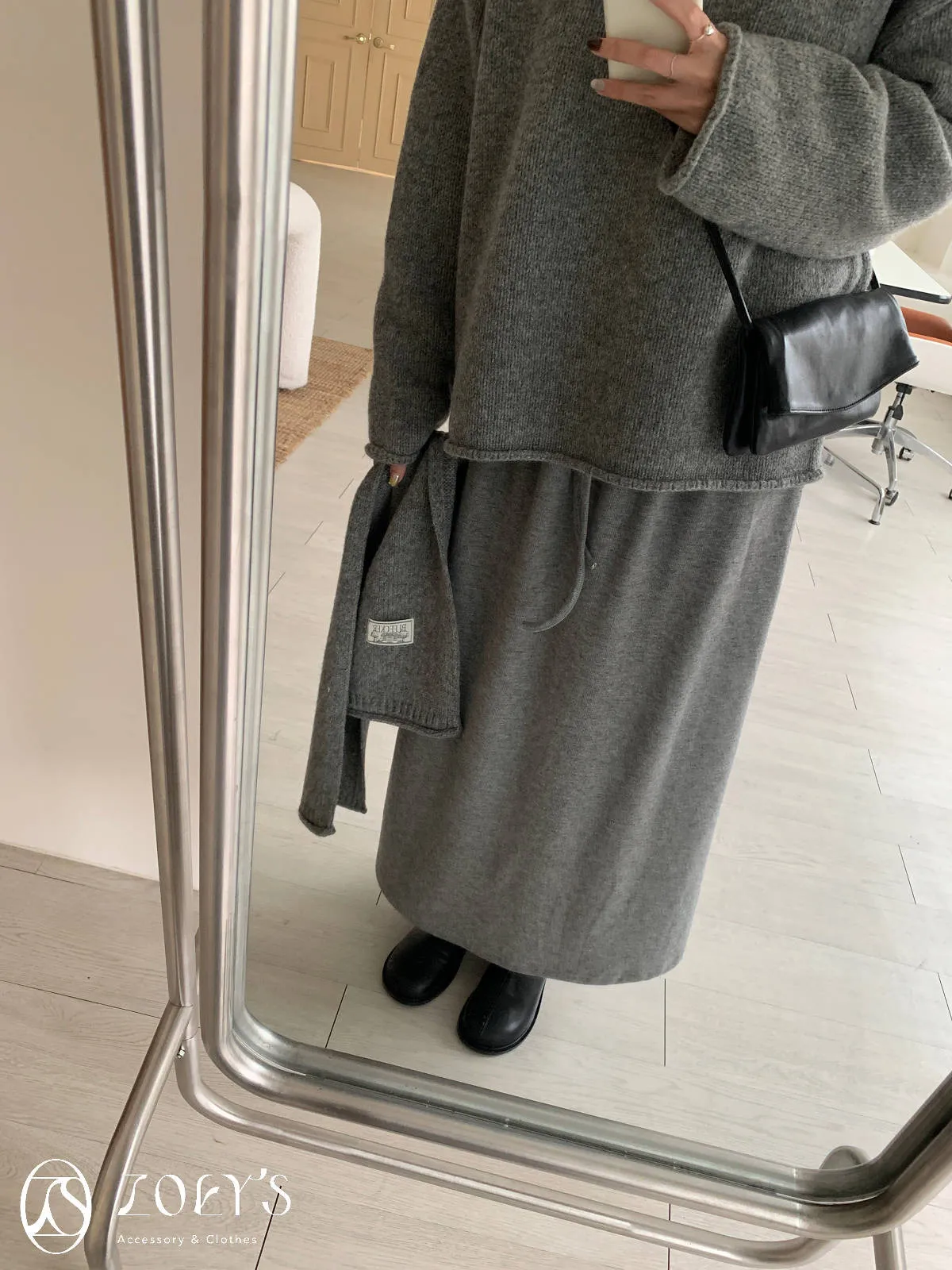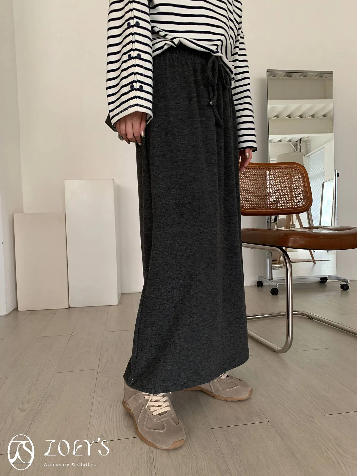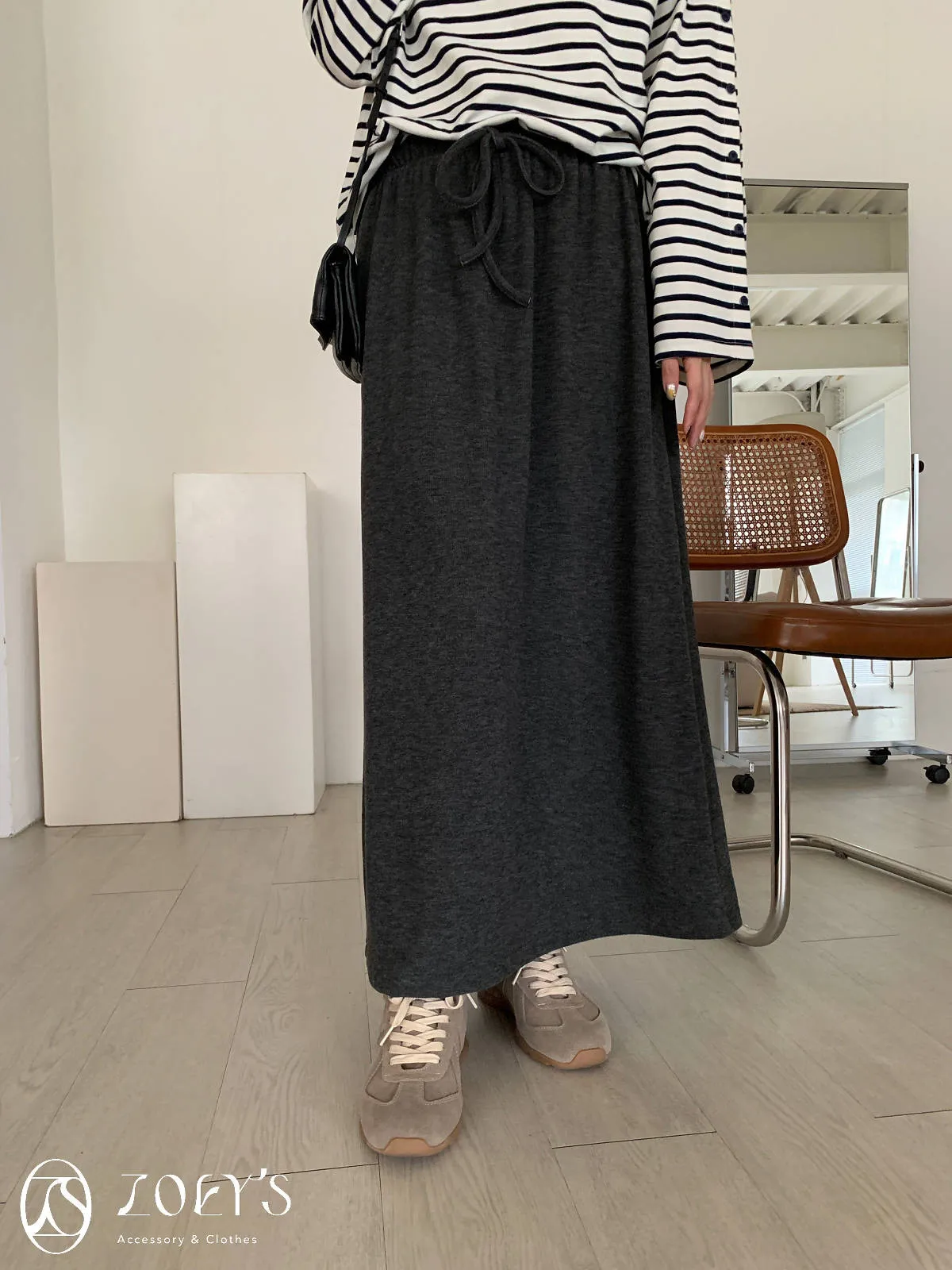 正韓 極柔綁腰內短絨長裙 墨/淺灰