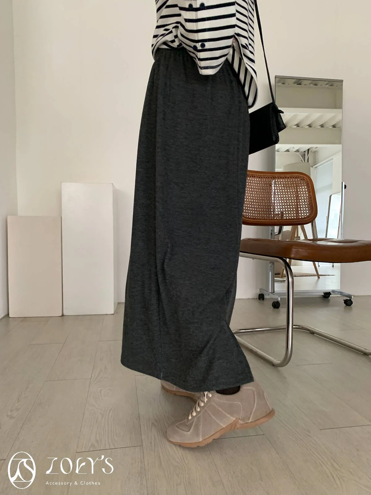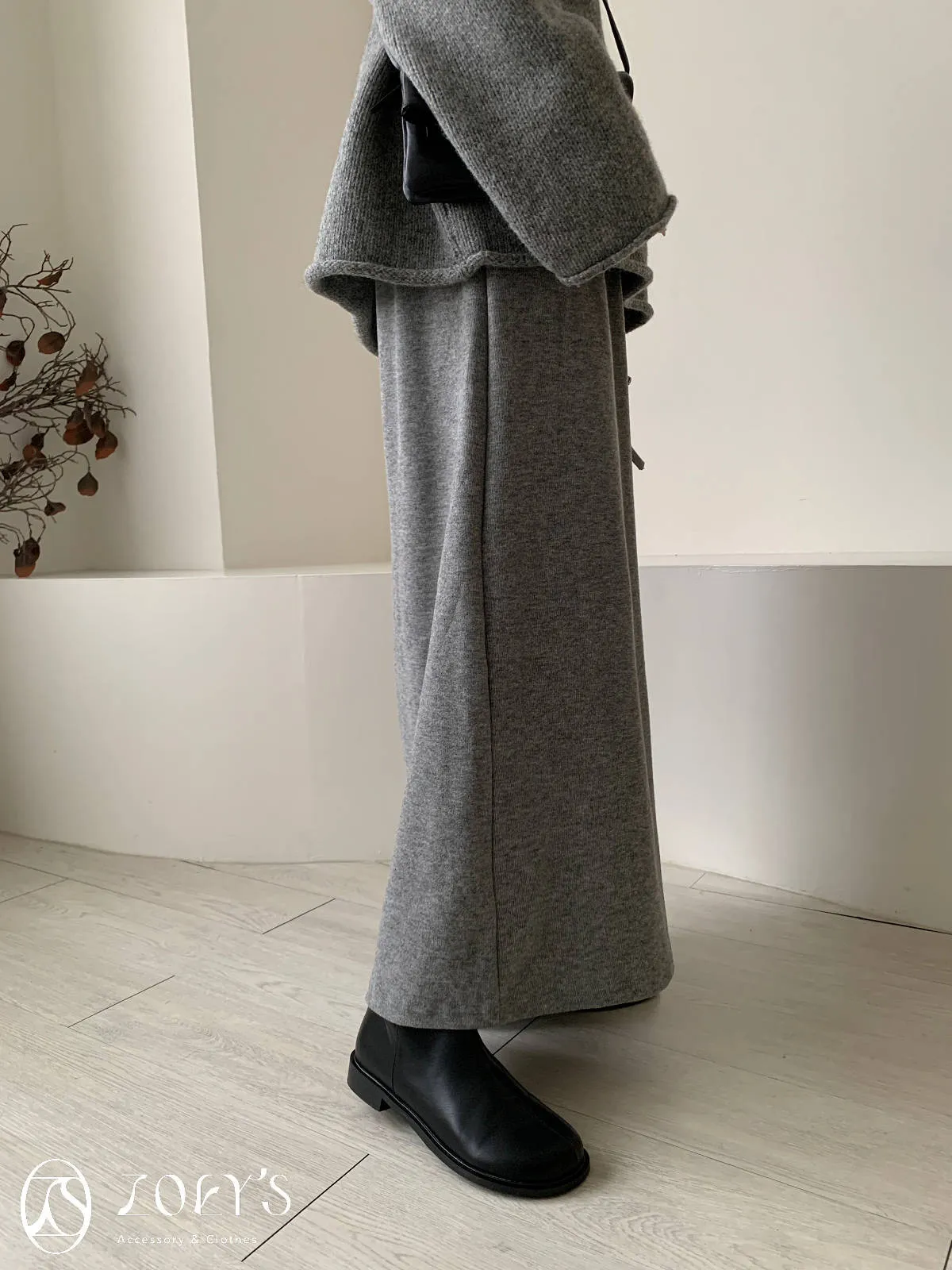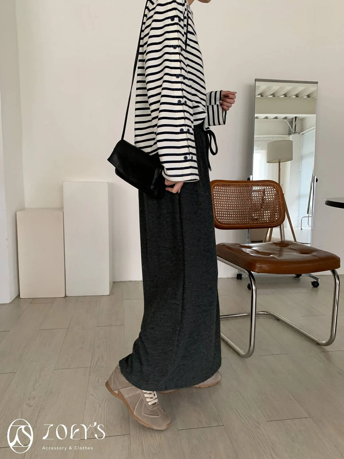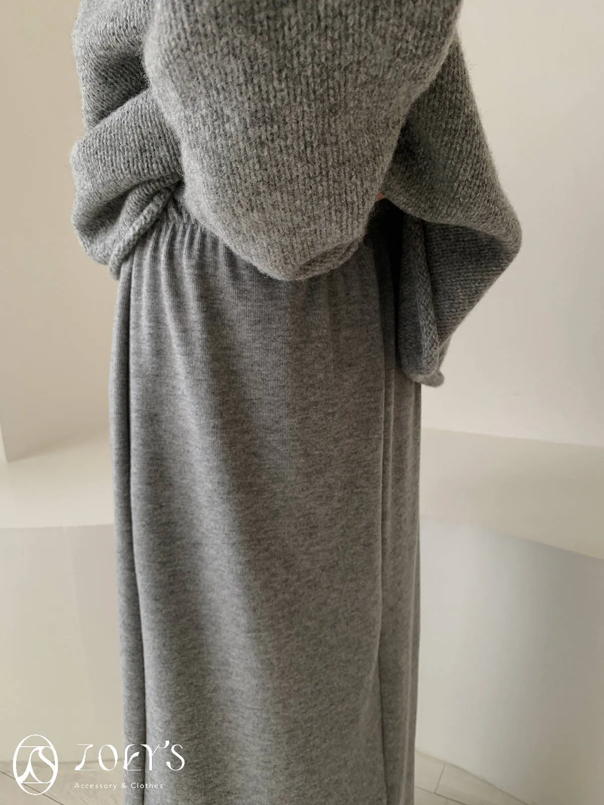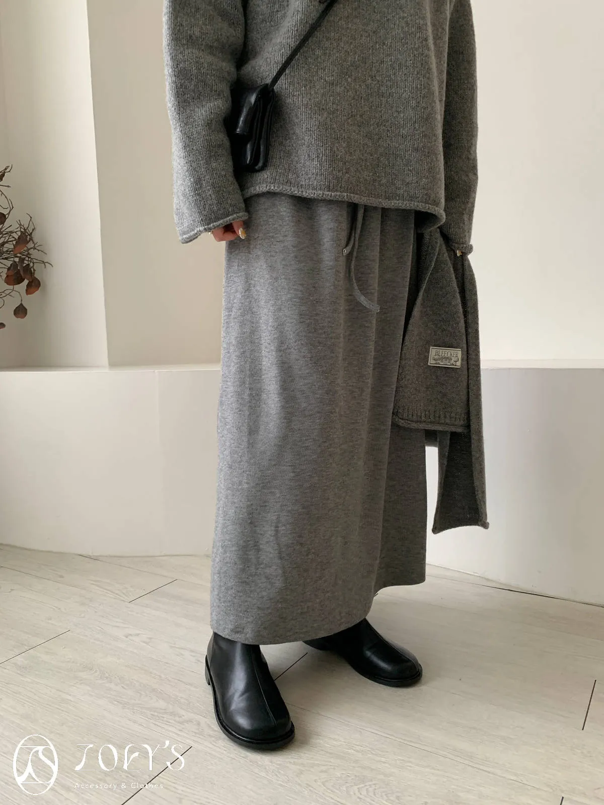 正韓 極柔綁腰內短絨長裙 墨/淺灰