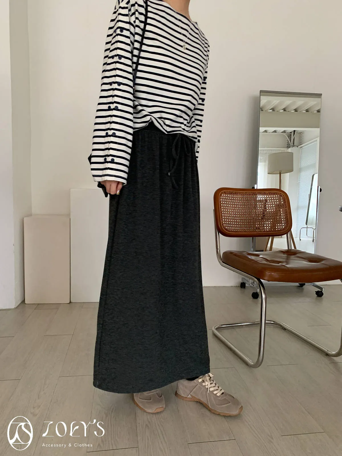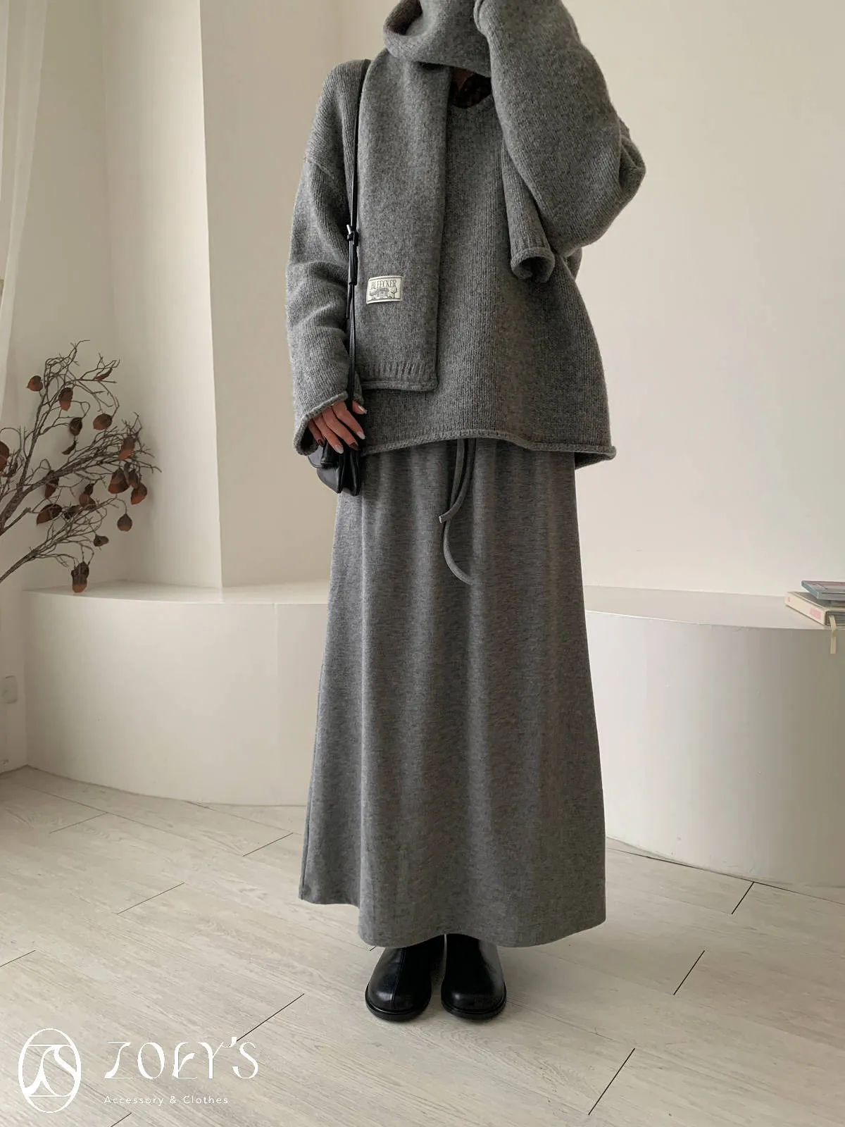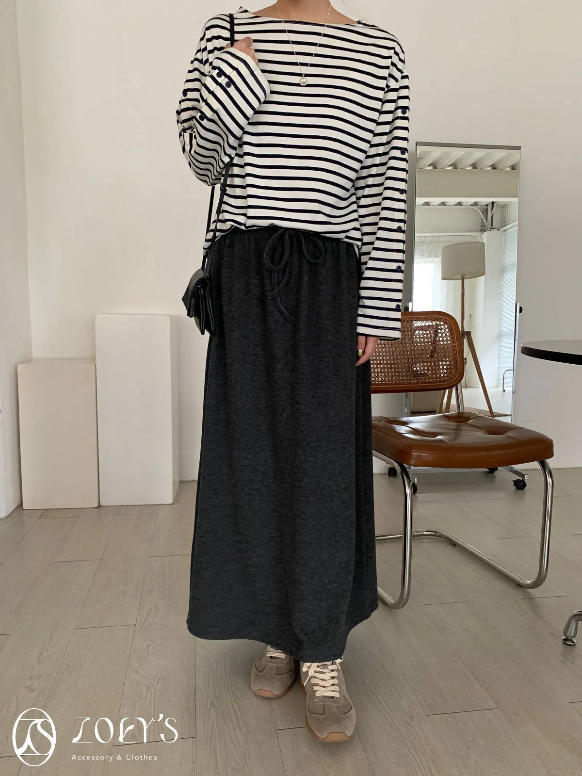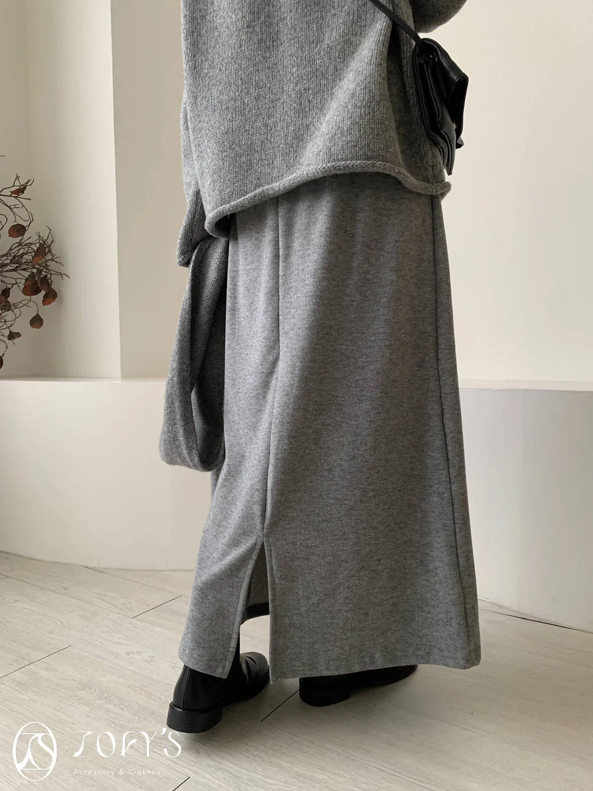 正韓 極柔綁腰內短絨長裙 墨/淺灰