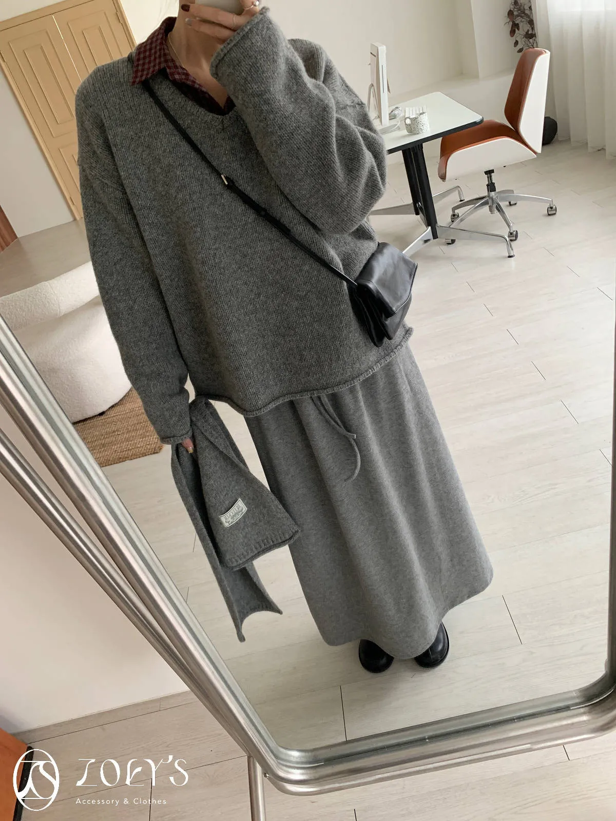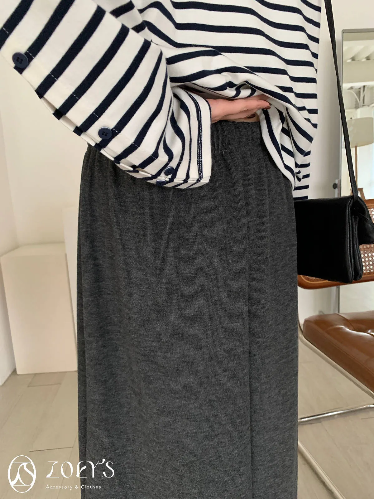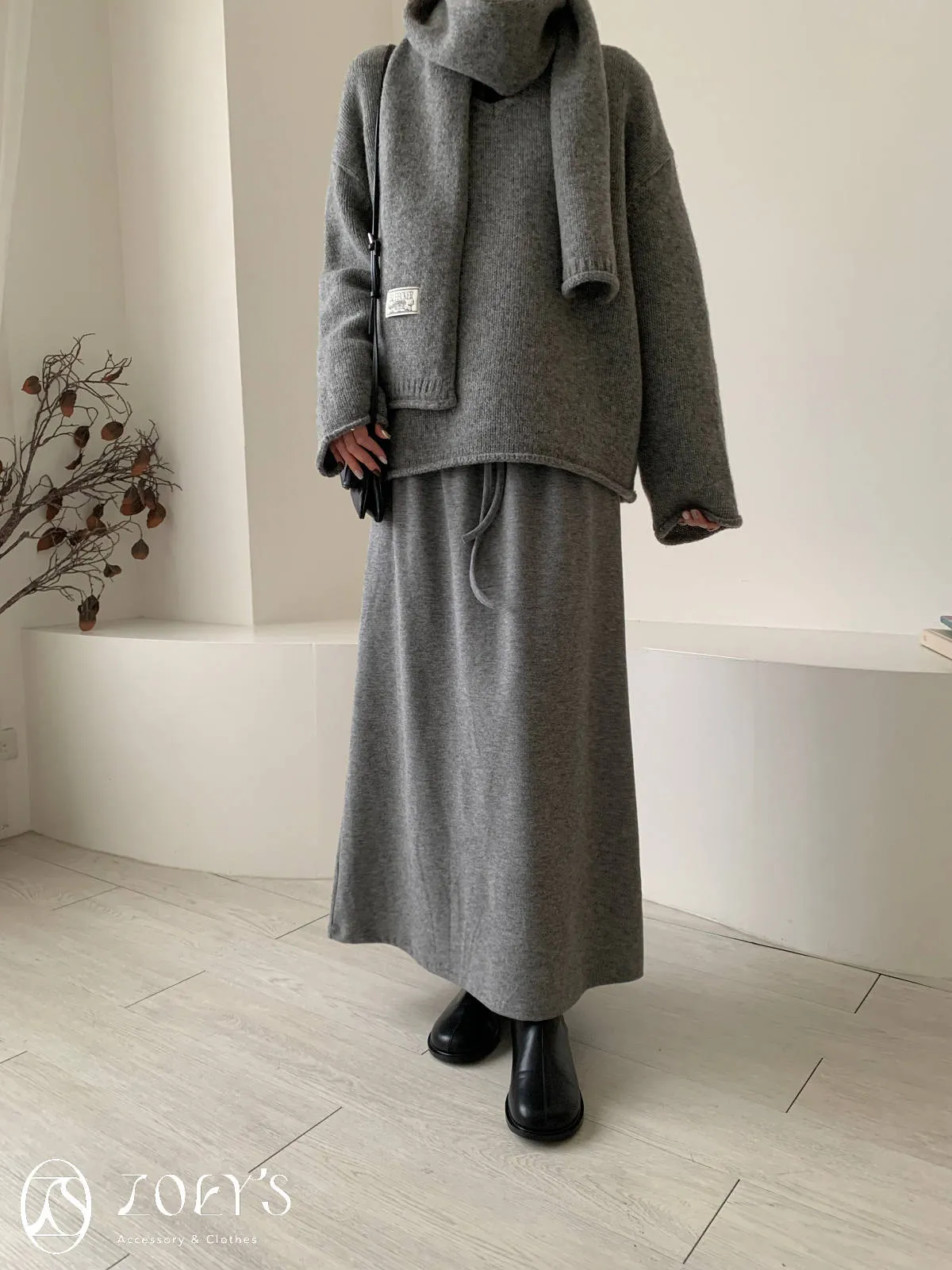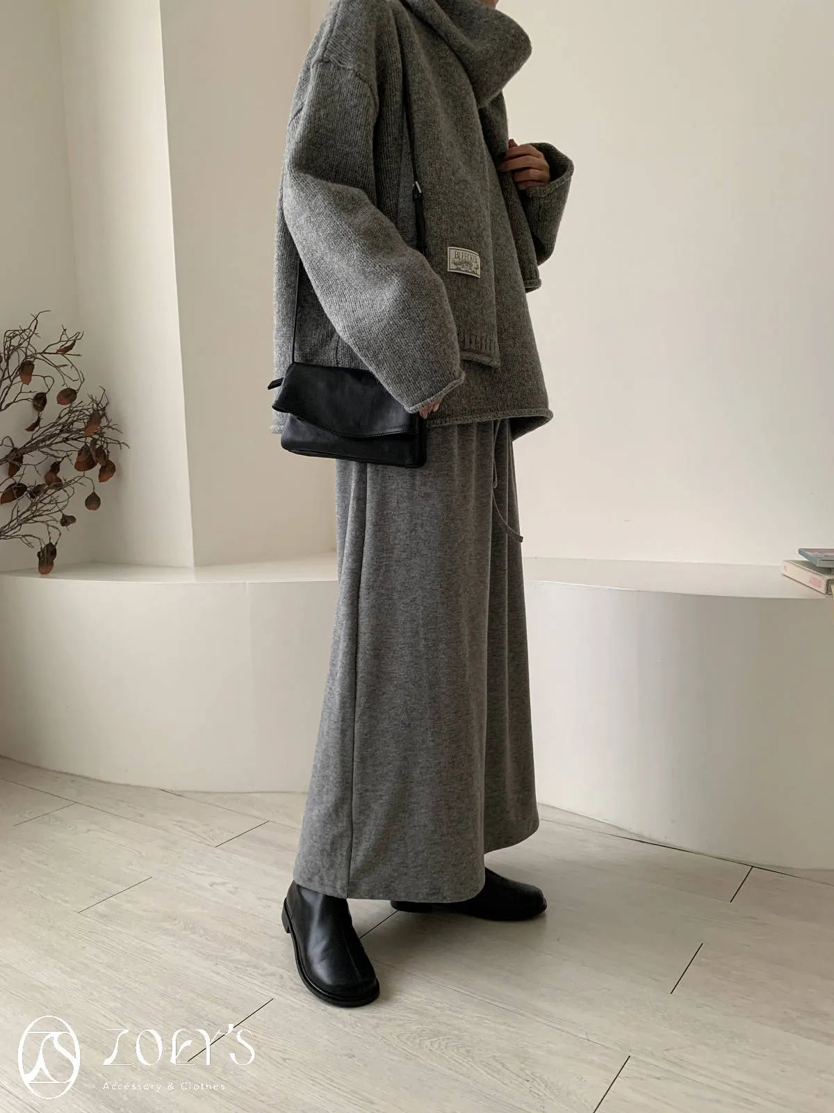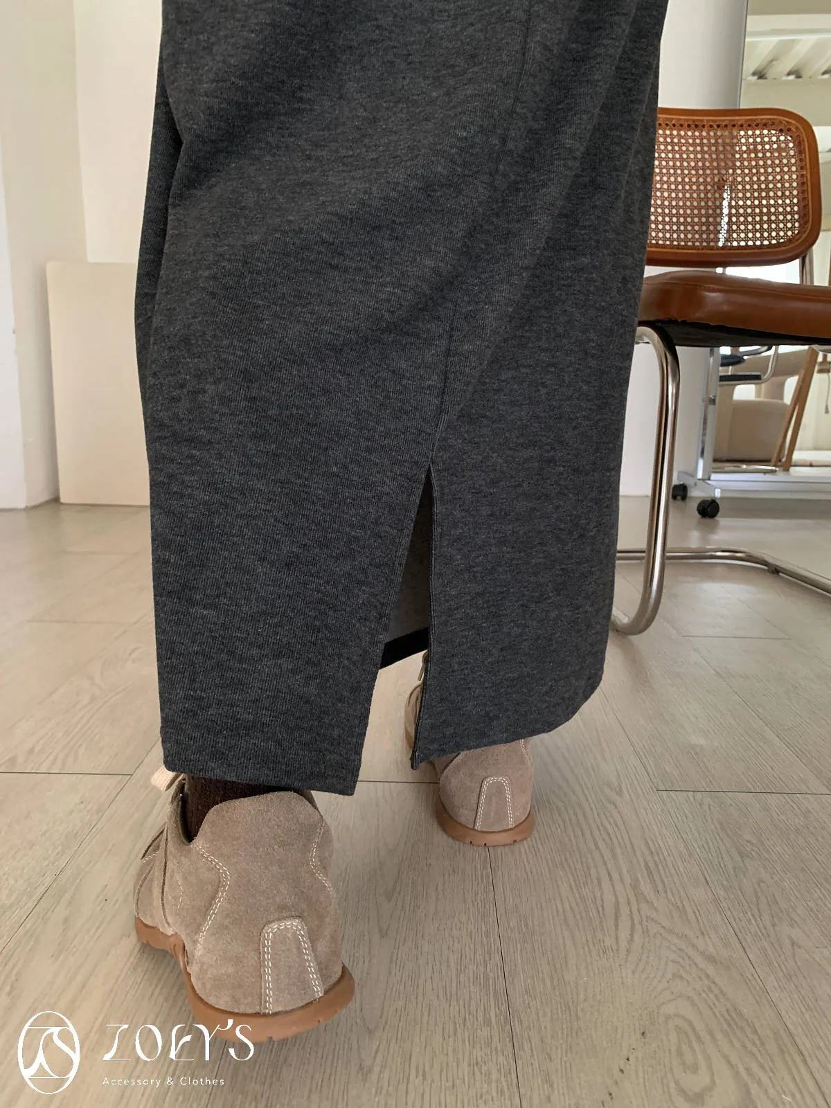 正韓 極柔綁腰內短絨長裙 墨/淺灰
