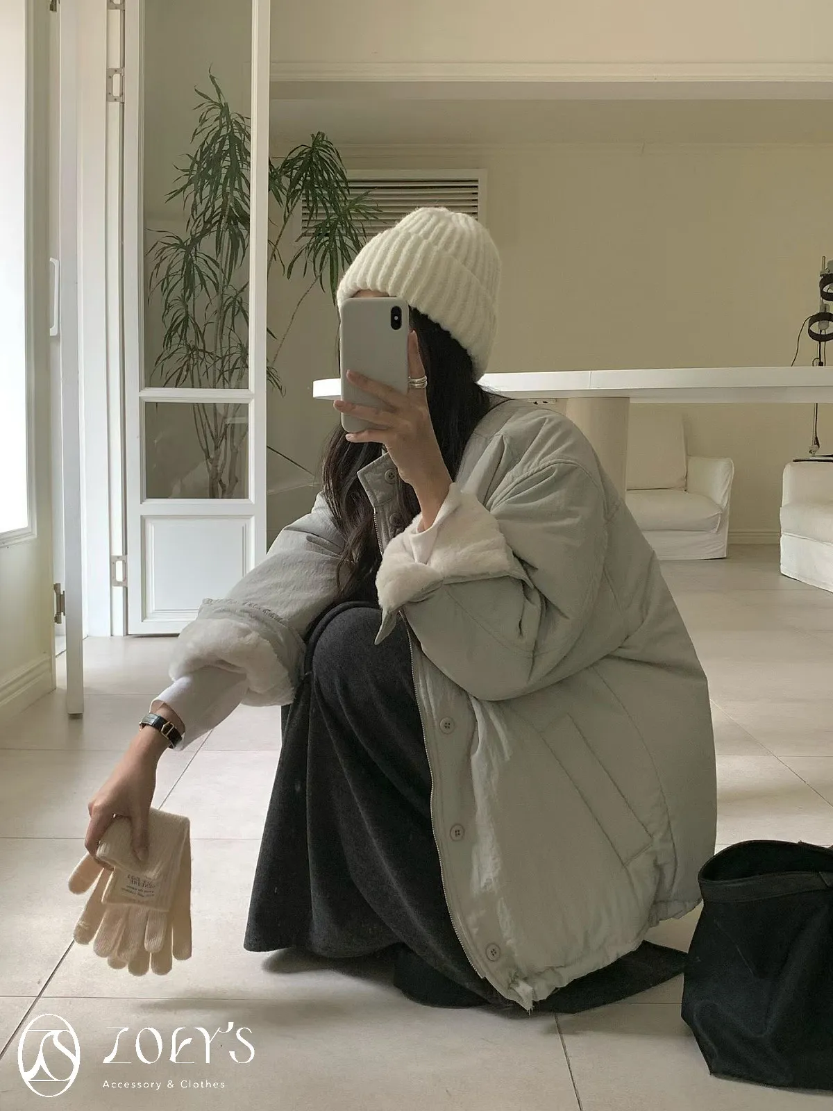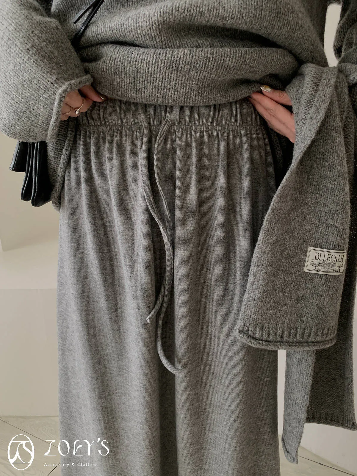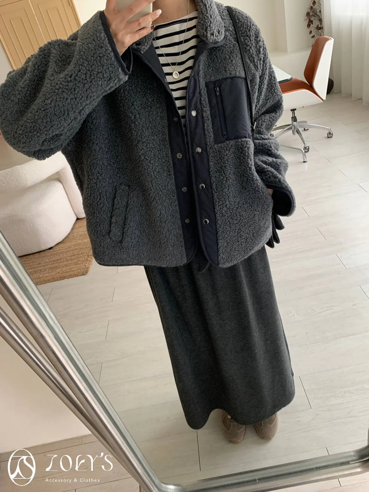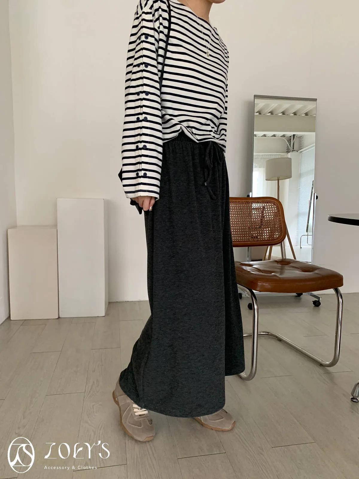 正韓 極柔綁腰內短絨長裙 墨/淺灰