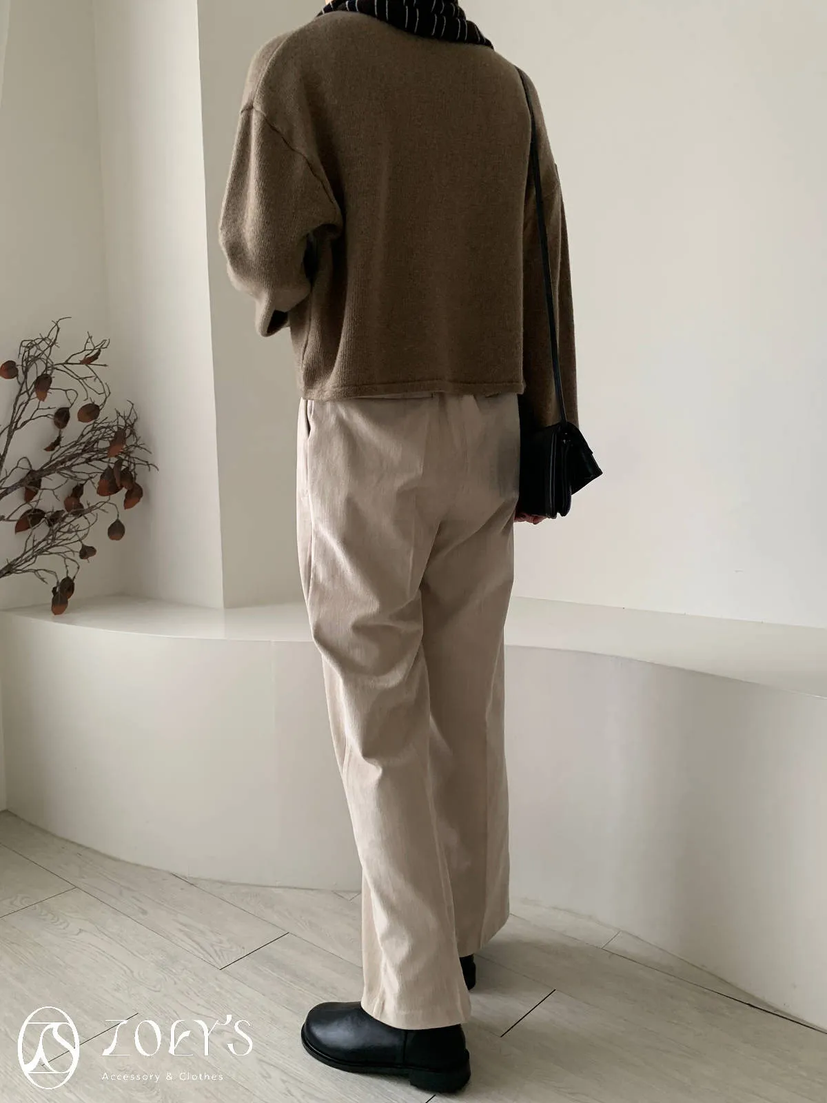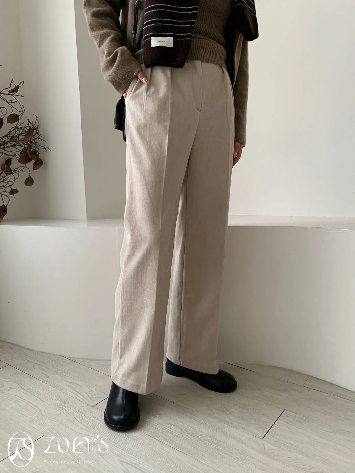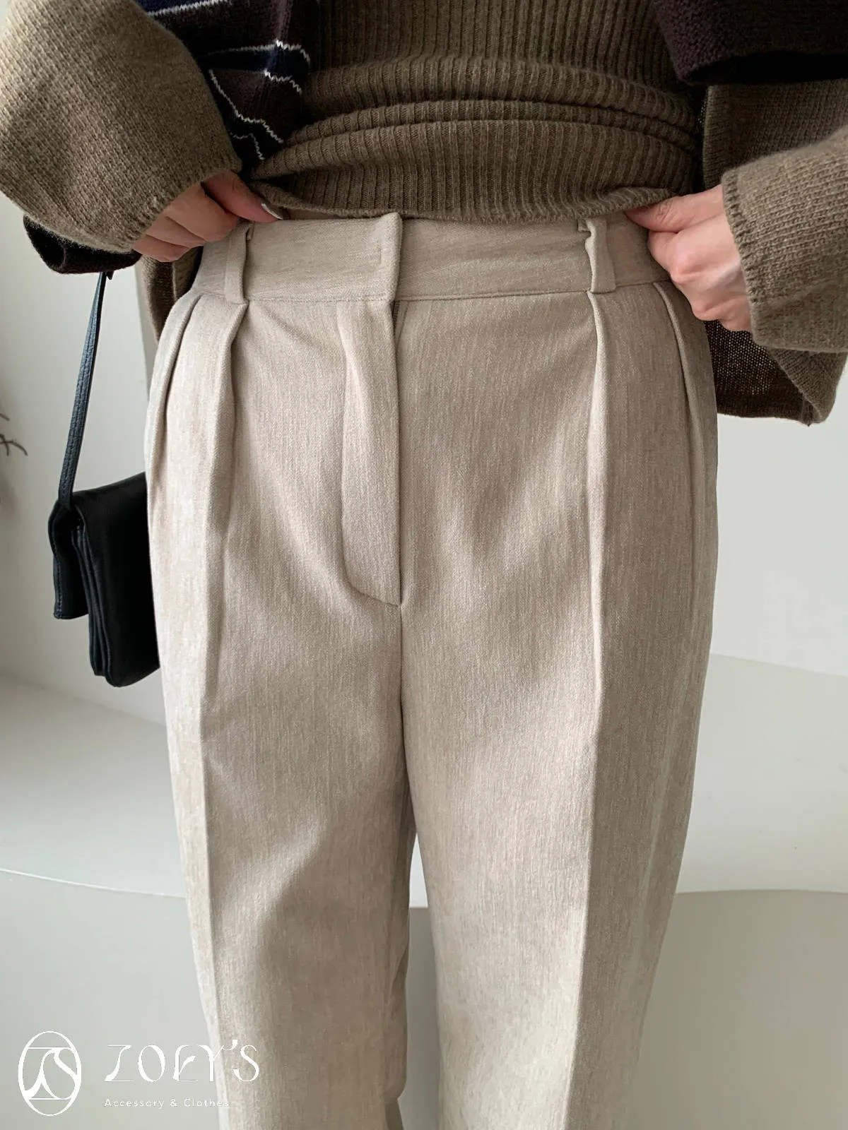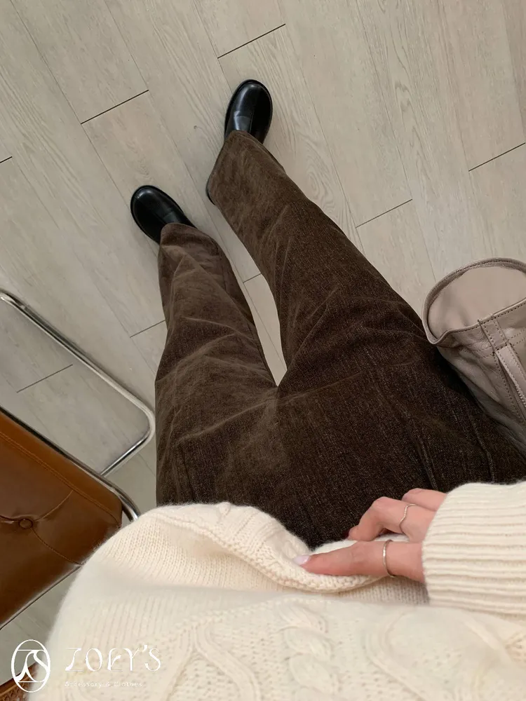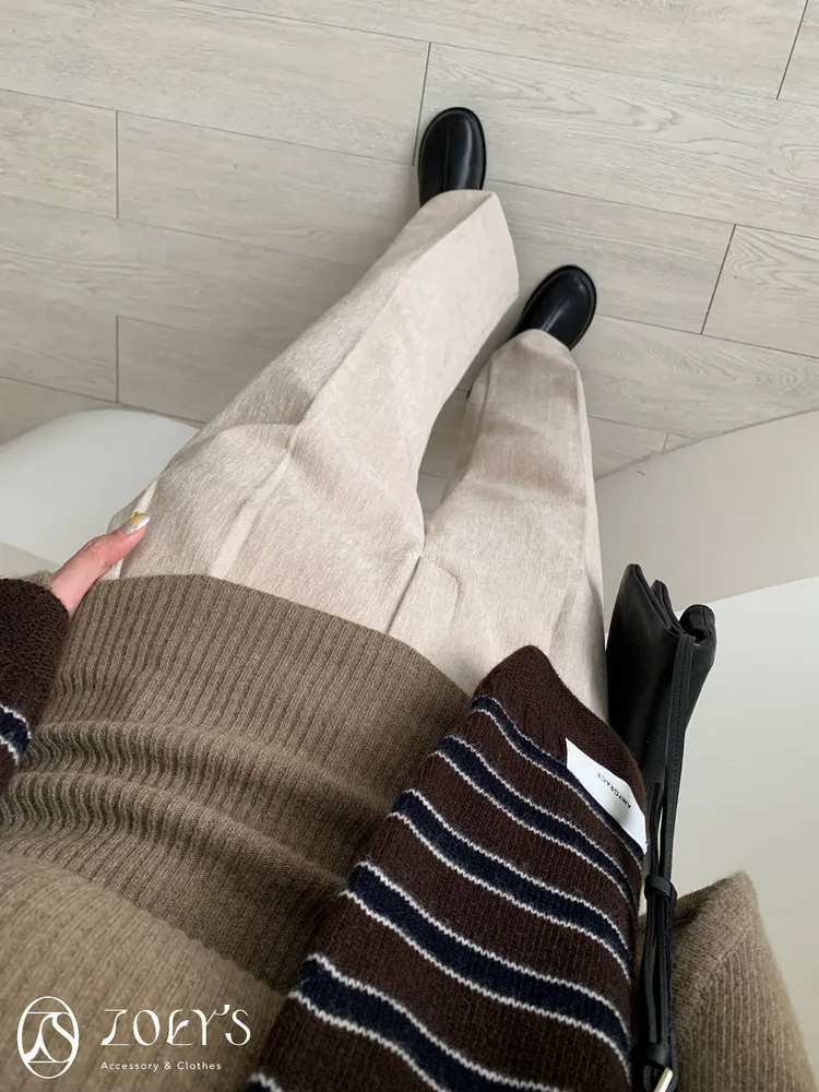正韓 高級感細直紋內短絨西裝褲 咖/米 S/M/L