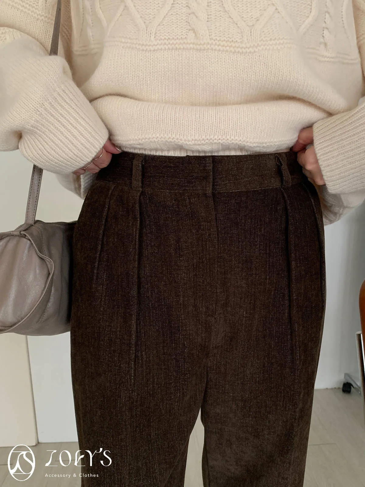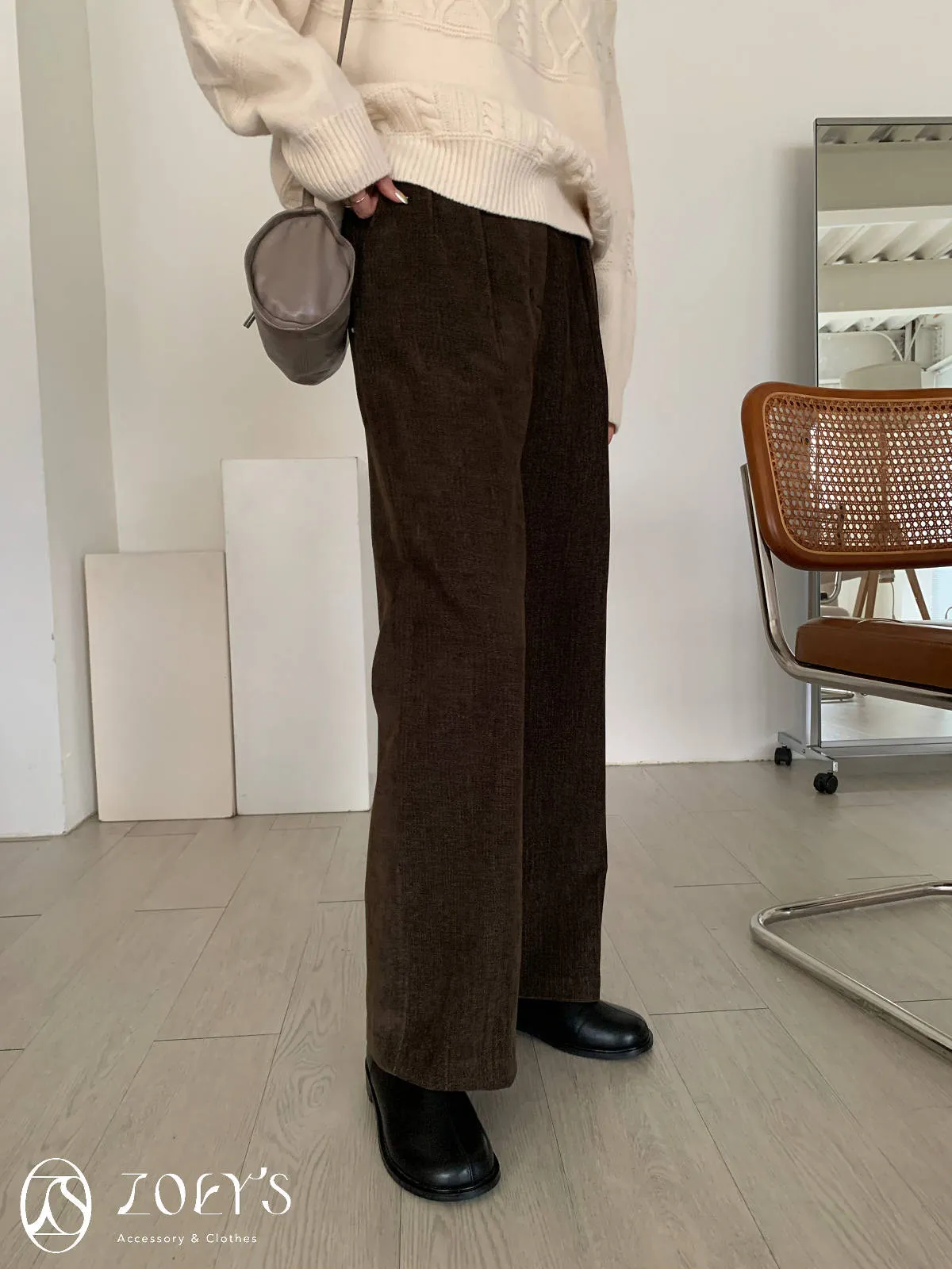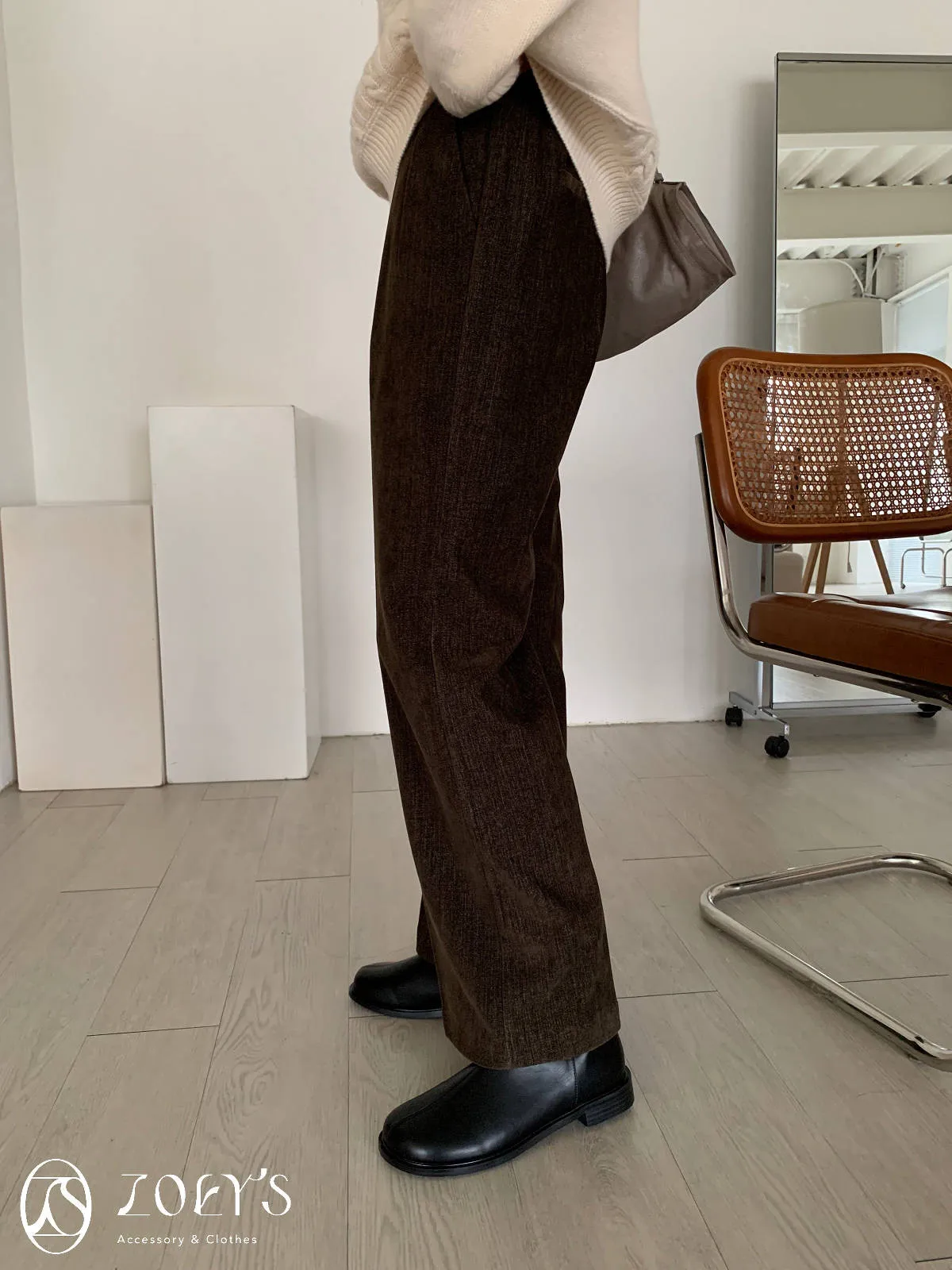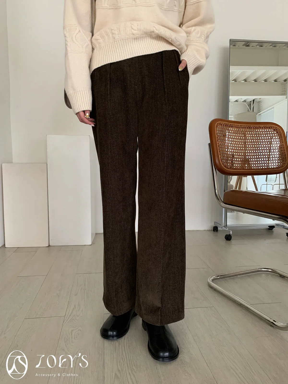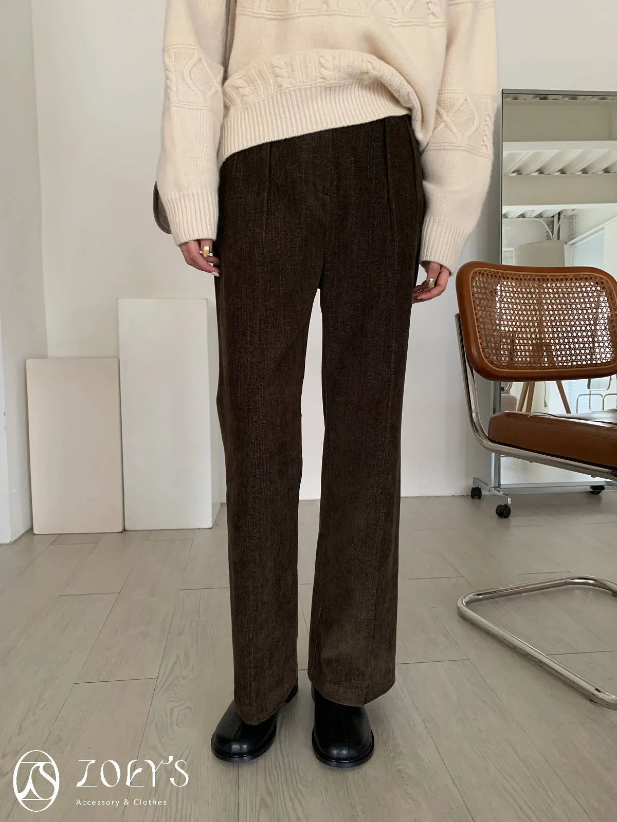 正韓 高級感細直紋內短絨西裝褲 咖/米 S/M/L
