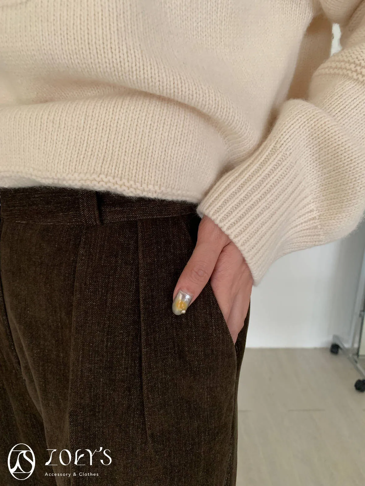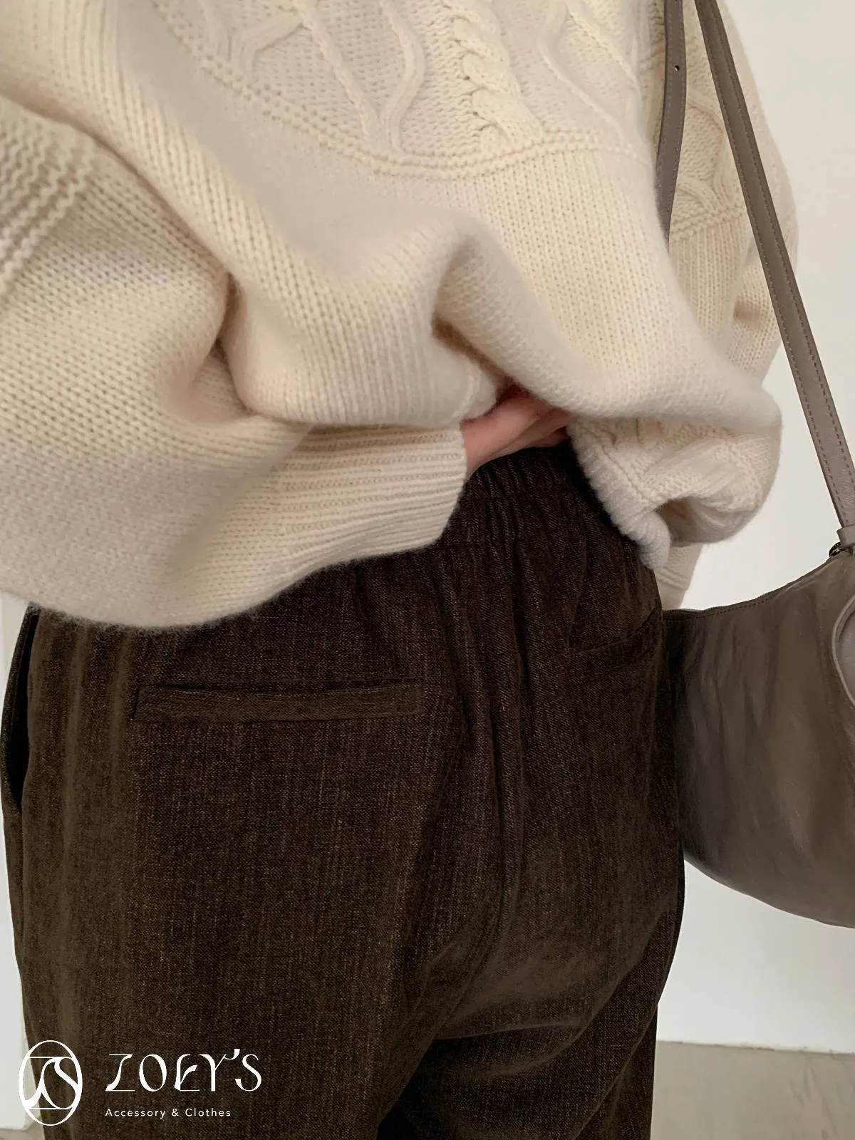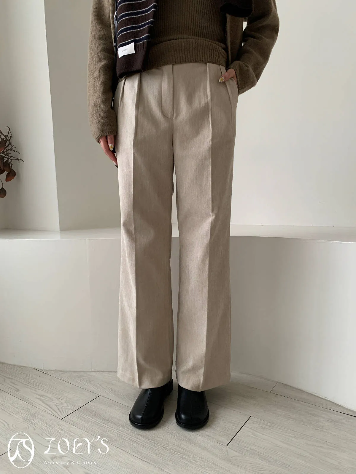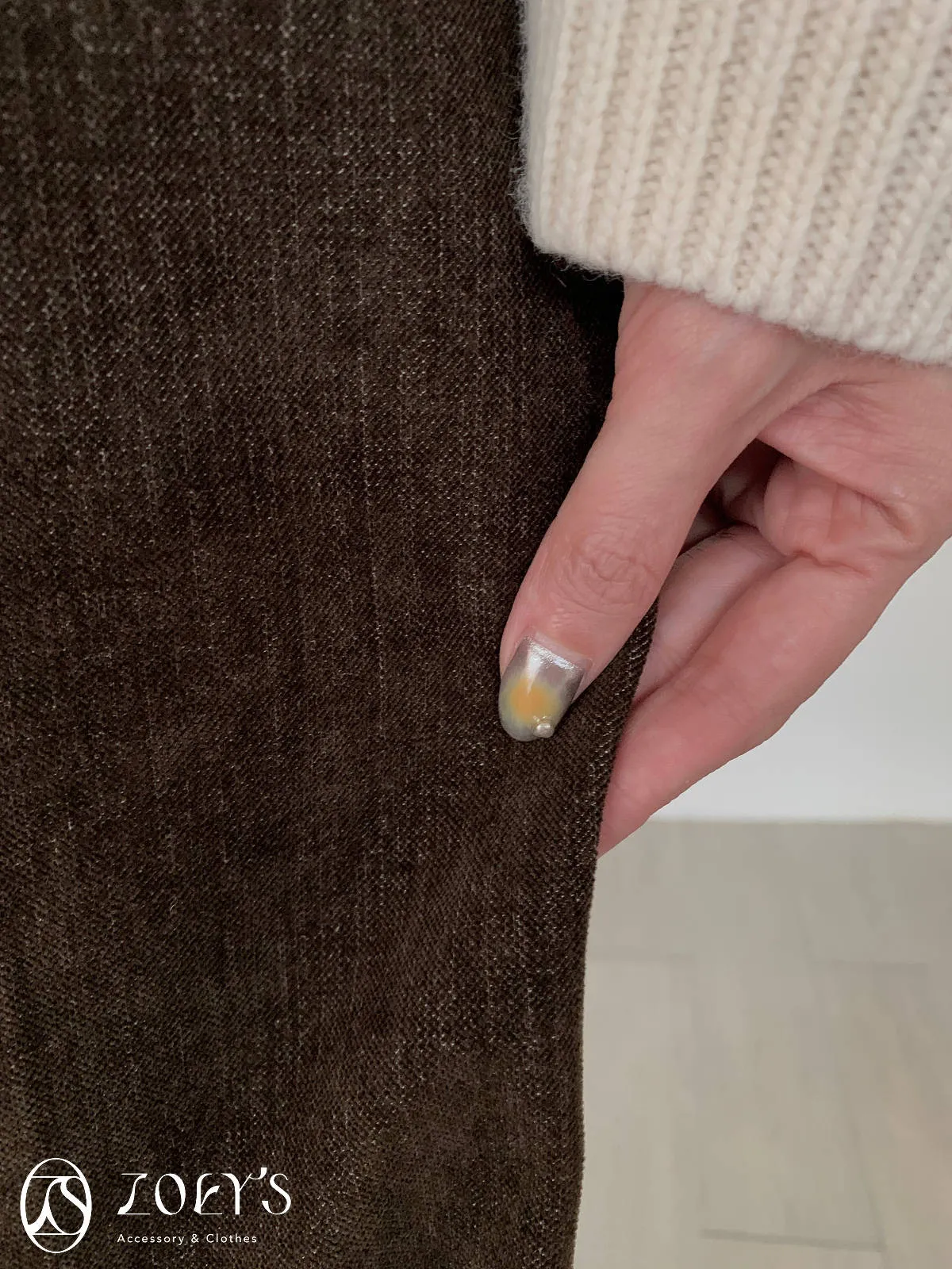 正韓 高級感細直紋內短絨西裝褲 咖/米 S/M/L