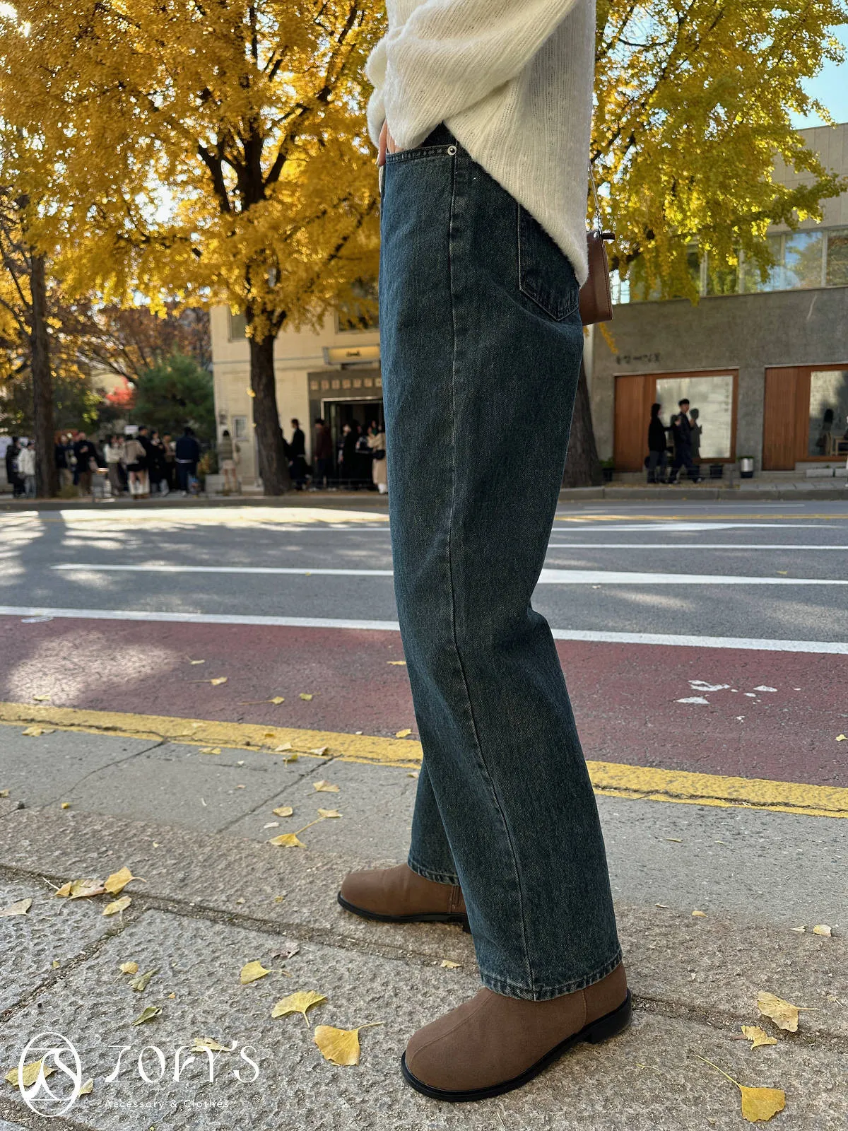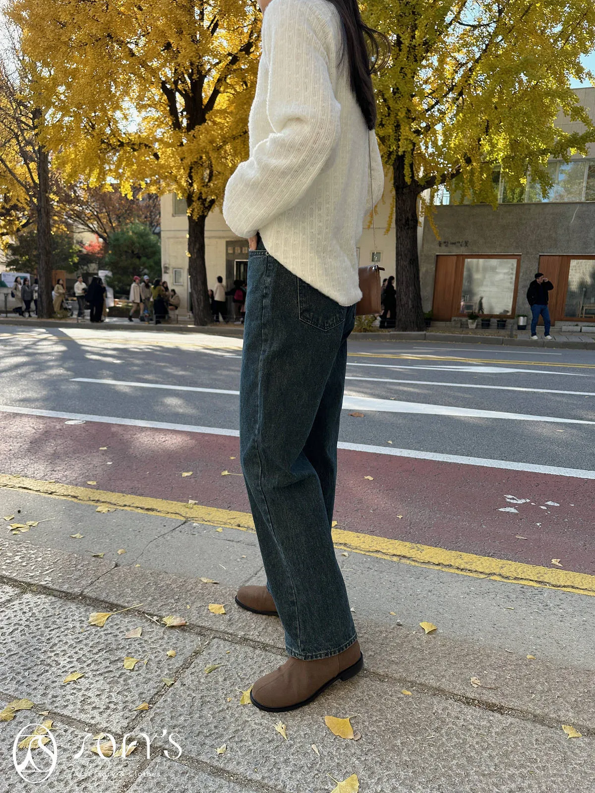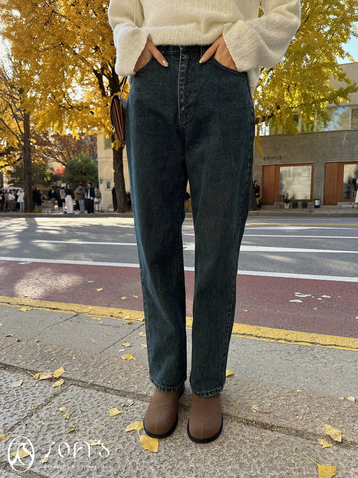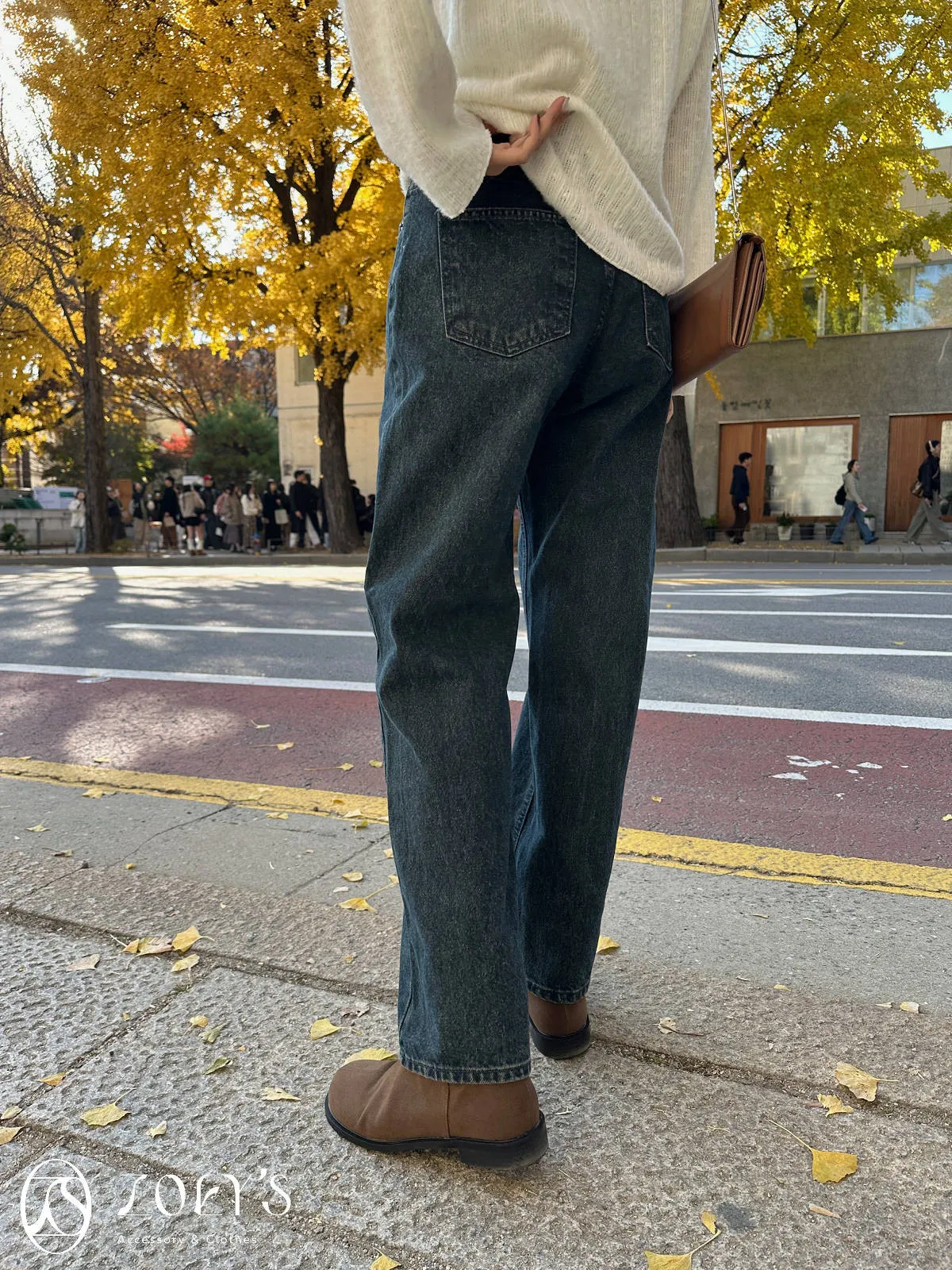 正韓 仿舊深藍內短絨牛仔直筒褲 S/M