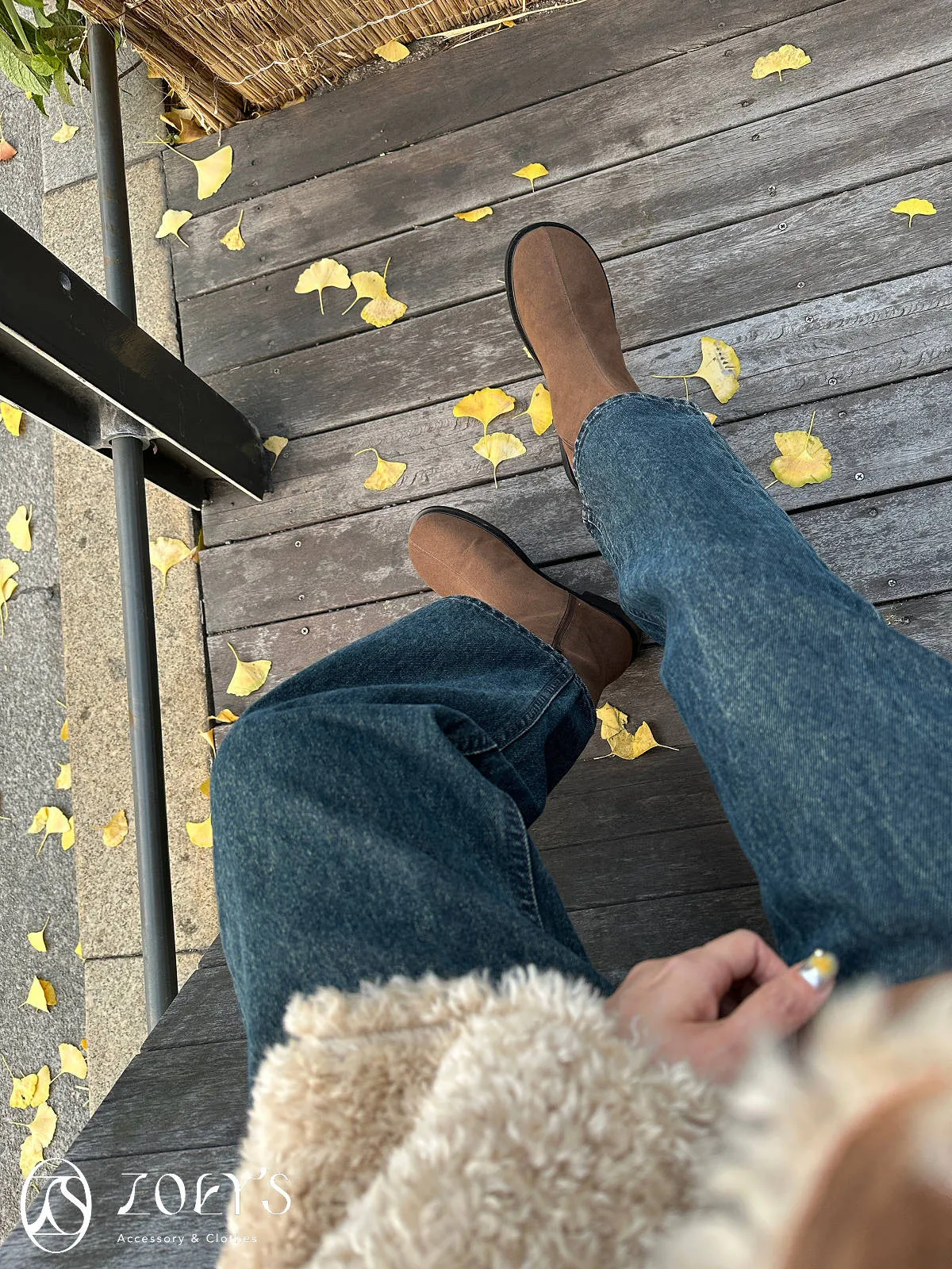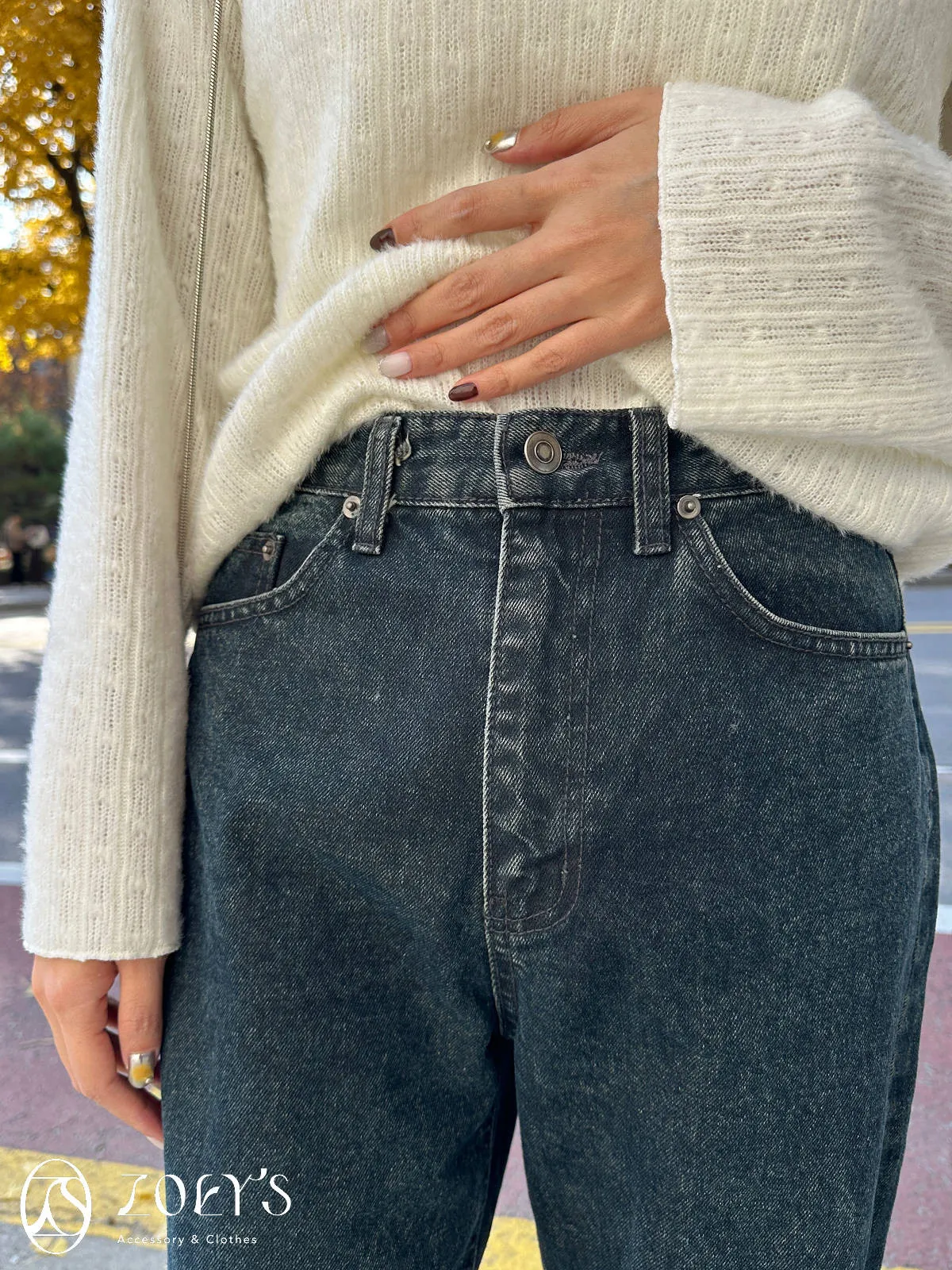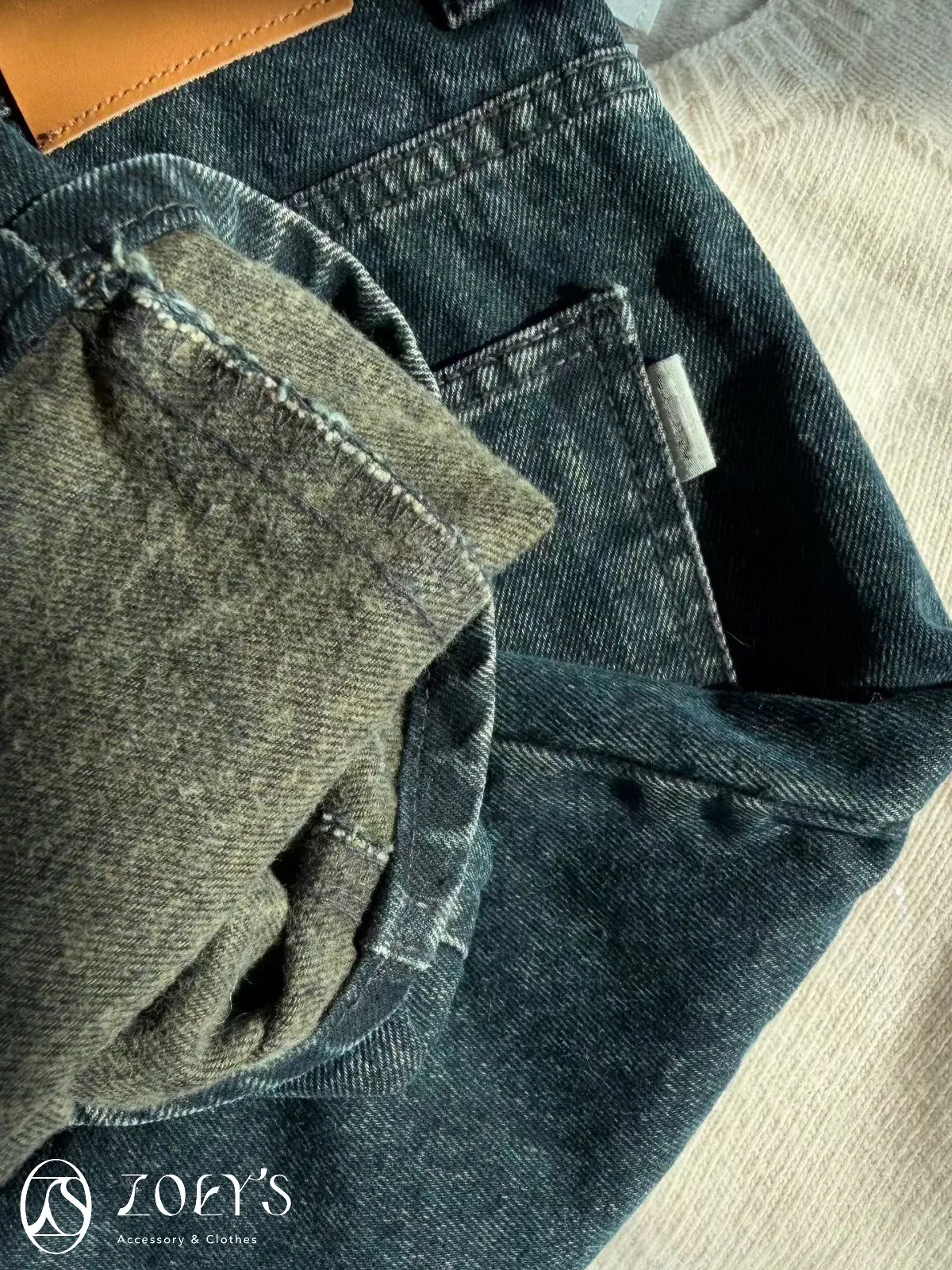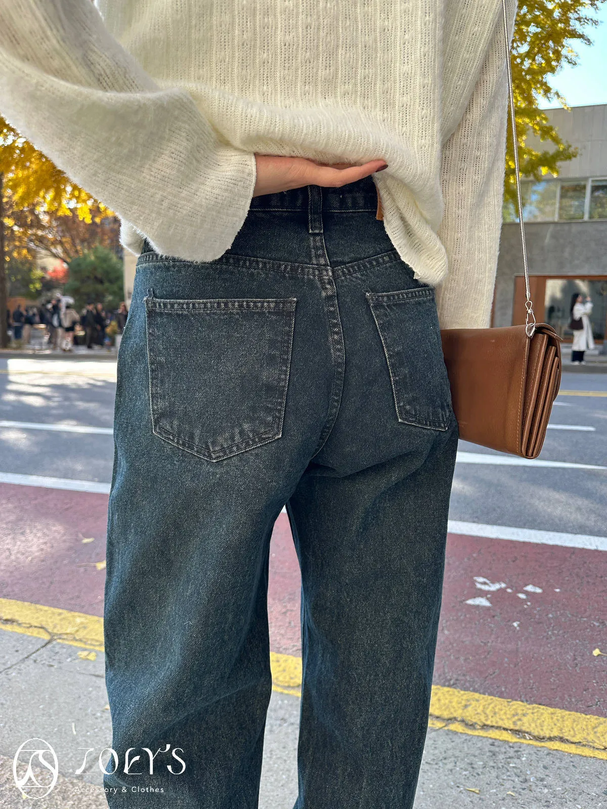 正韓 仿舊深藍內短絨牛仔直筒褲 S/M