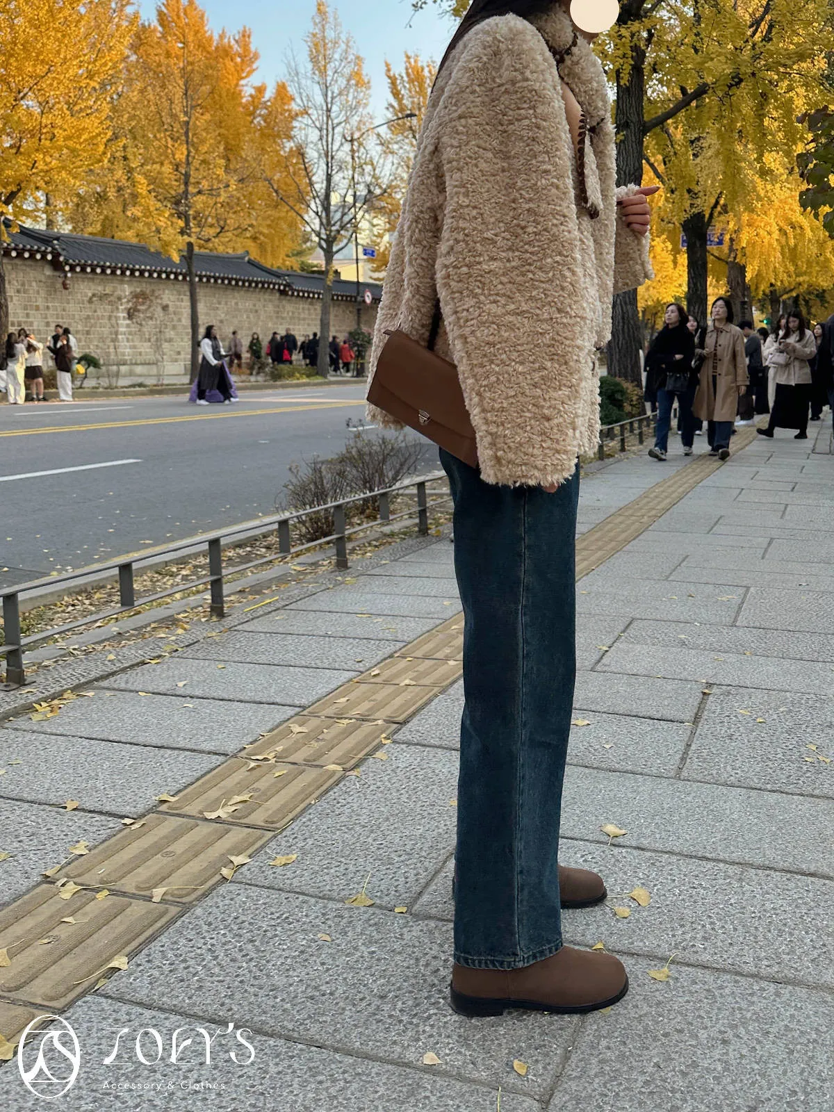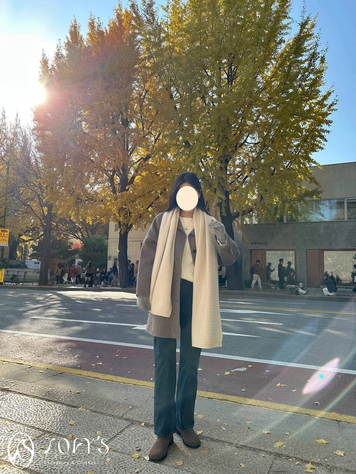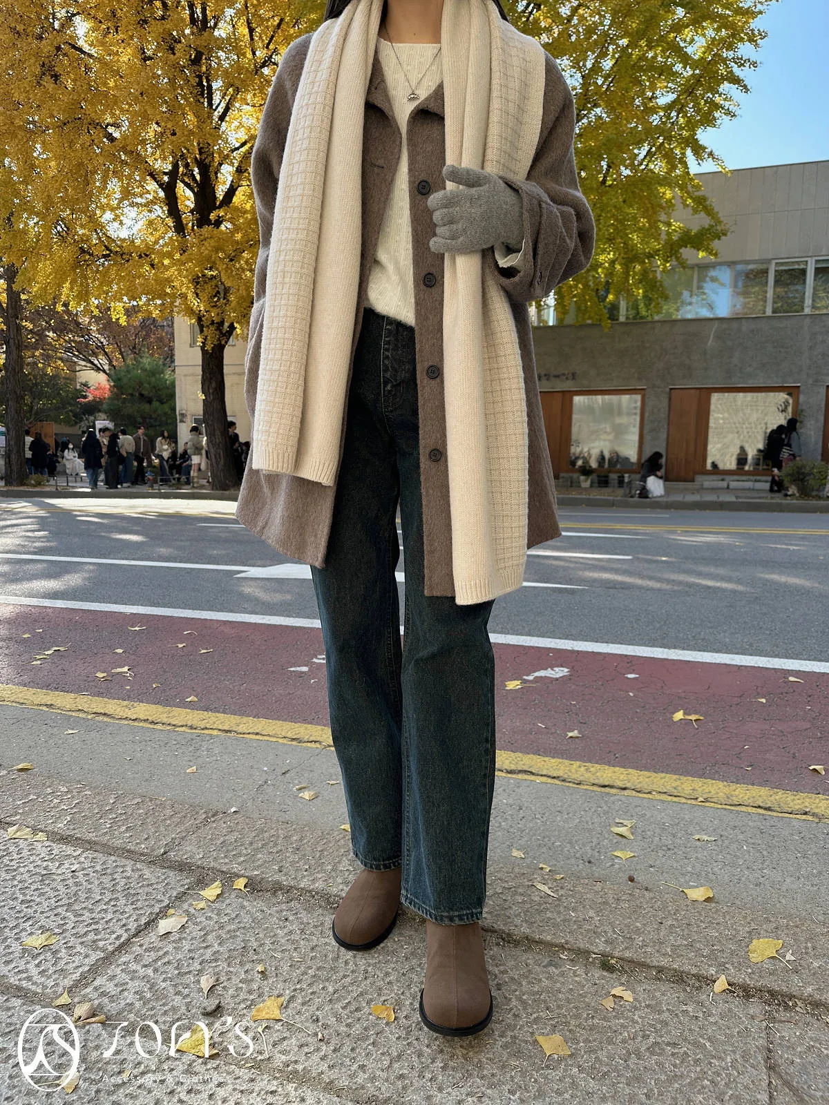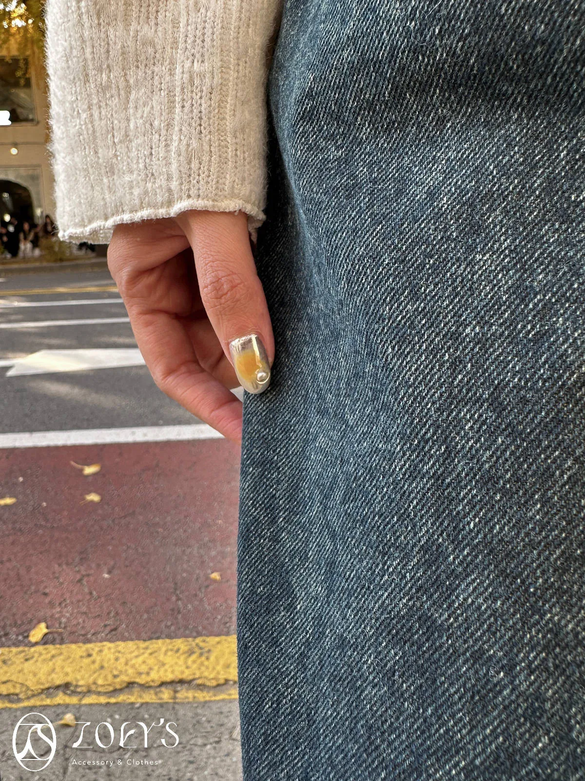 正韓 仿舊深藍內短絨牛仔直筒褲 S/M