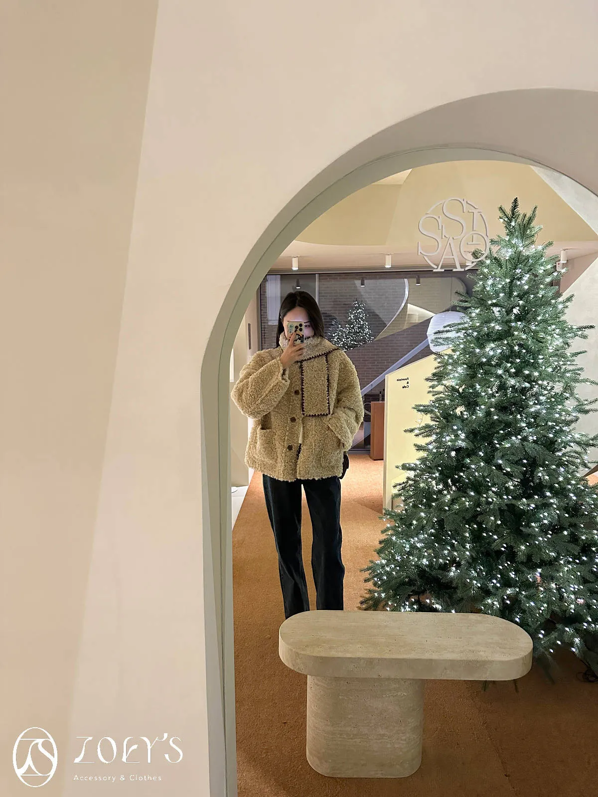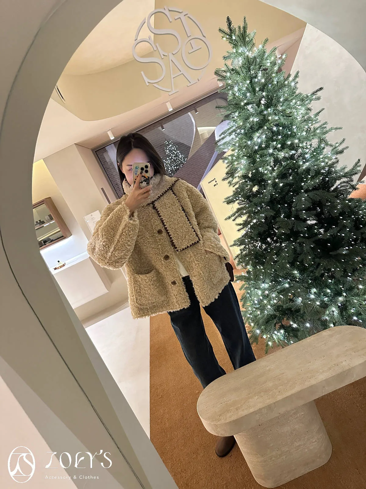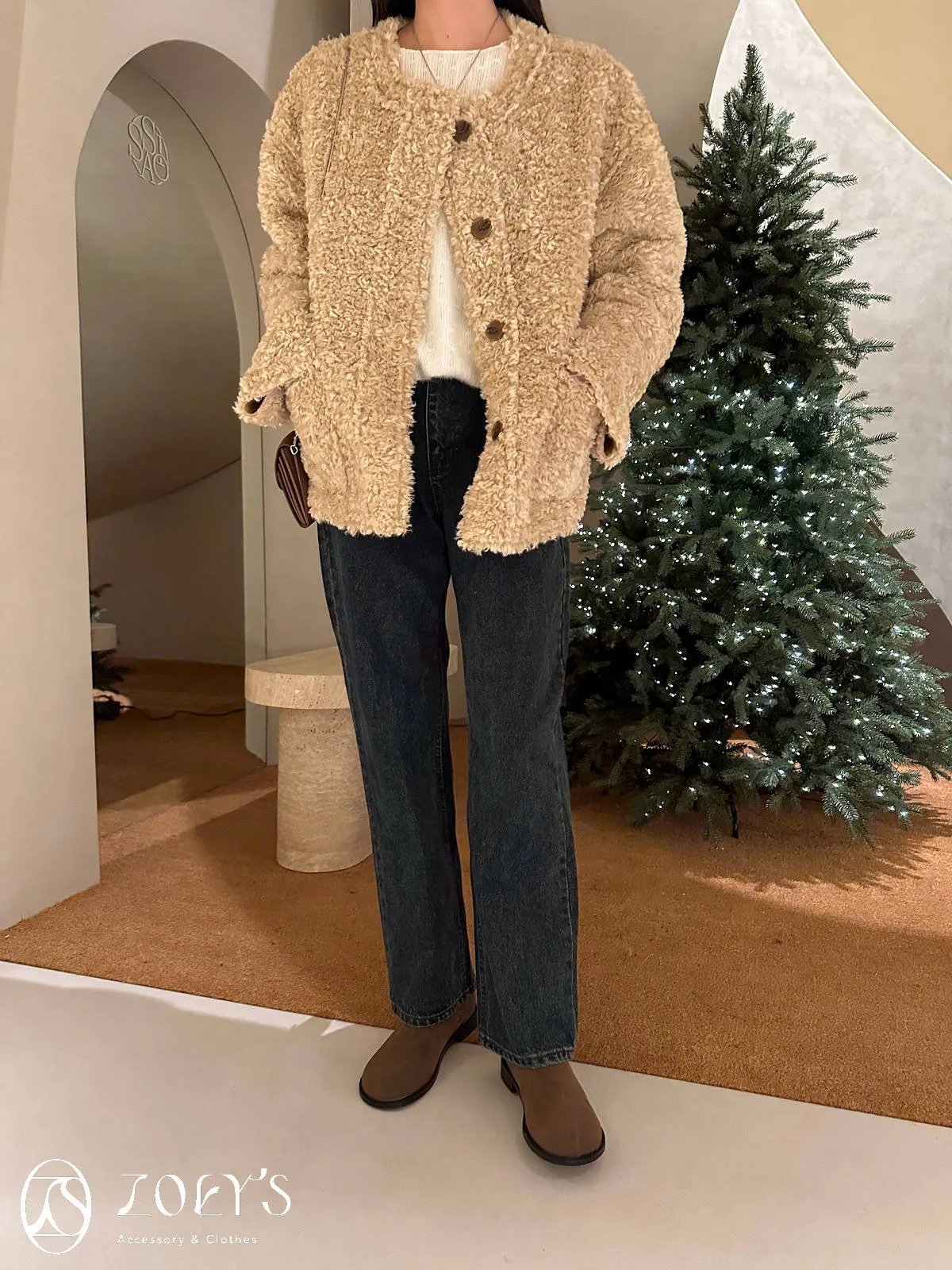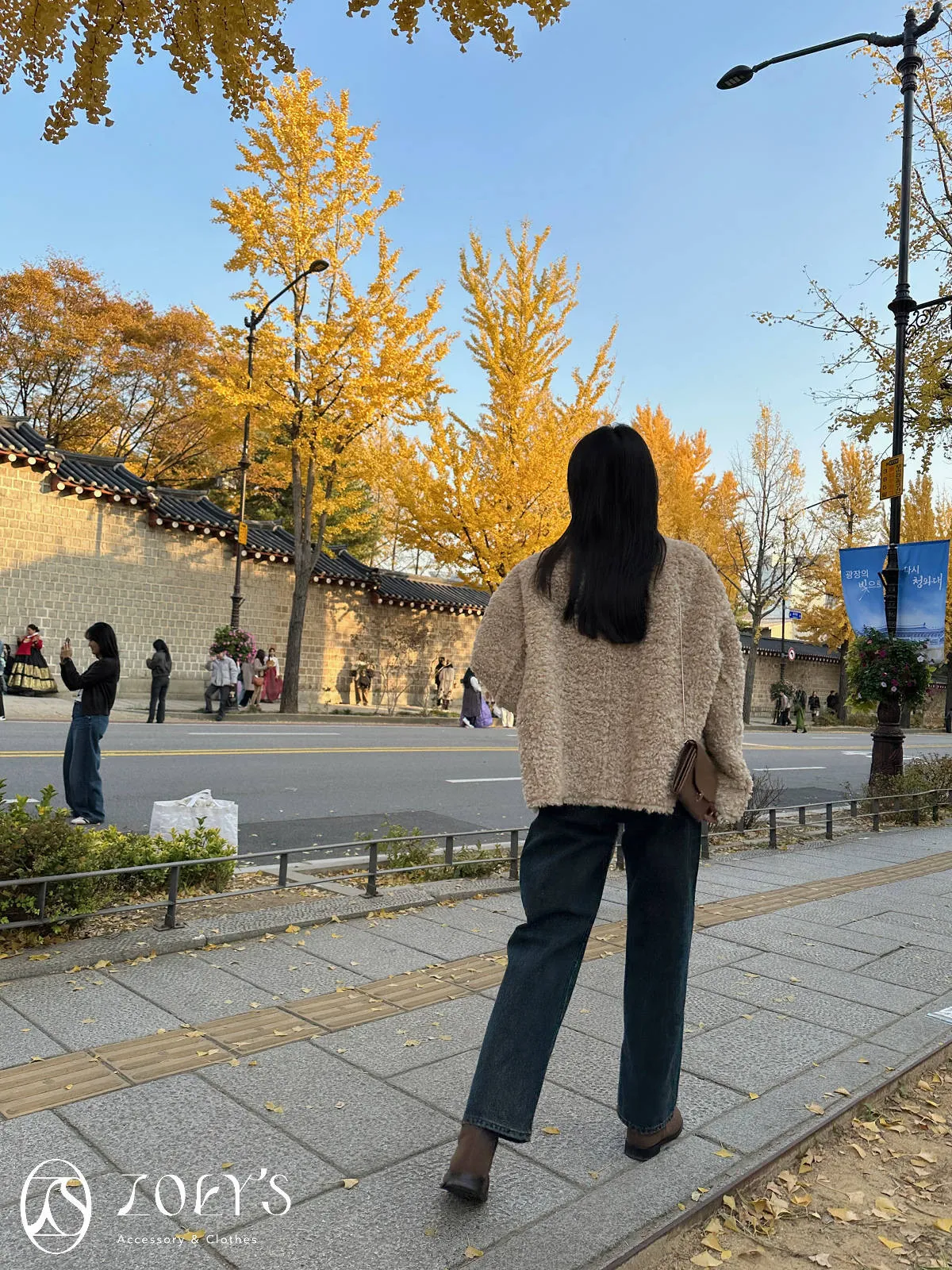 正韓 仿舊深藍內短絨牛仔直筒褲 S/M