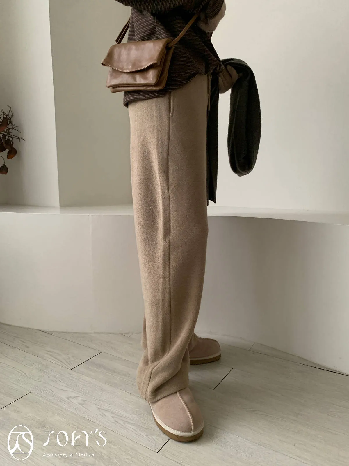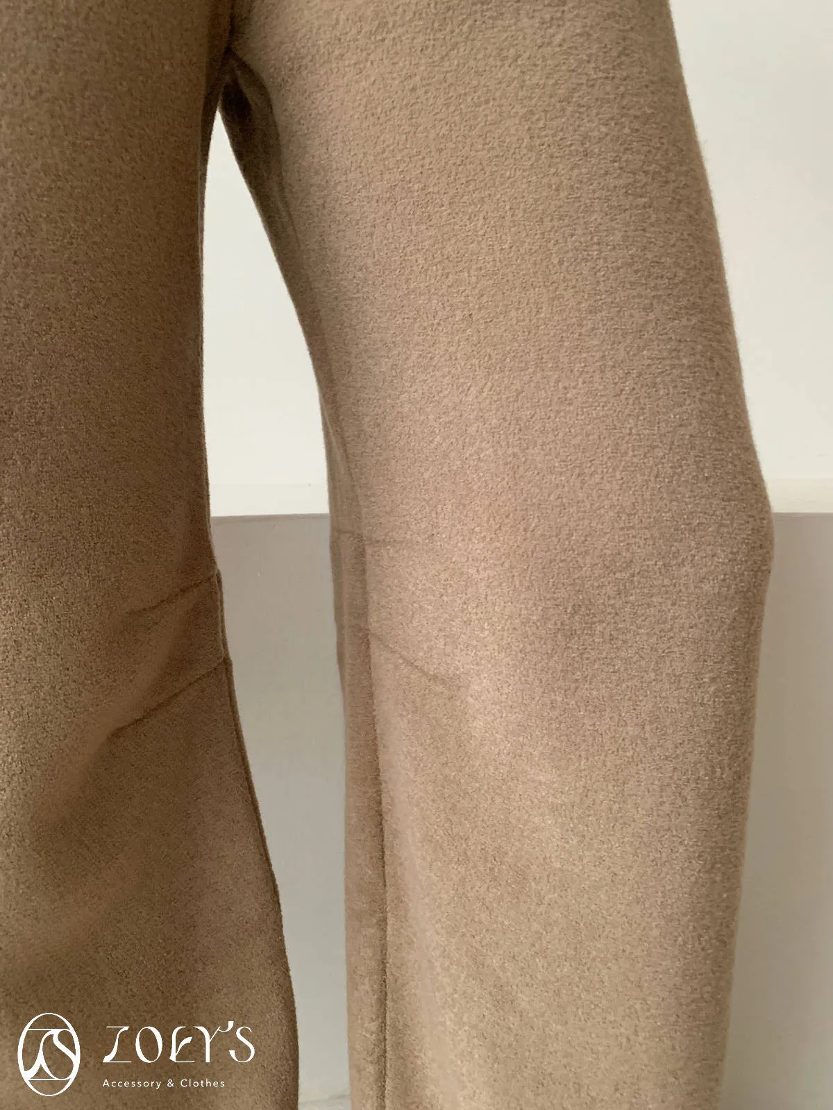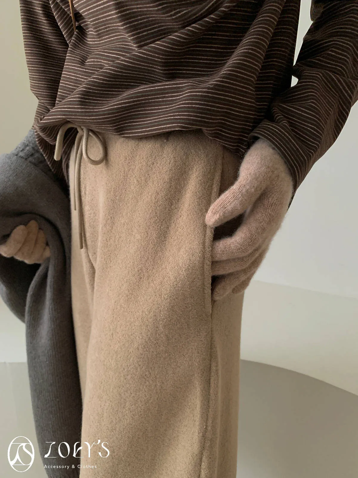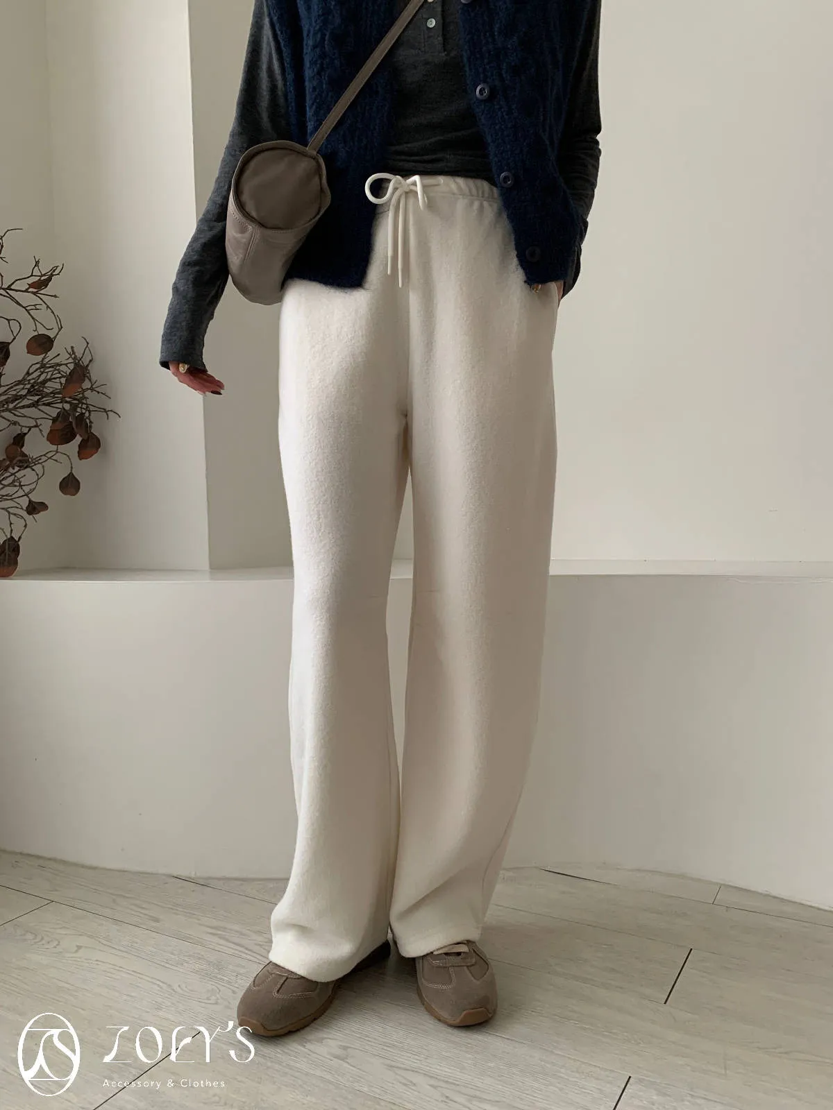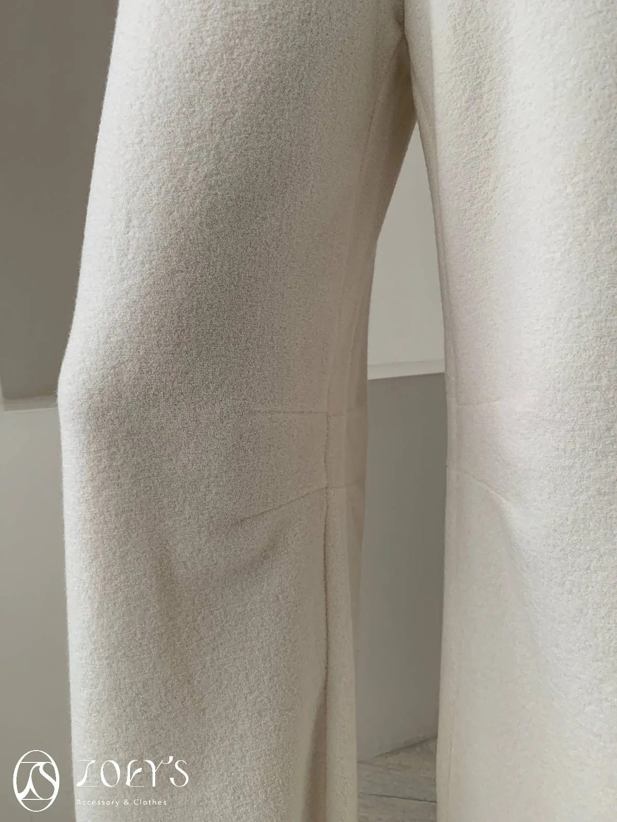 正韓 剪裁線條綁腰羊毛寬褲 卡其/白 S/M