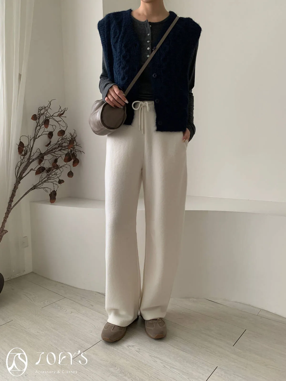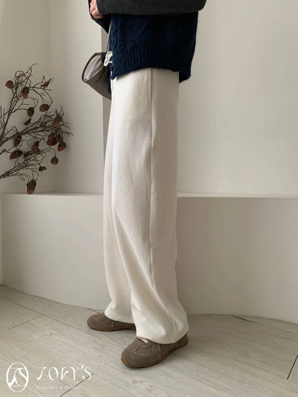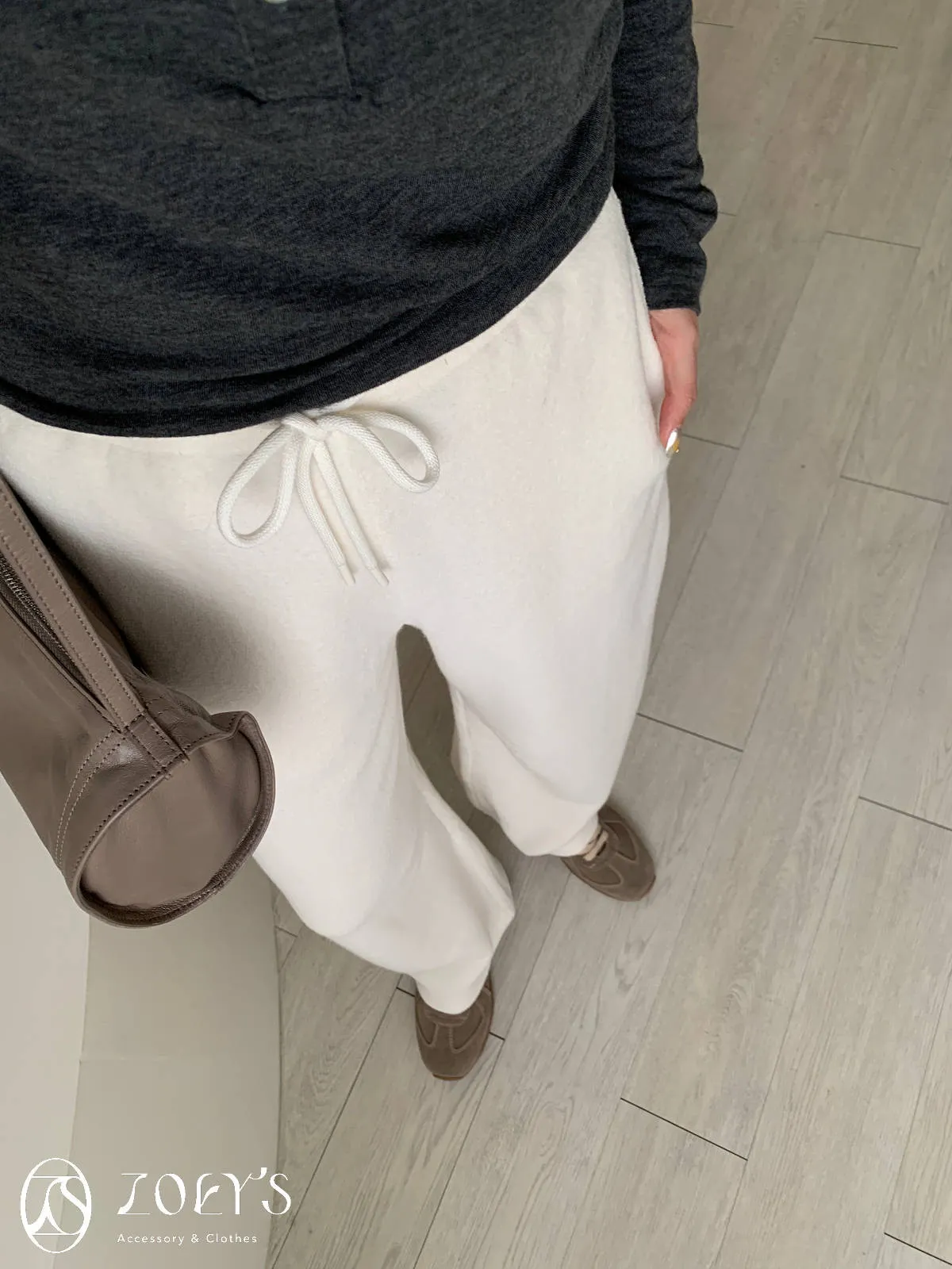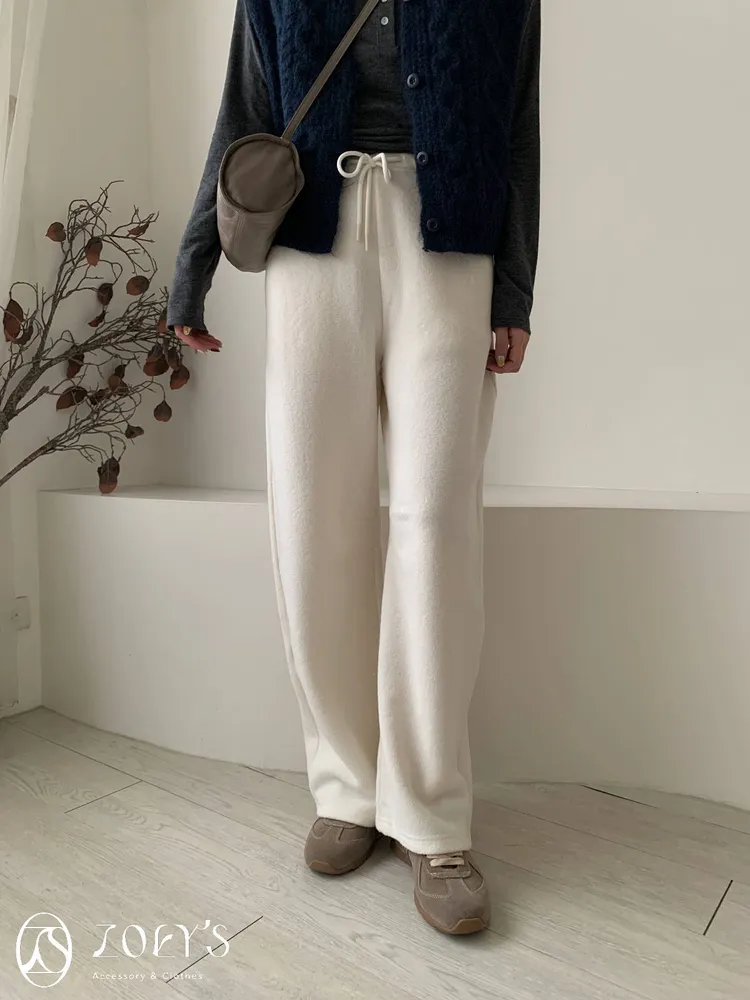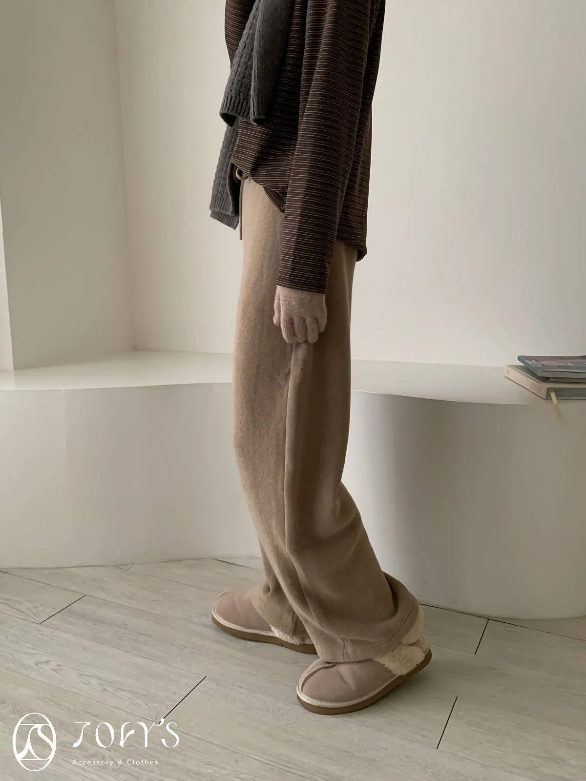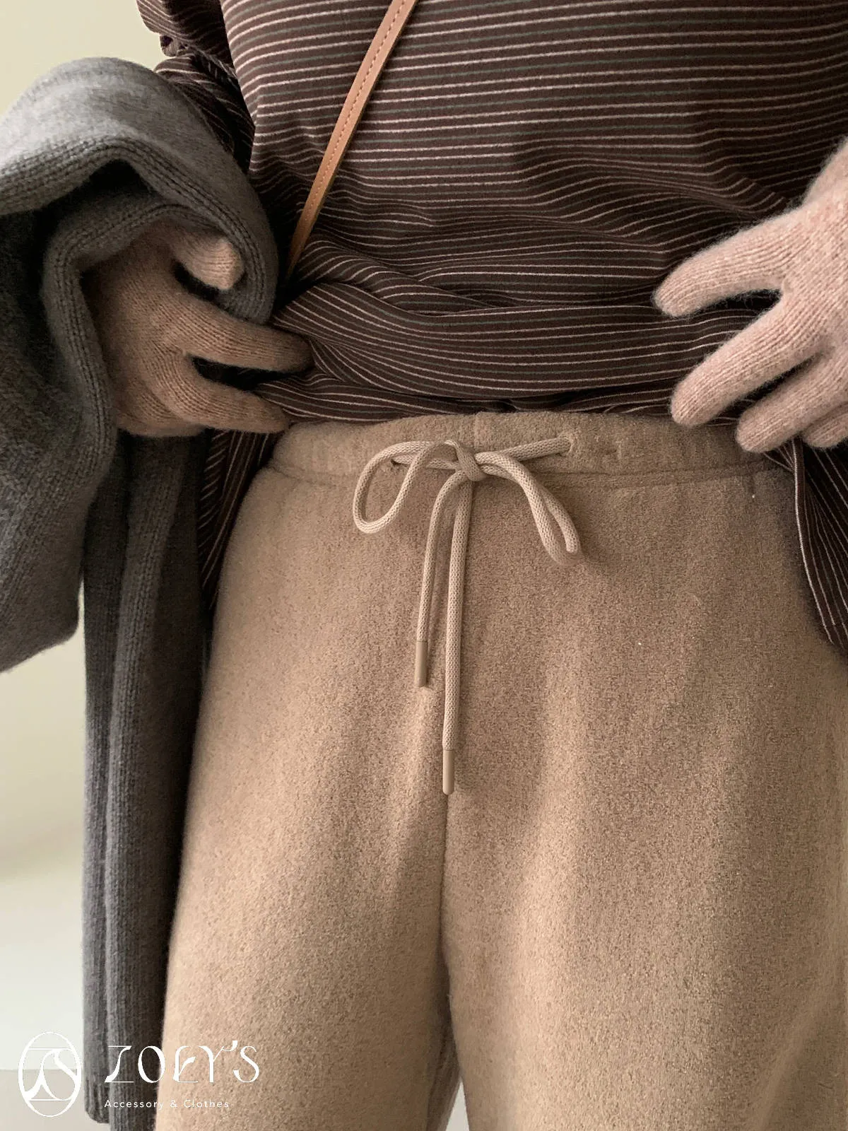 正韓 剪裁線條綁腰羊毛寬褲 卡其/白 S/M