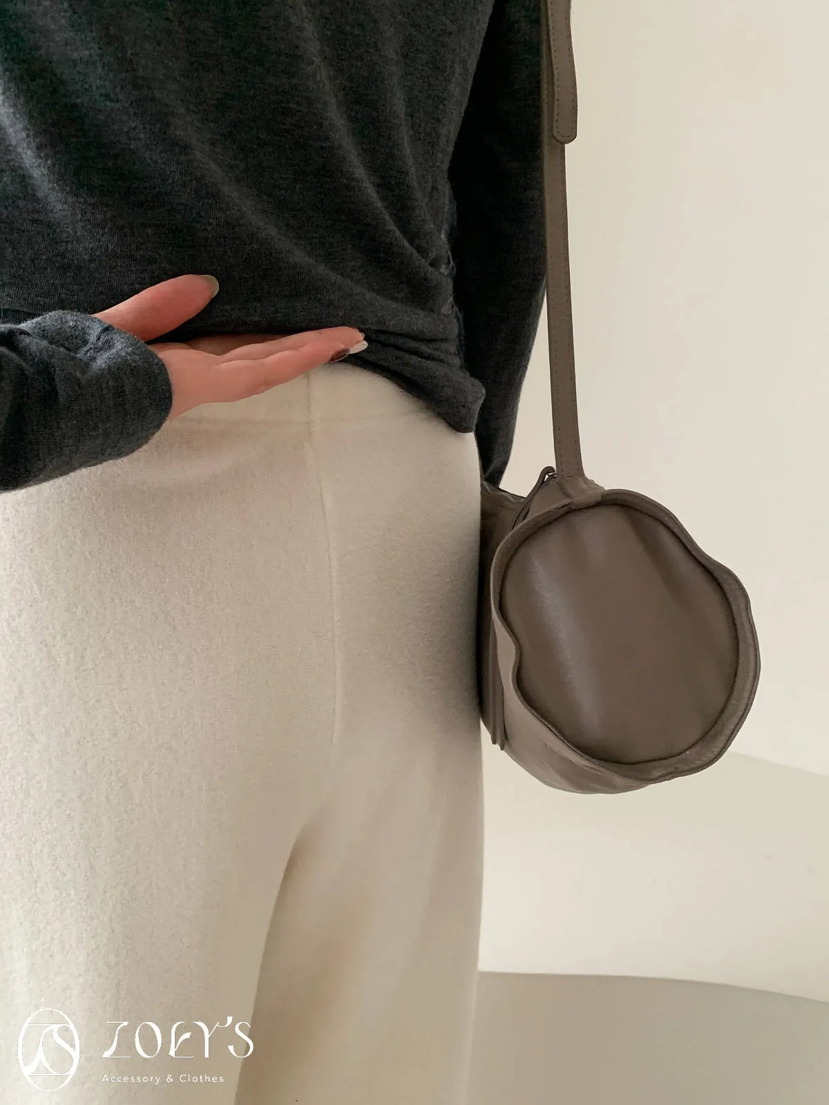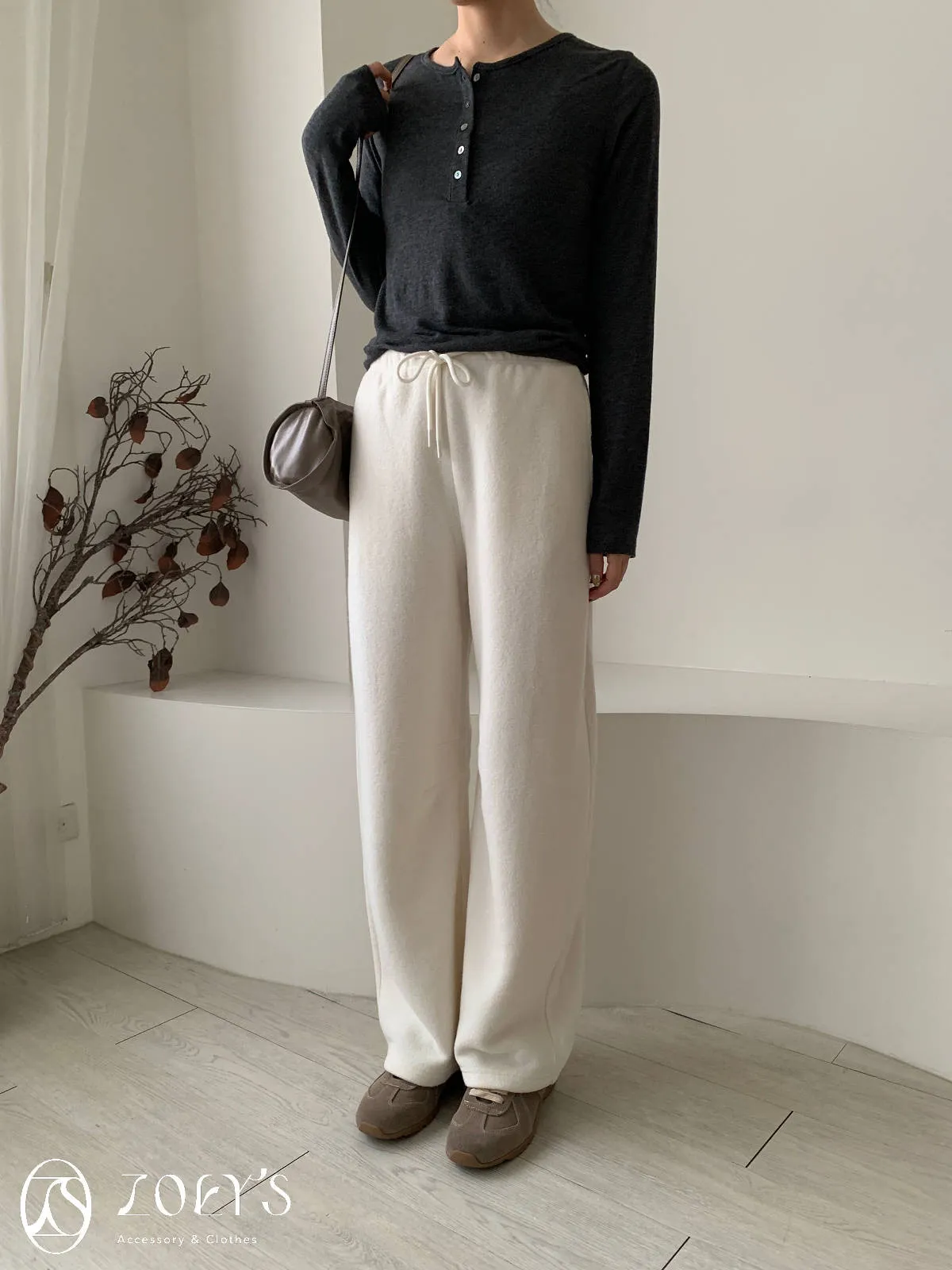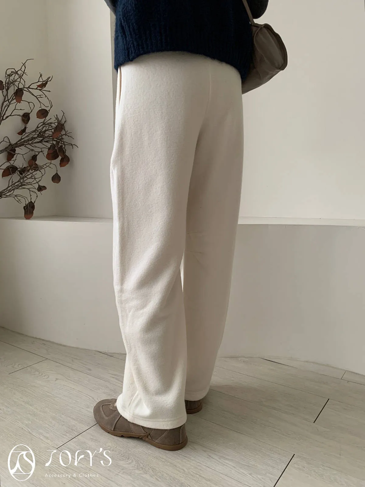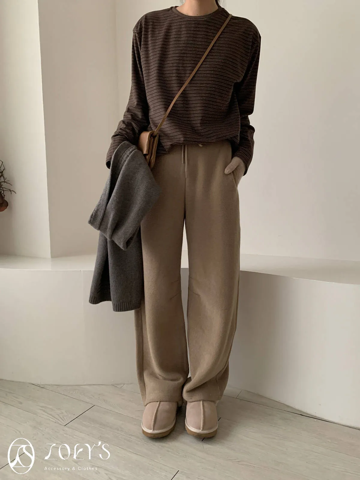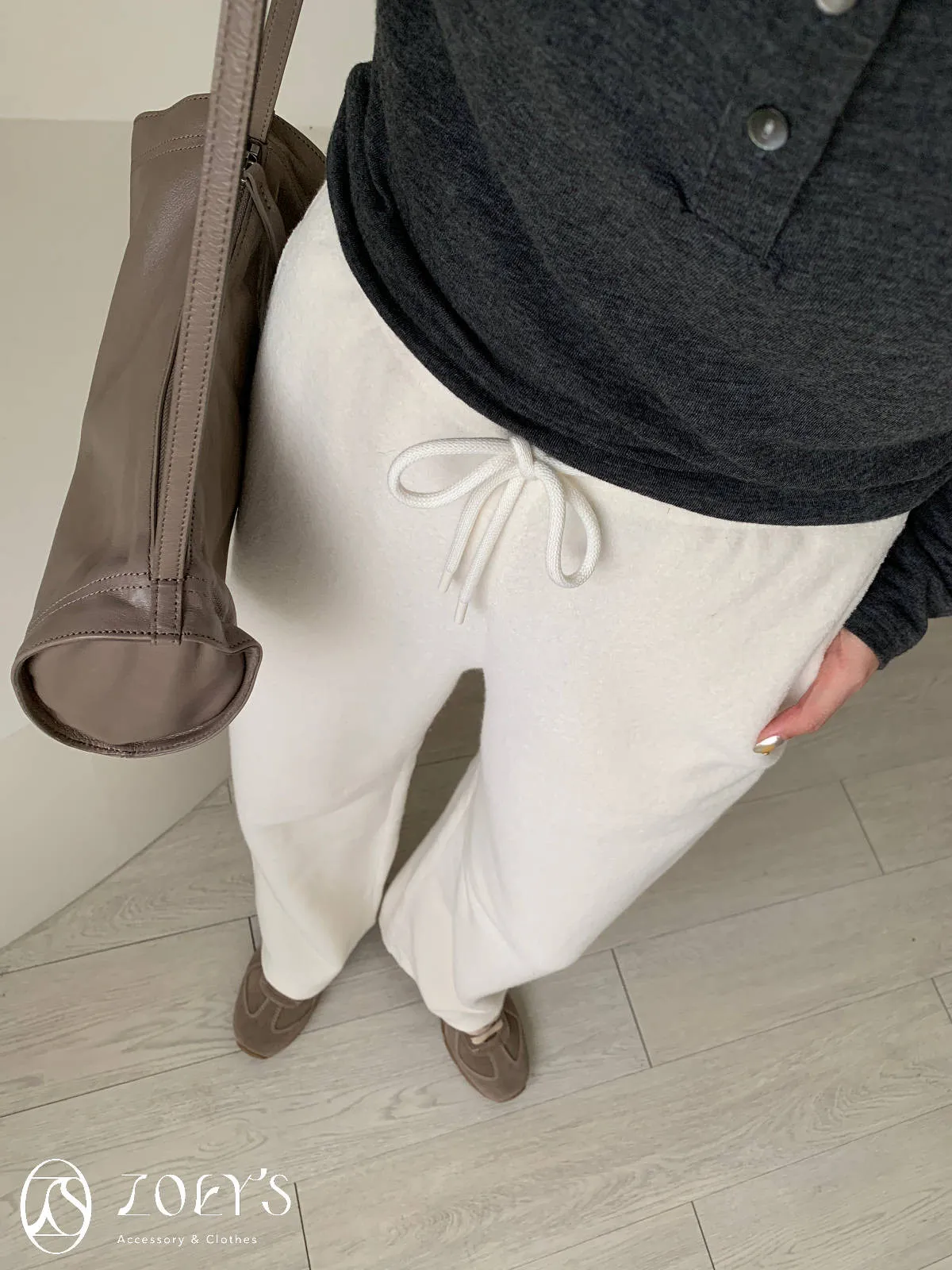 正韓 剪裁線條綁腰羊毛寬褲 卡其/白 S/M