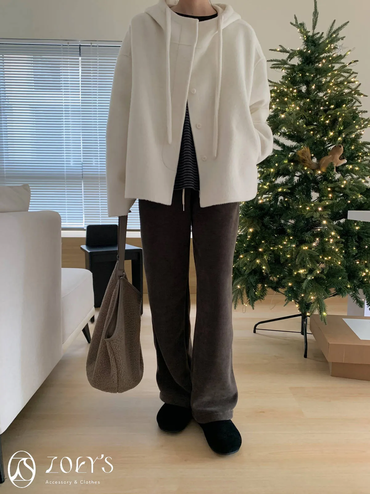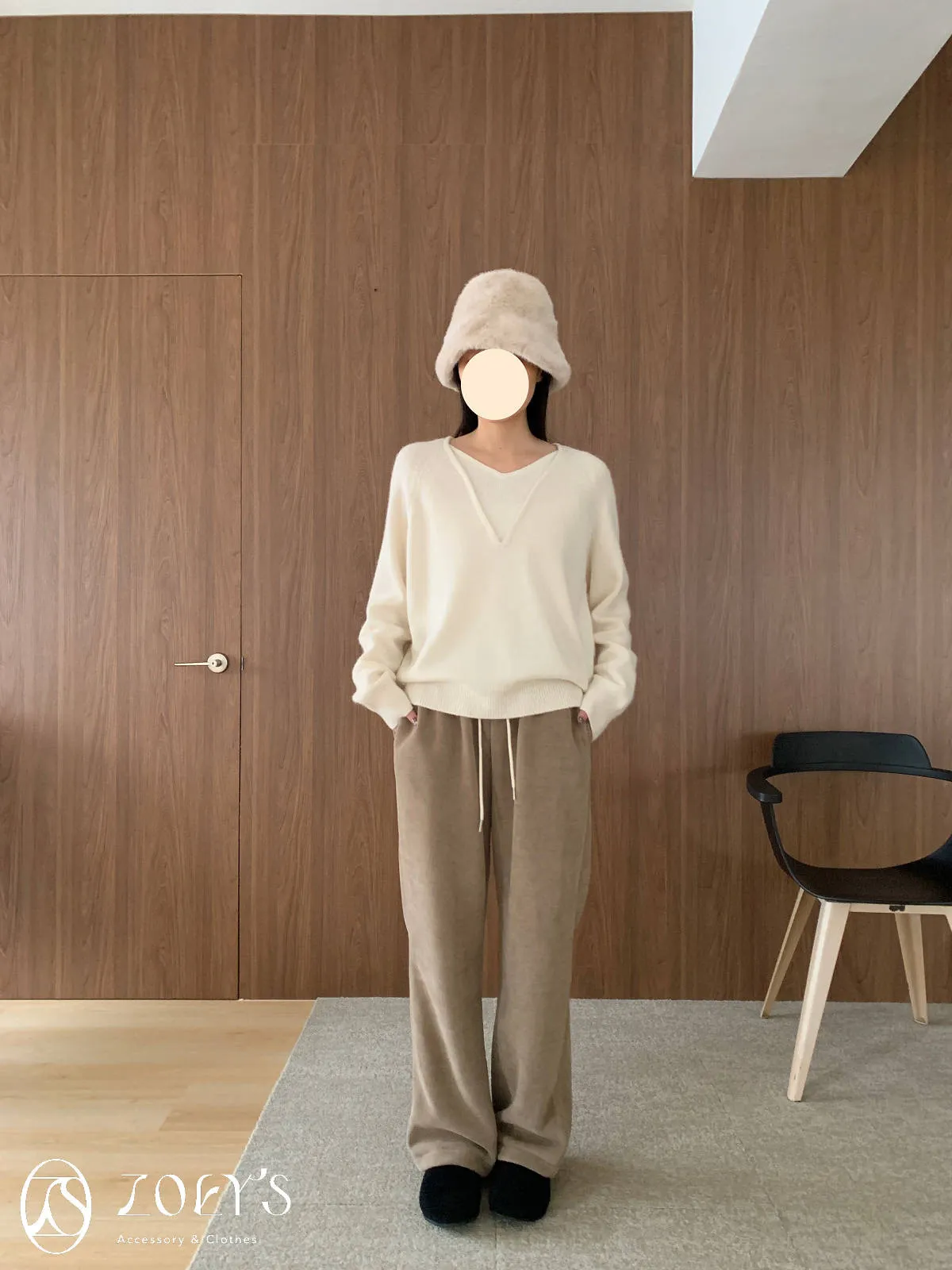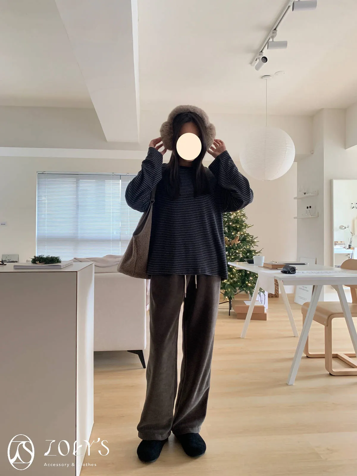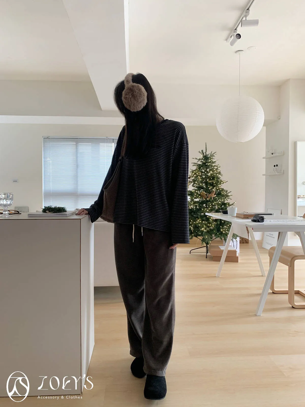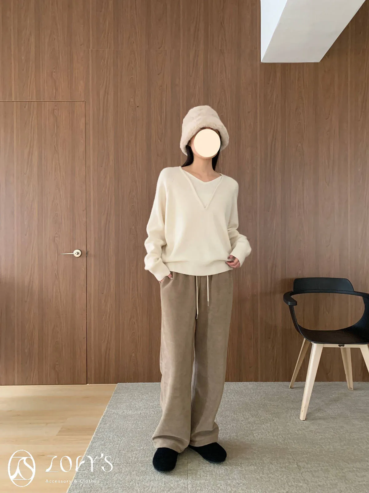 正韓 口袋小皮標療癒厚棉長褲 深灰綠/卡其