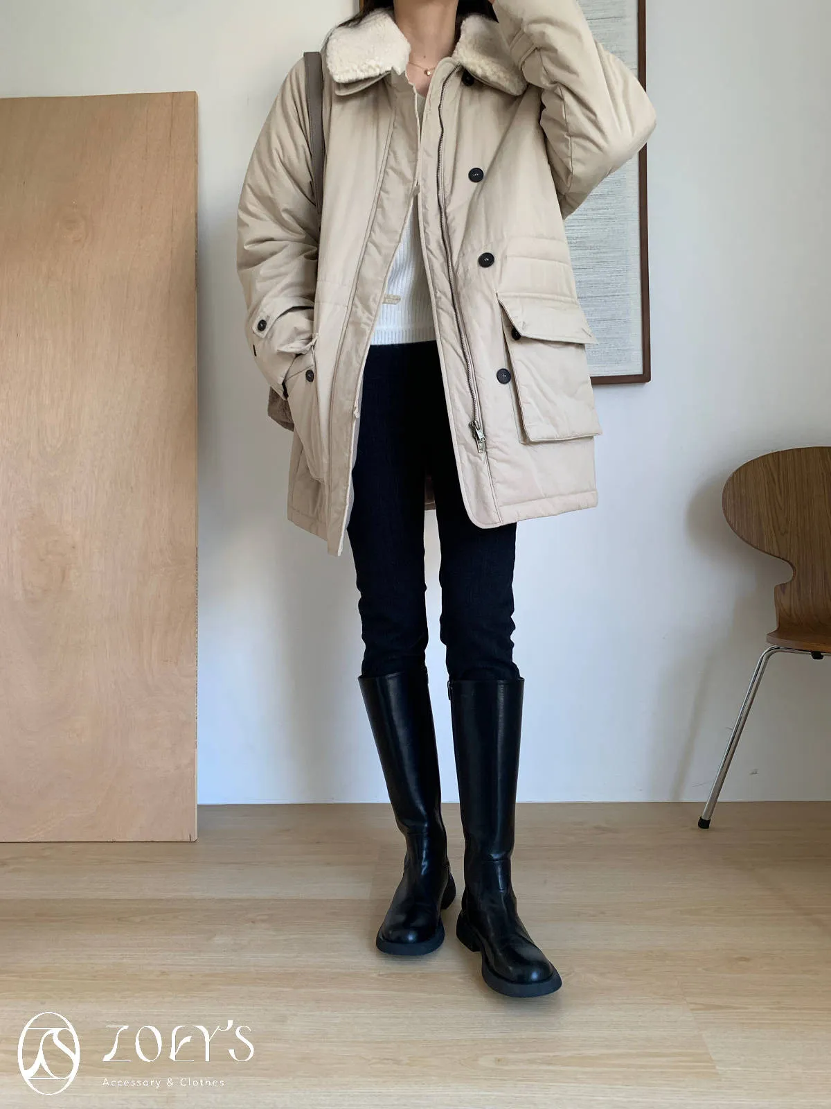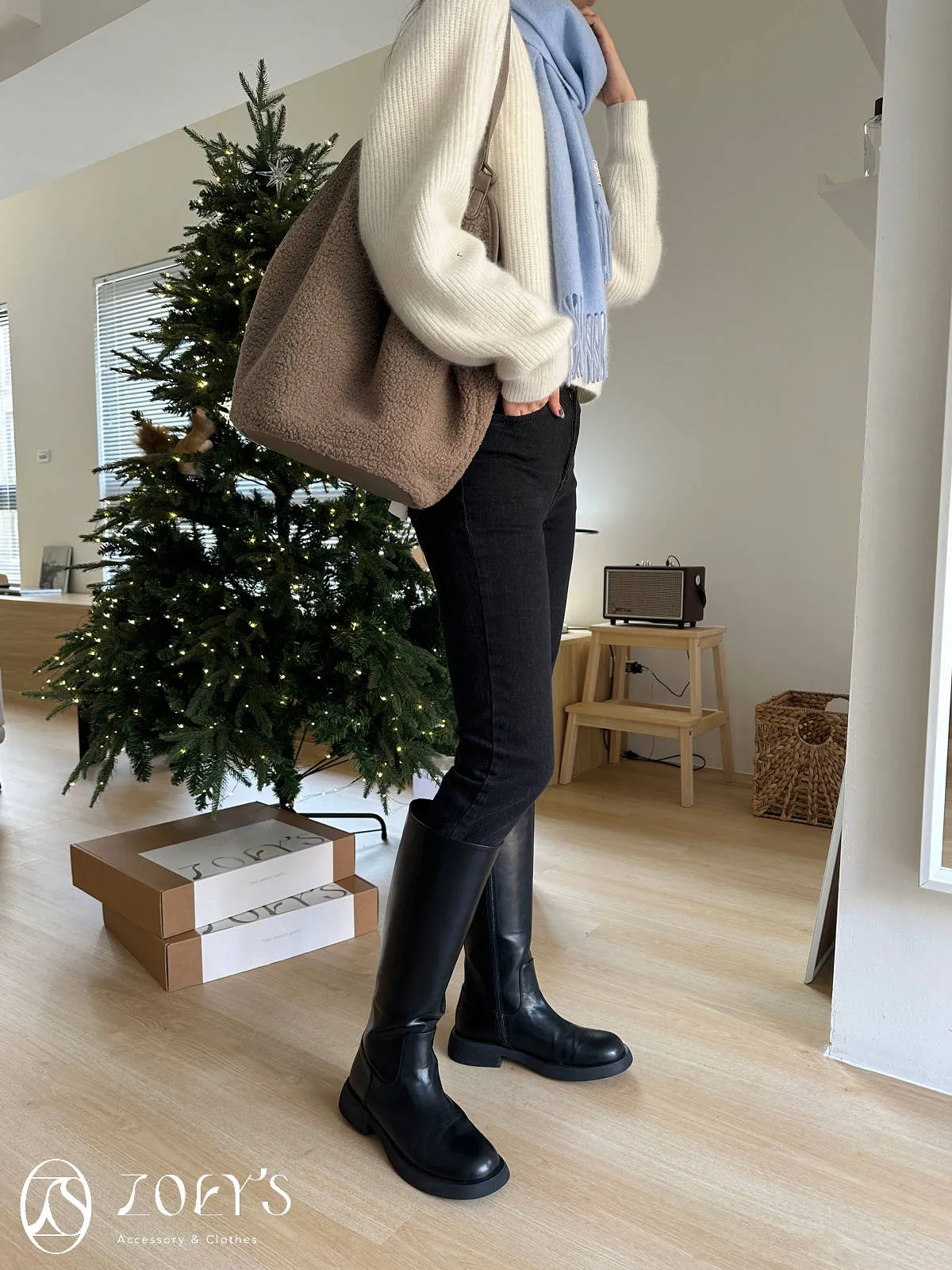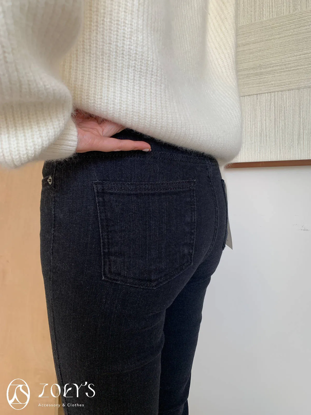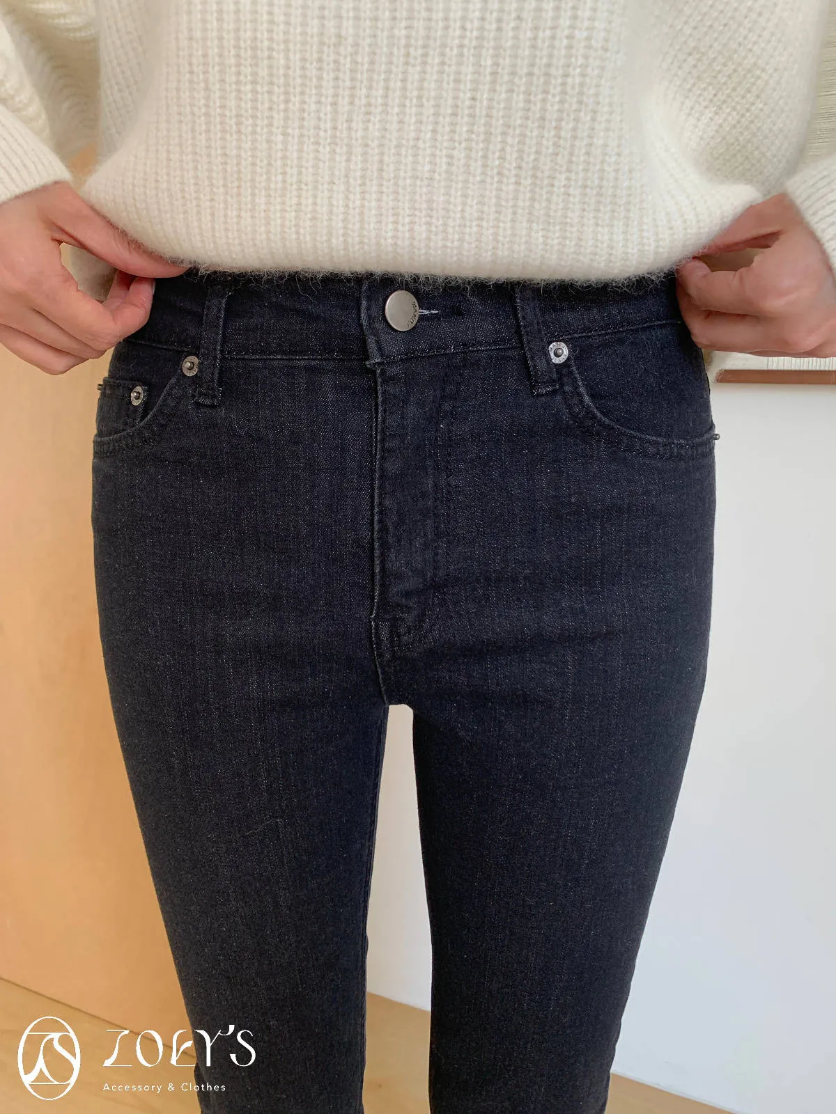 正韓 細直紋感內短絨黑色牛仔緊身褲 S/M/L