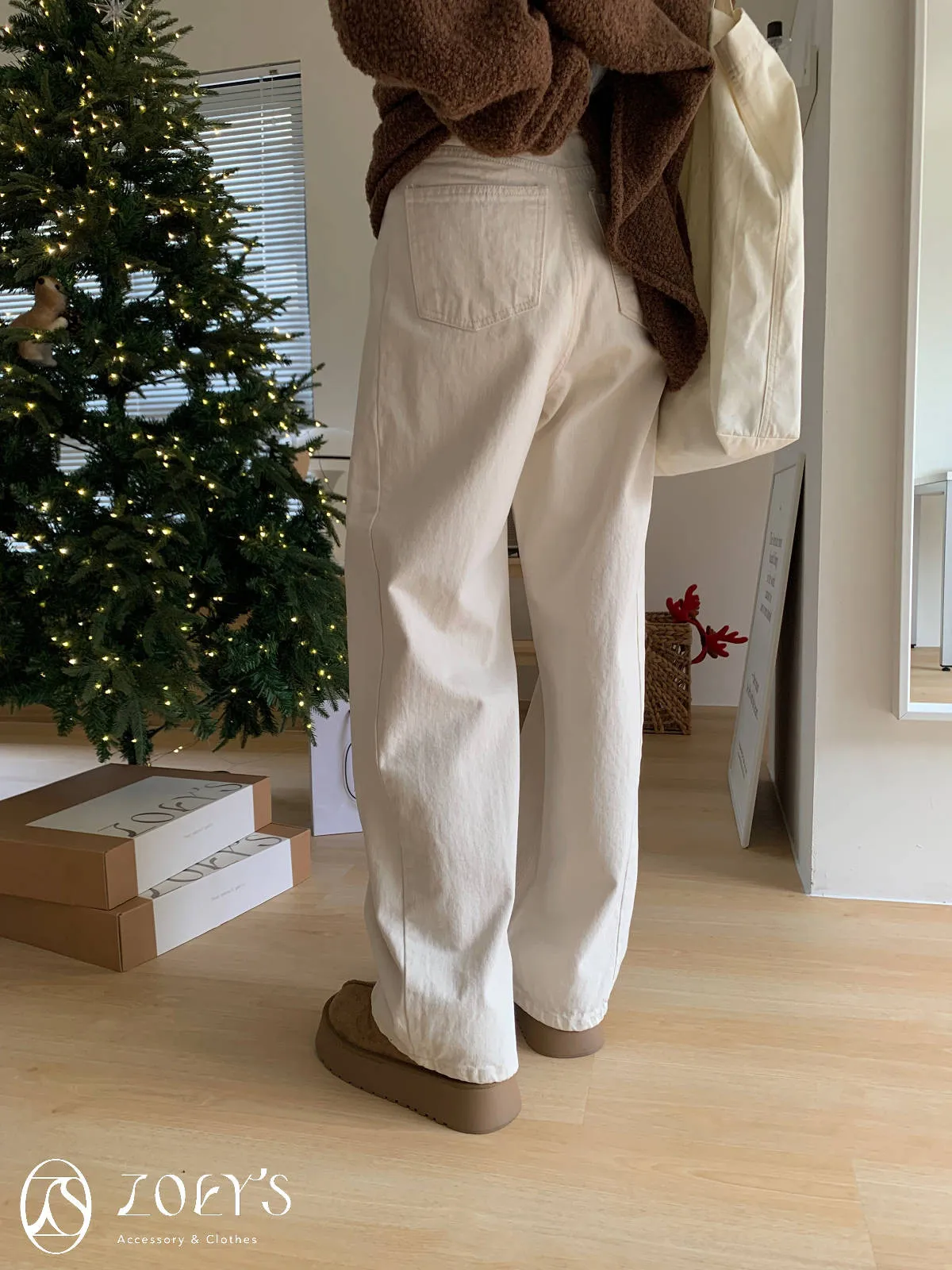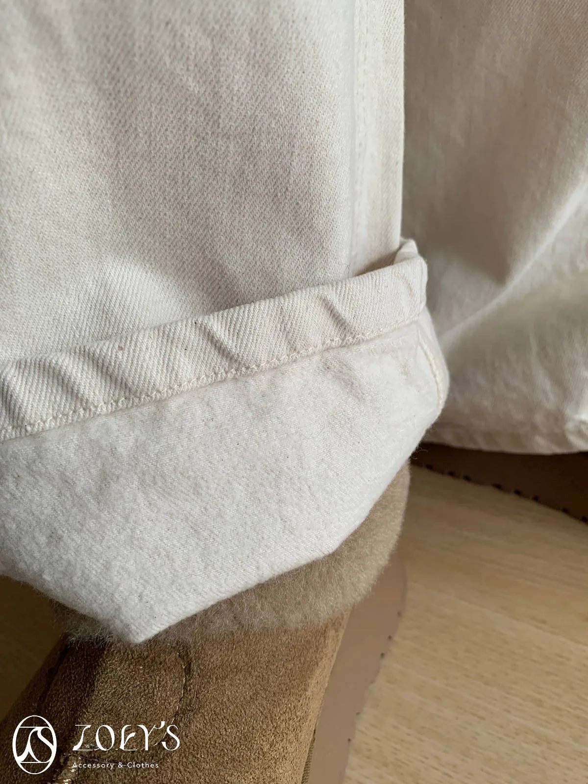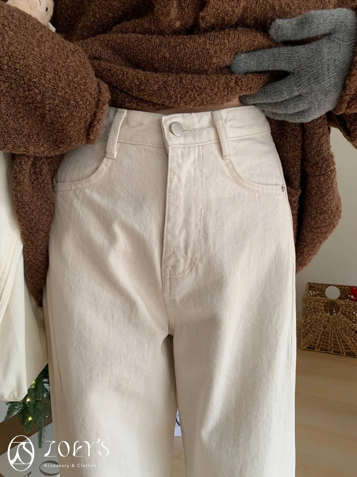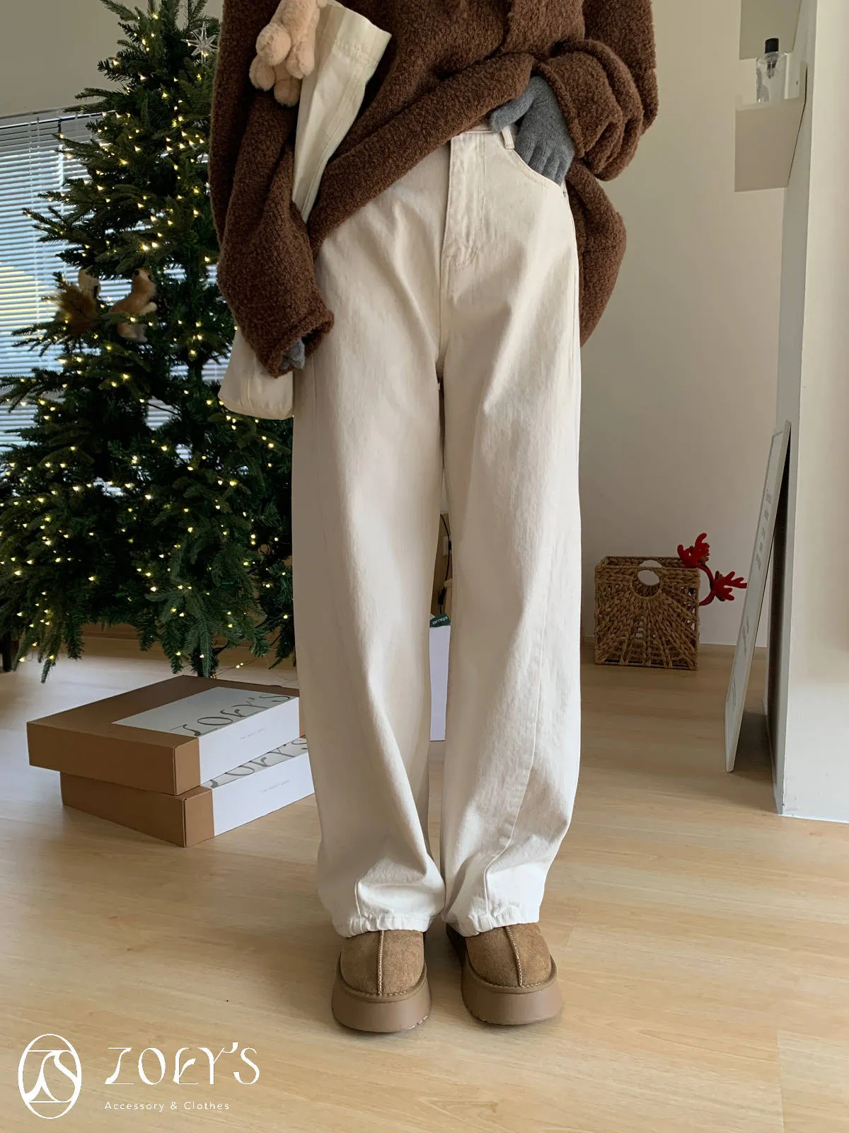 正韓 奶油白內短絨直筒小寬褲 S/M/L