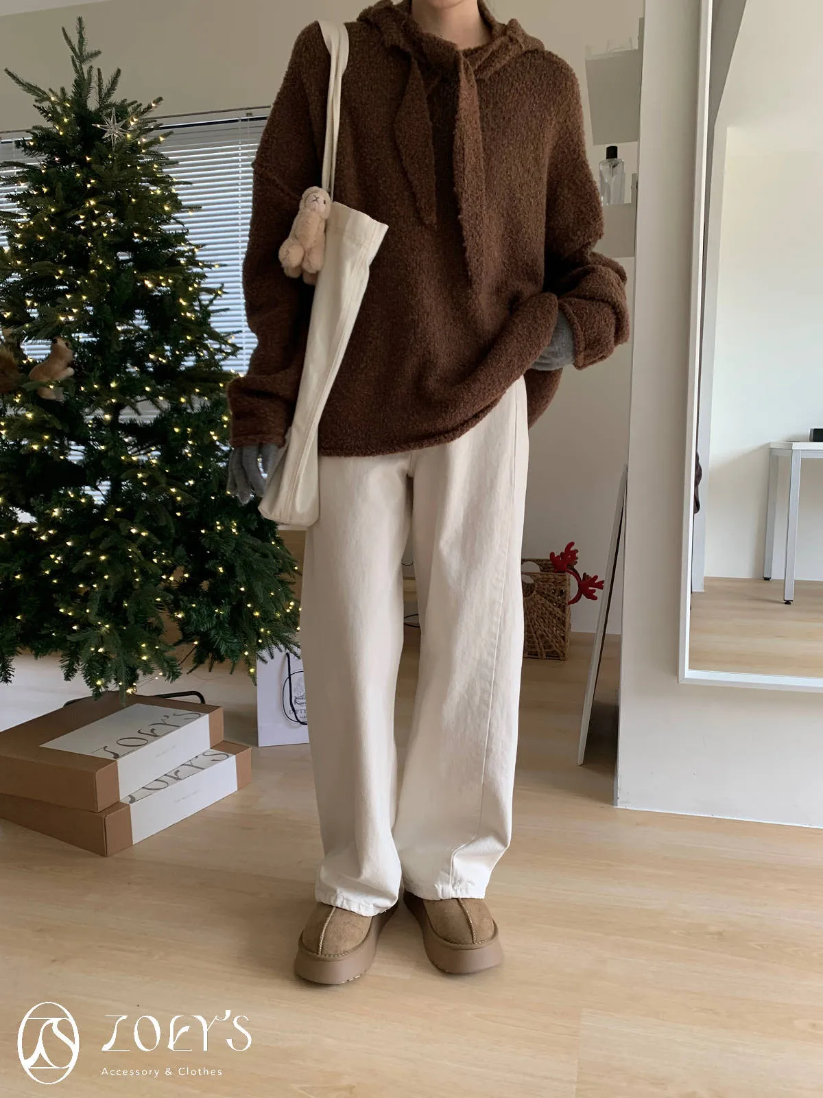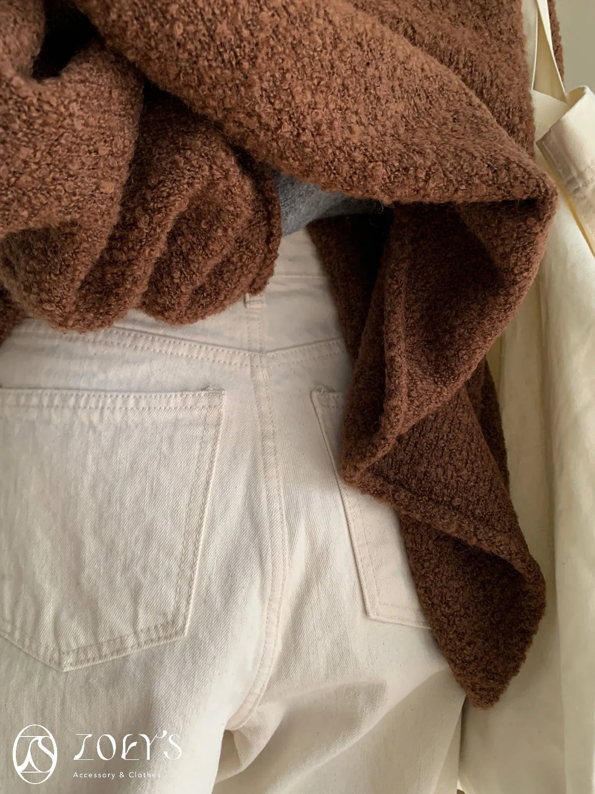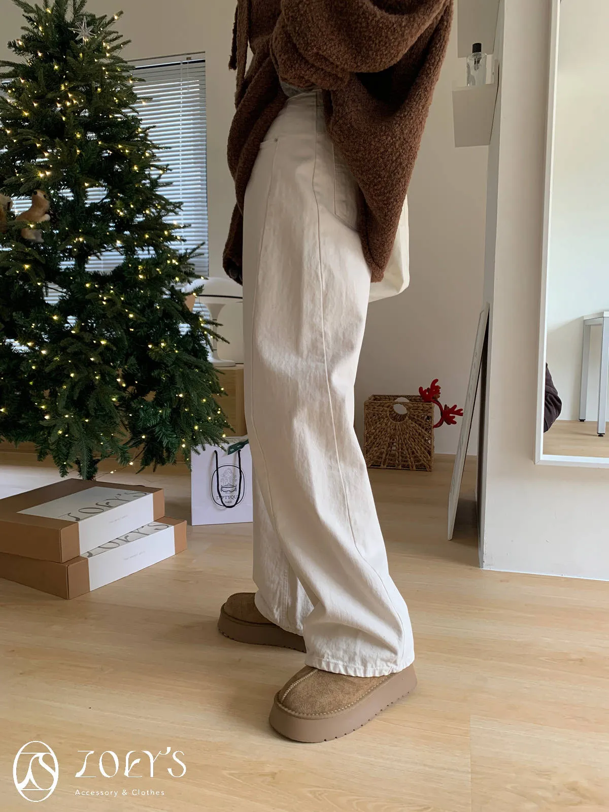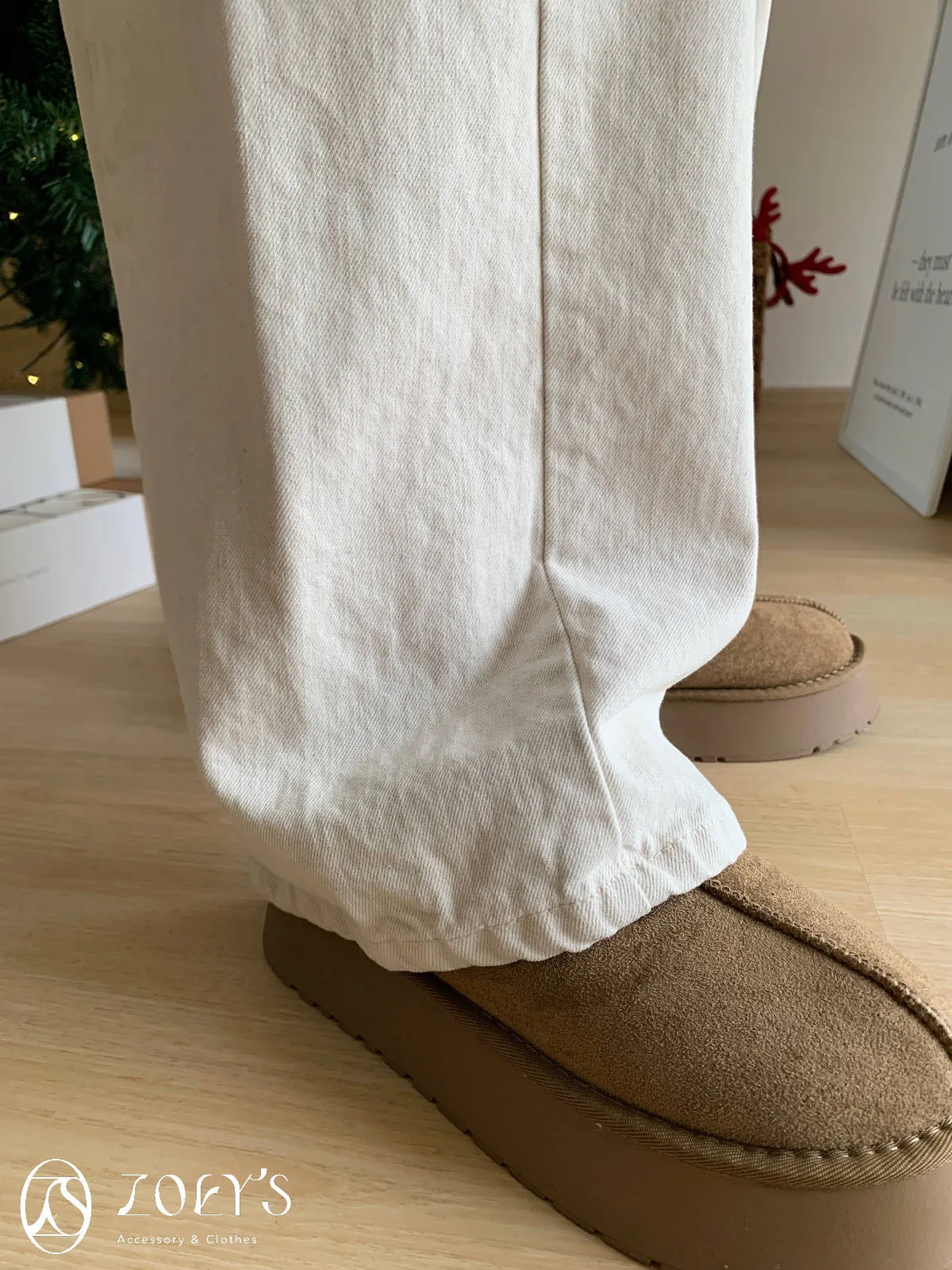 正韓 奶油白內短絨直筒小寬褲 S/M/L