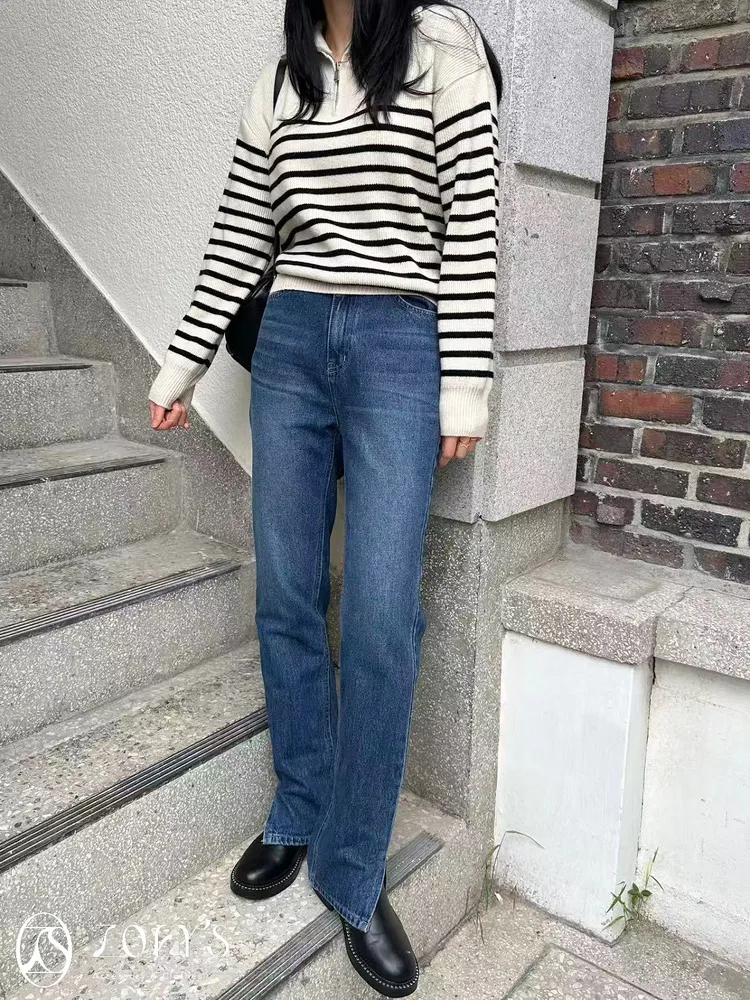 正韓 褲腳開衩設計修身刷色牛仔褲 SALE現貨S/M
