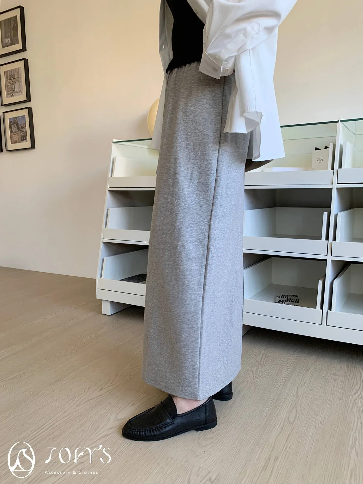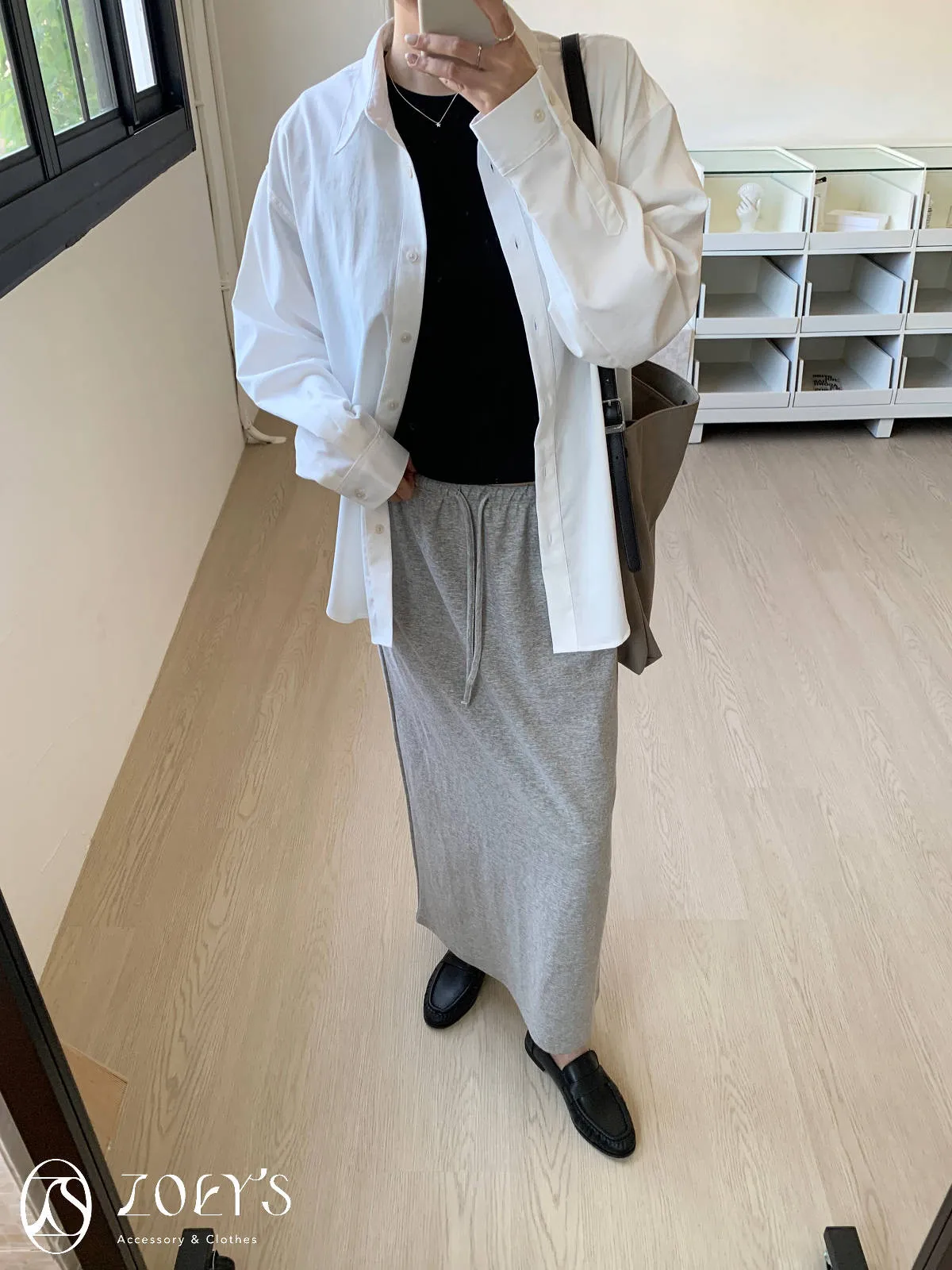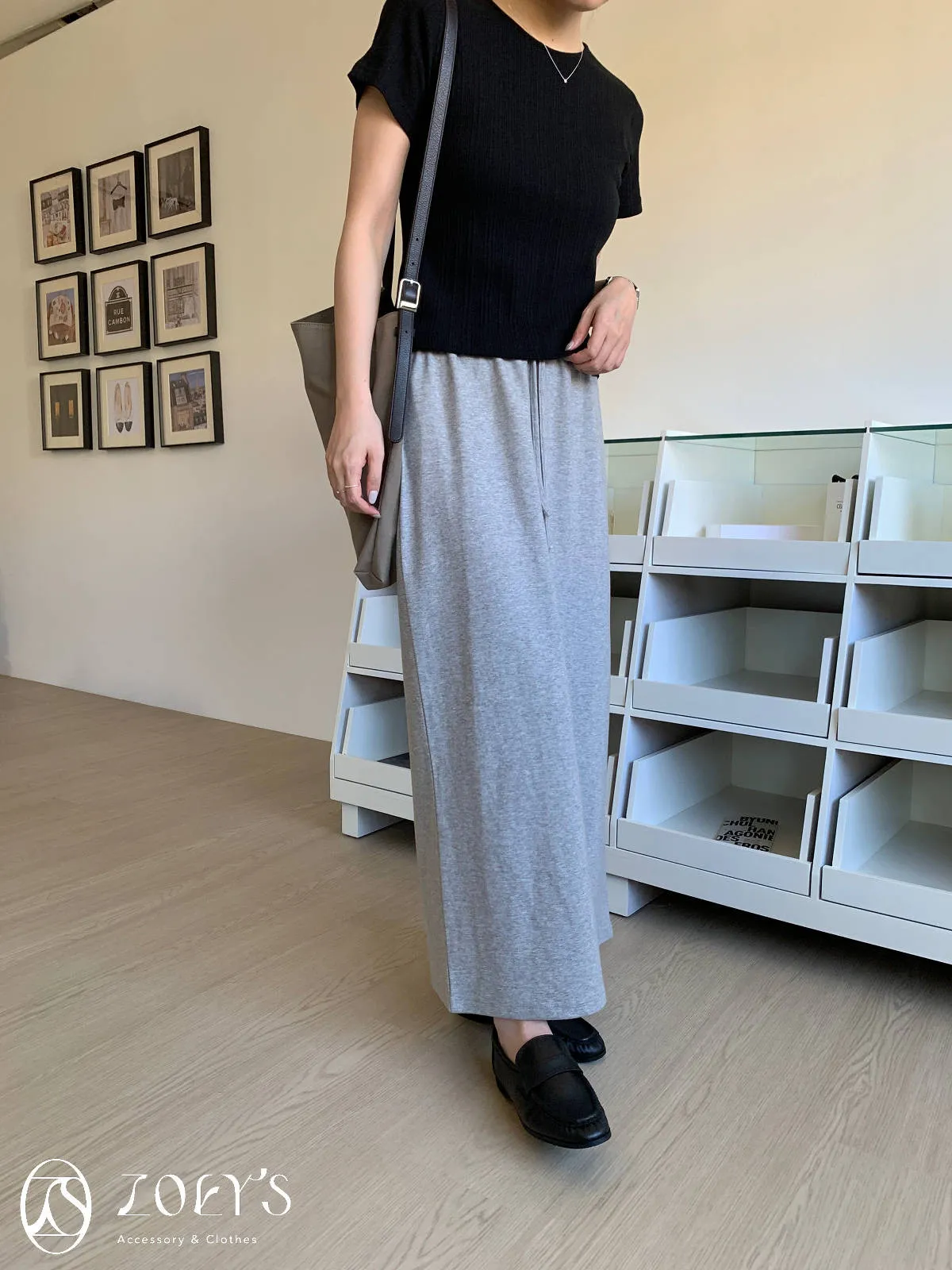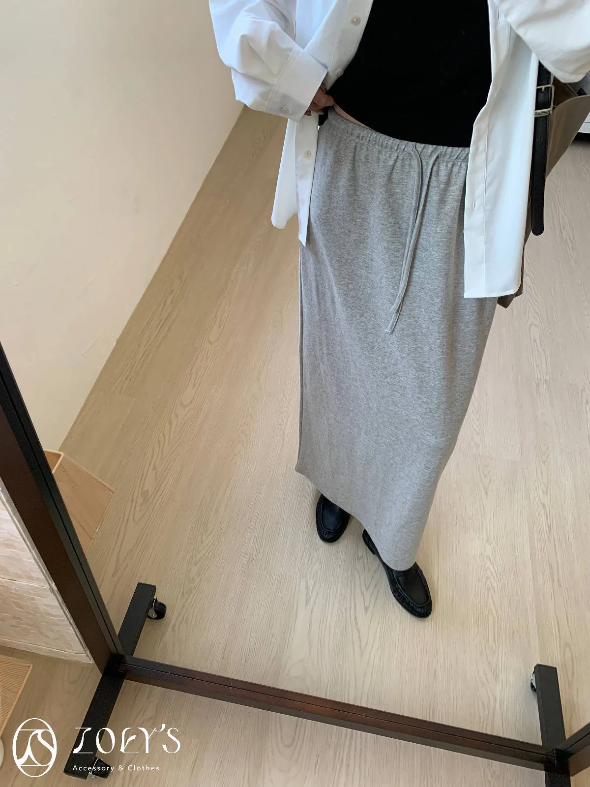 正韓 顯瘦柔軟開衩棉長裙 黑/白/深灰/淺灰