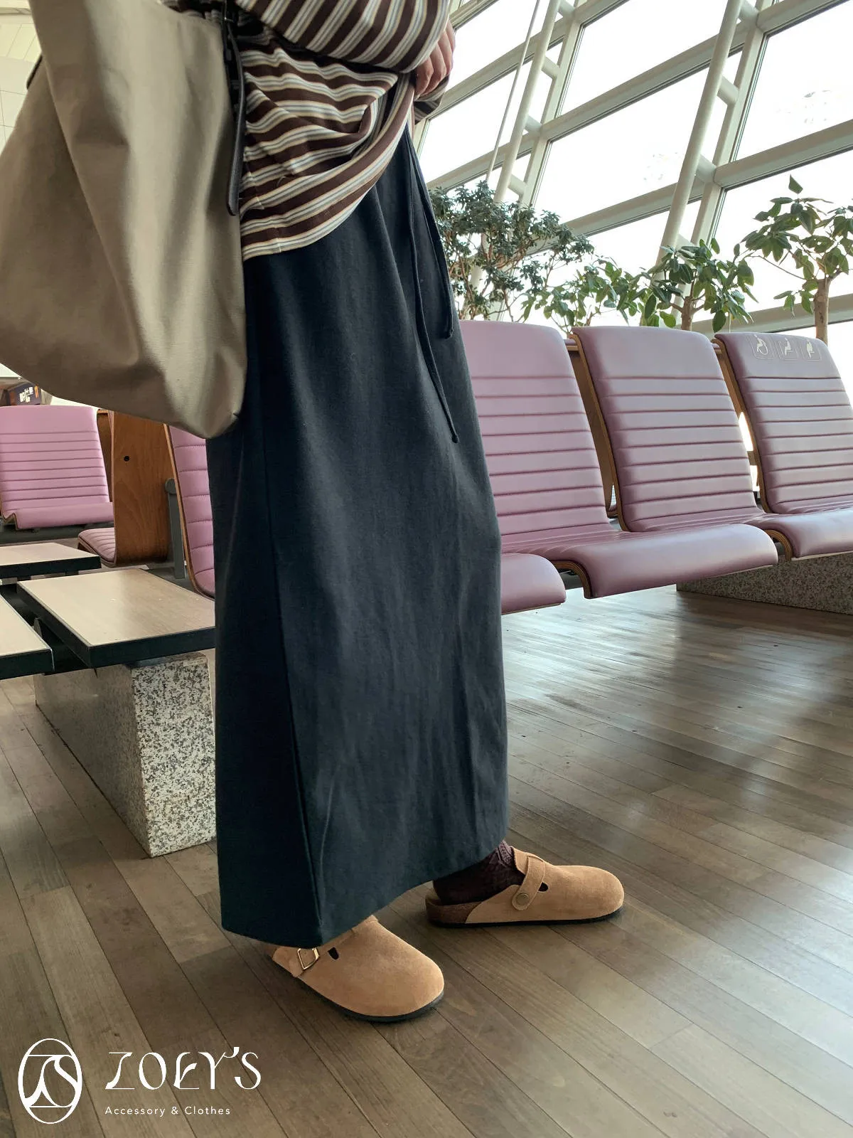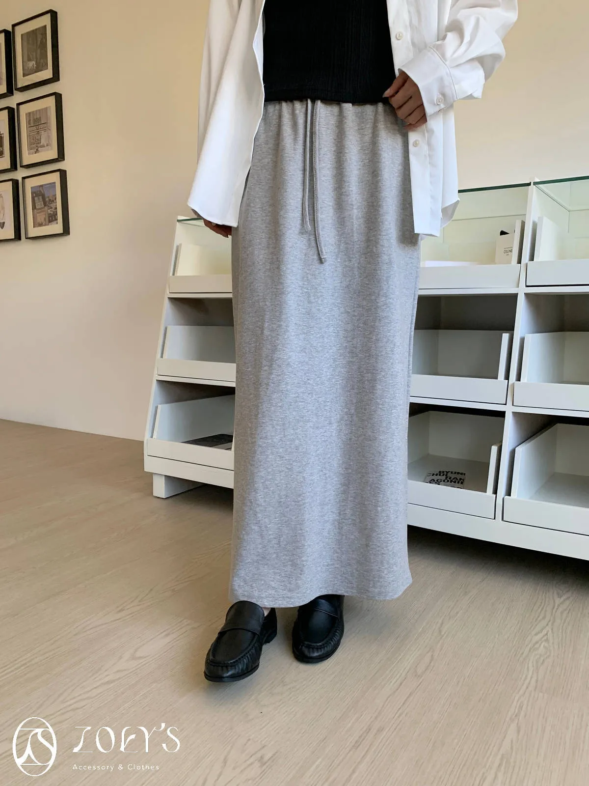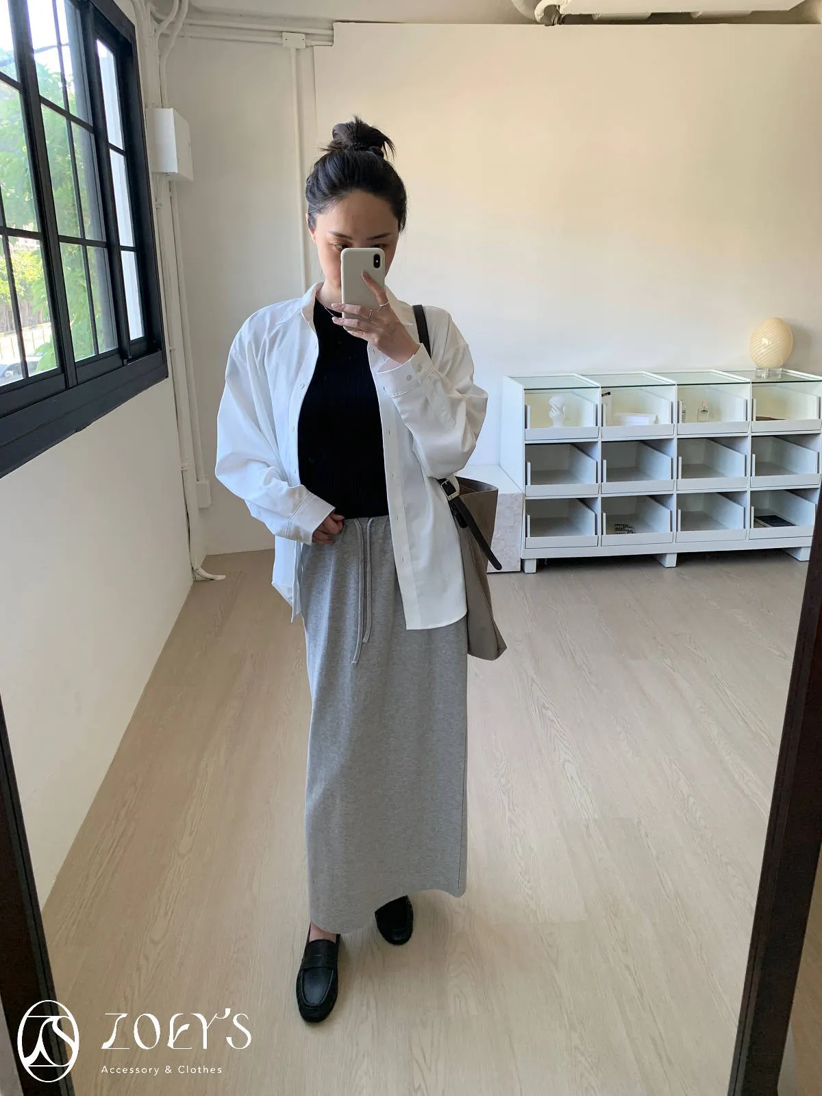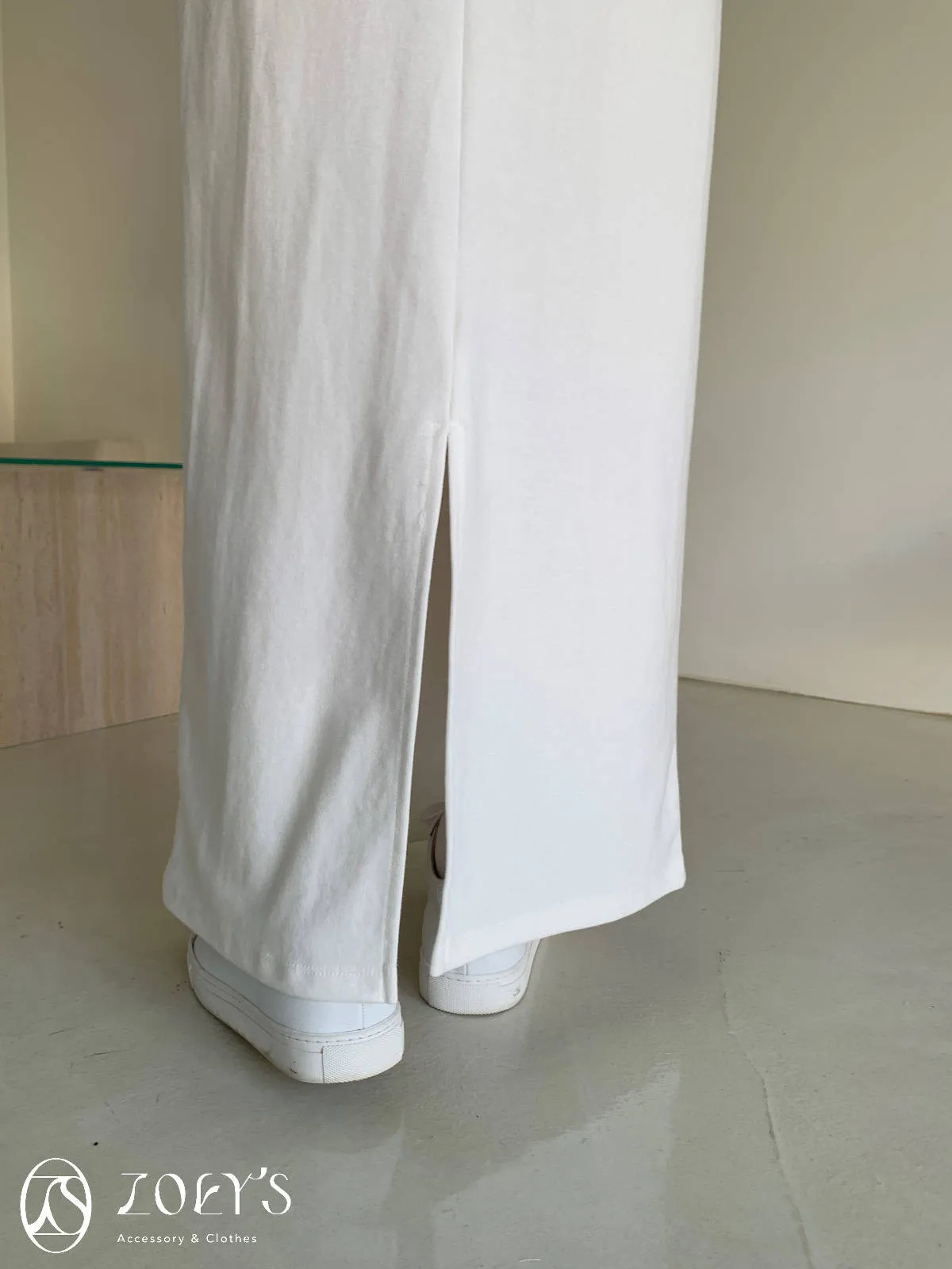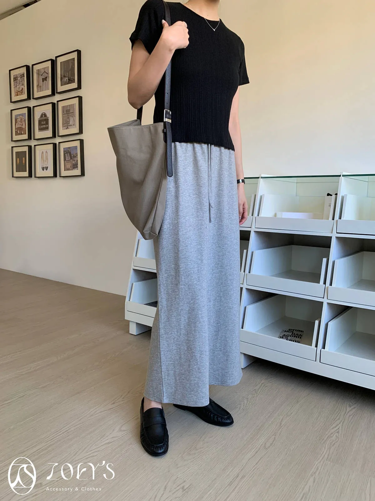 正韓 顯瘦柔軟開衩棉長裙 黑/白/深灰/淺灰
