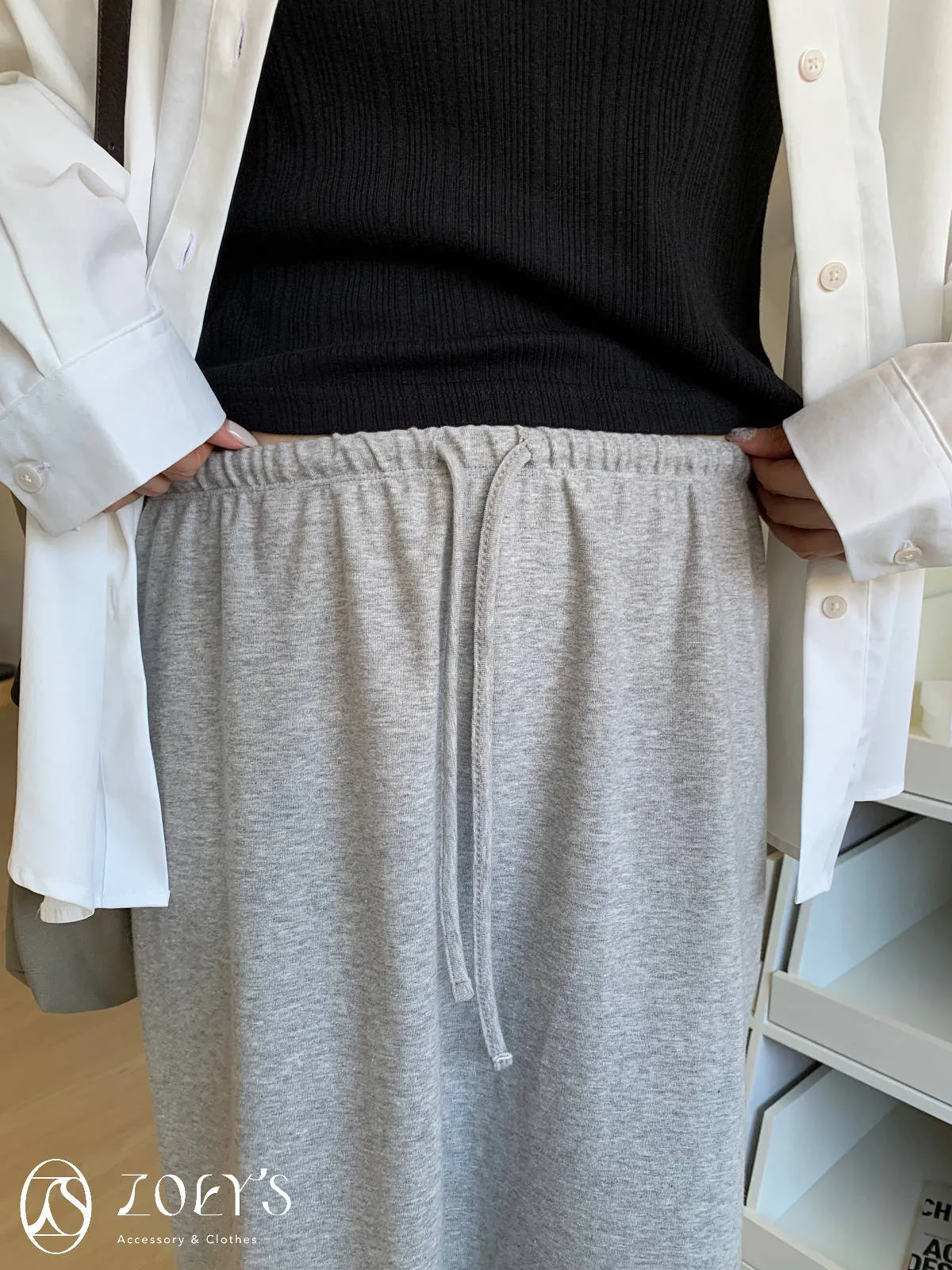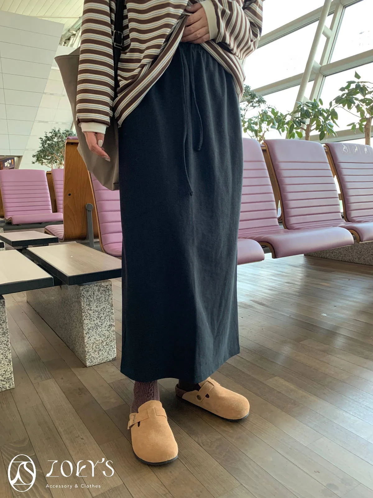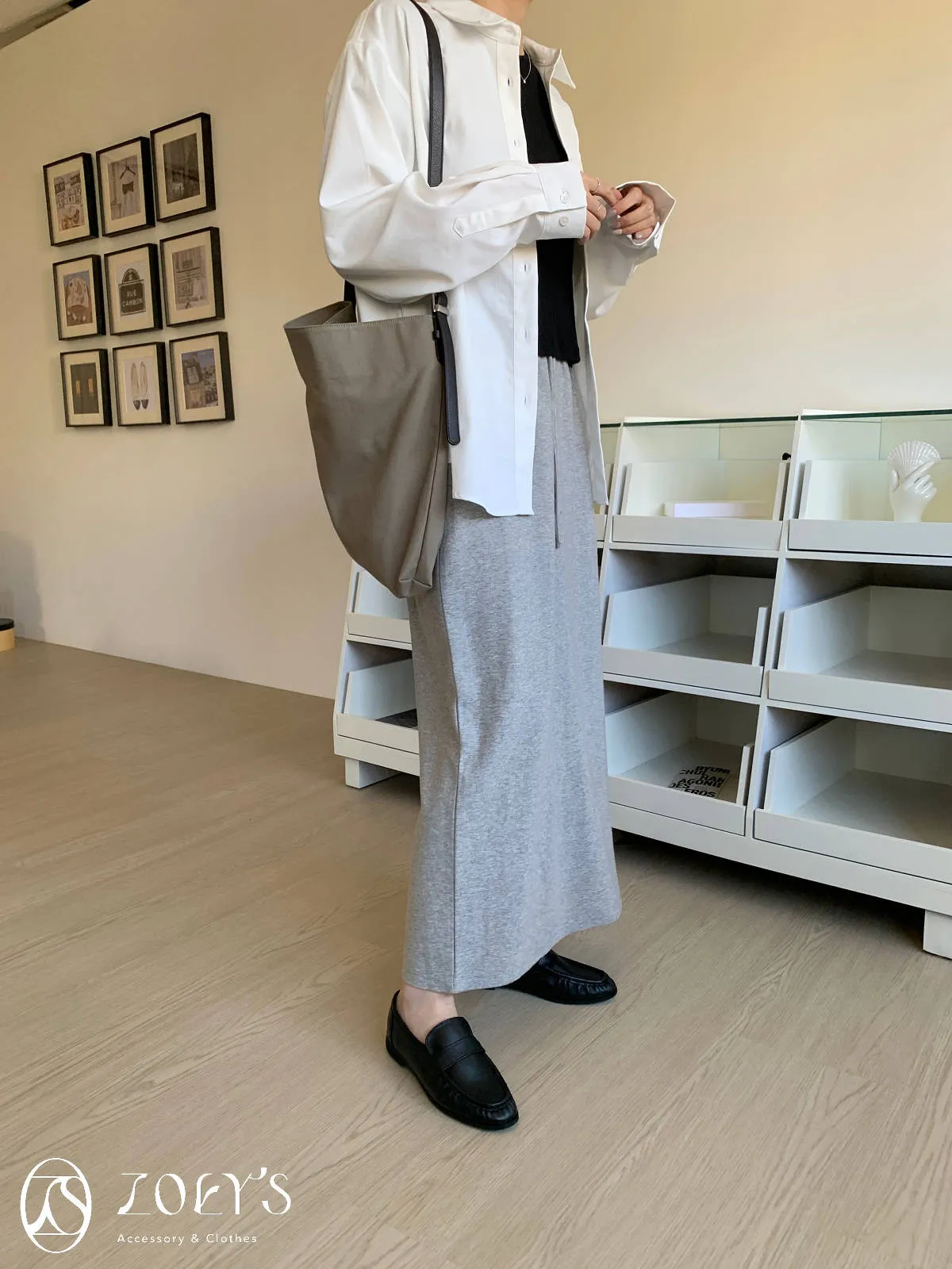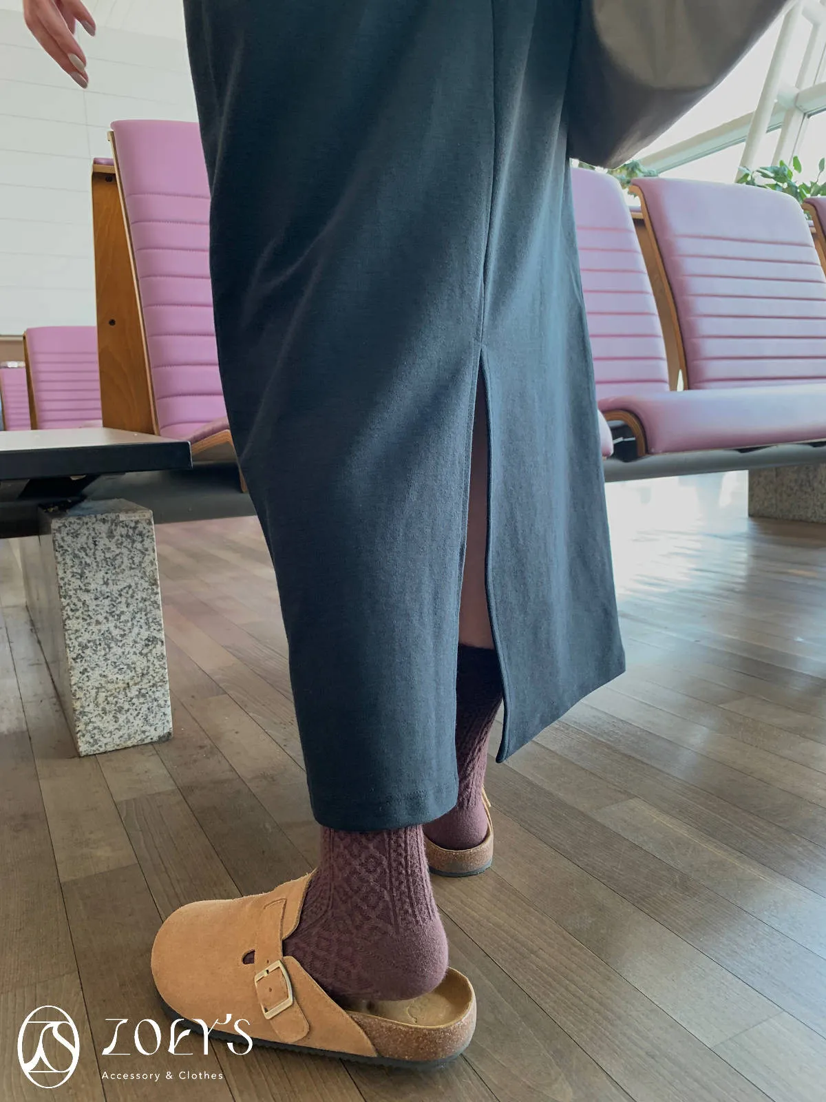 正韓 顯瘦柔軟開衩棉長裙 黑/白/深灰/淺灰