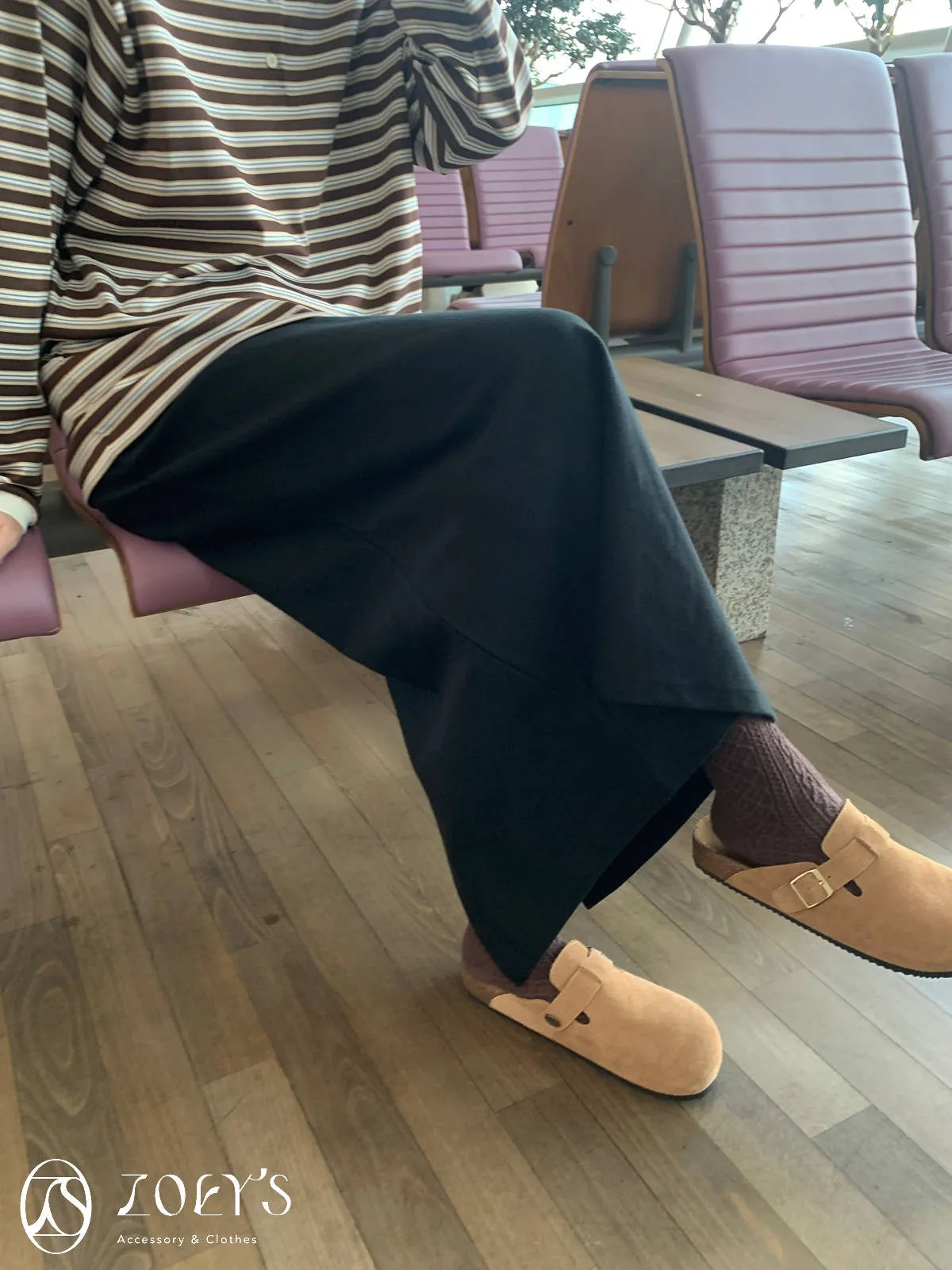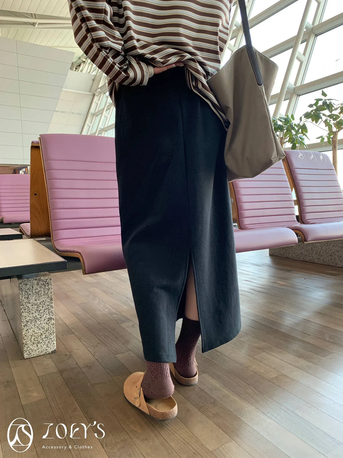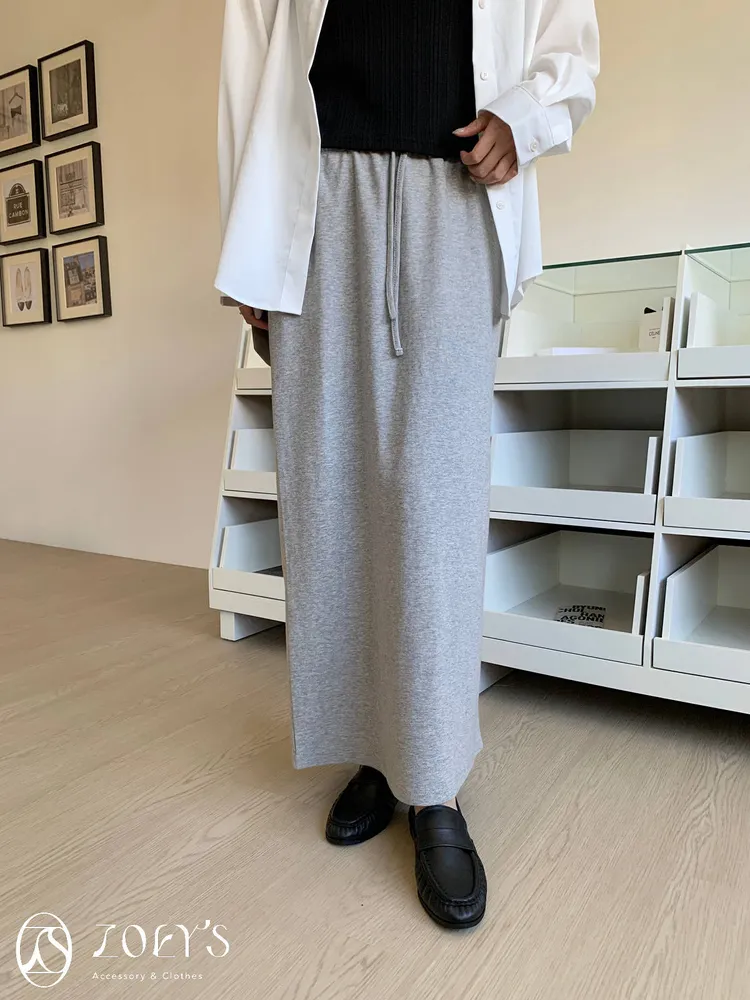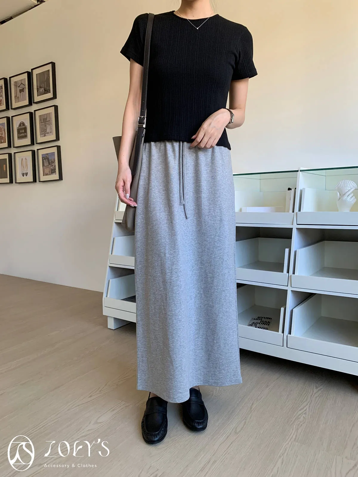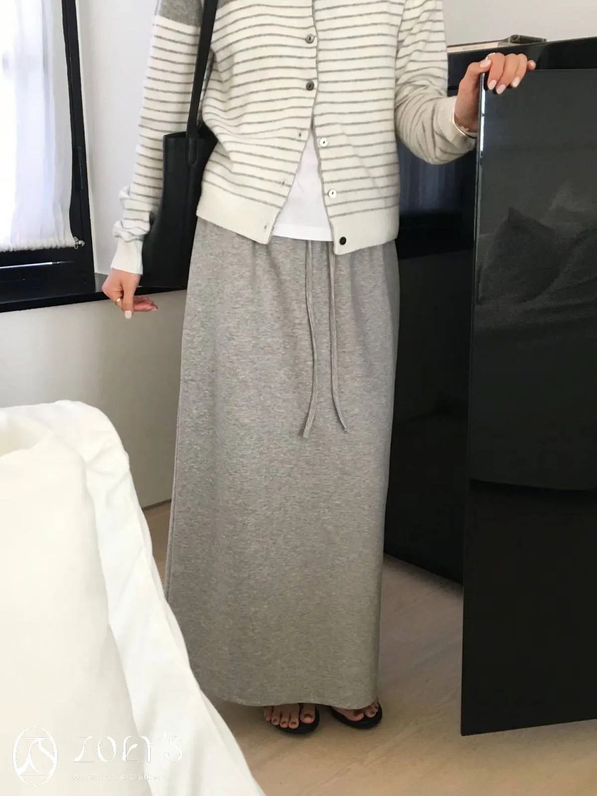 正韓 顯瘦柔軟開衩棉長裙 黑/白/深灰/淺灰