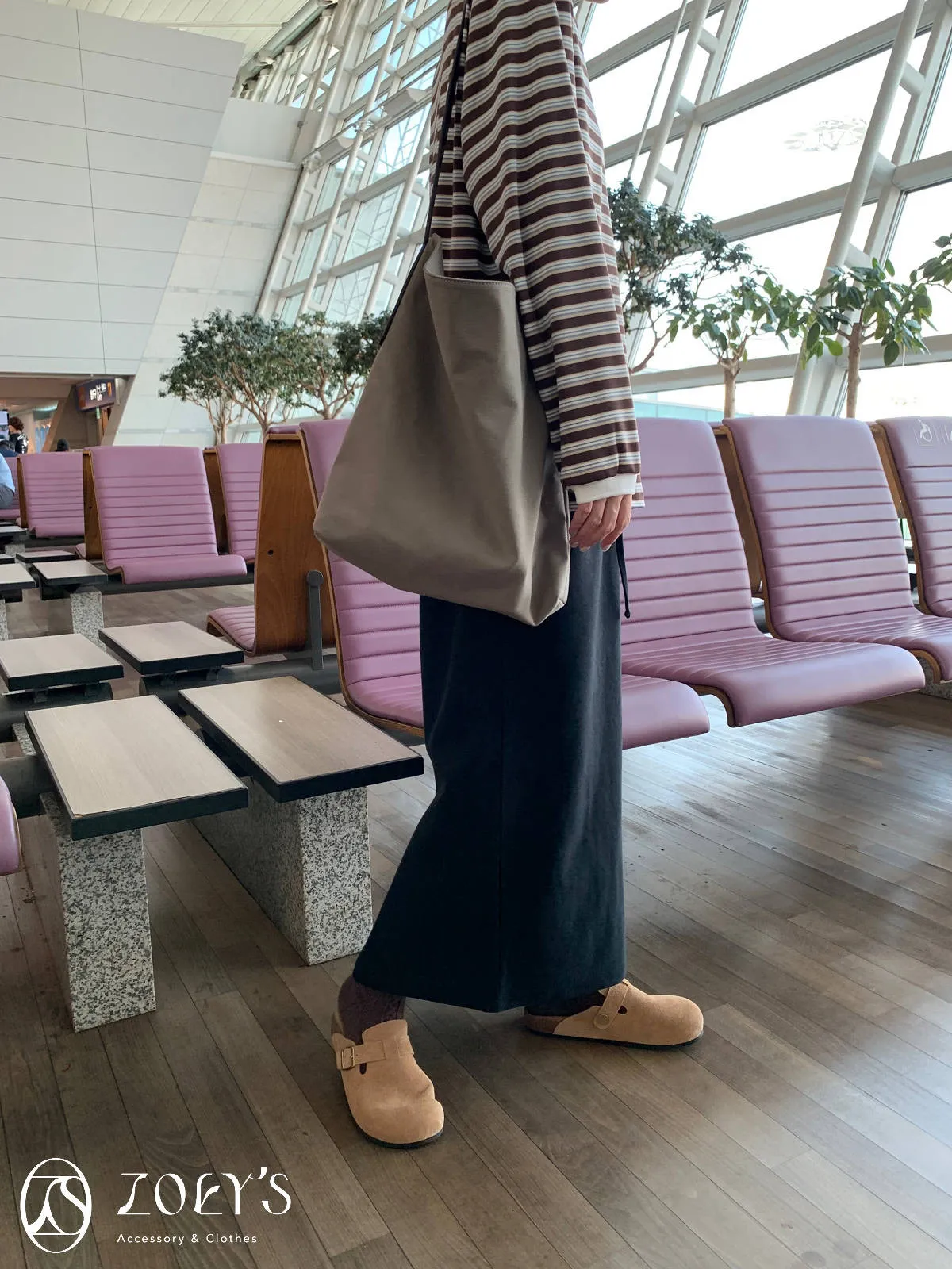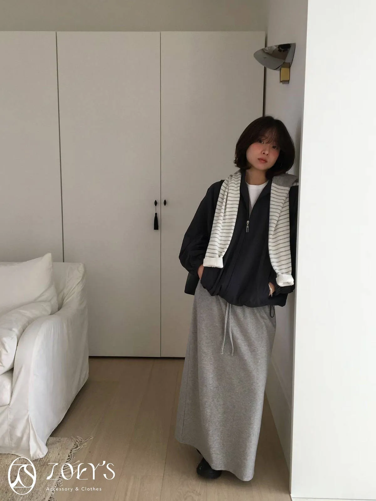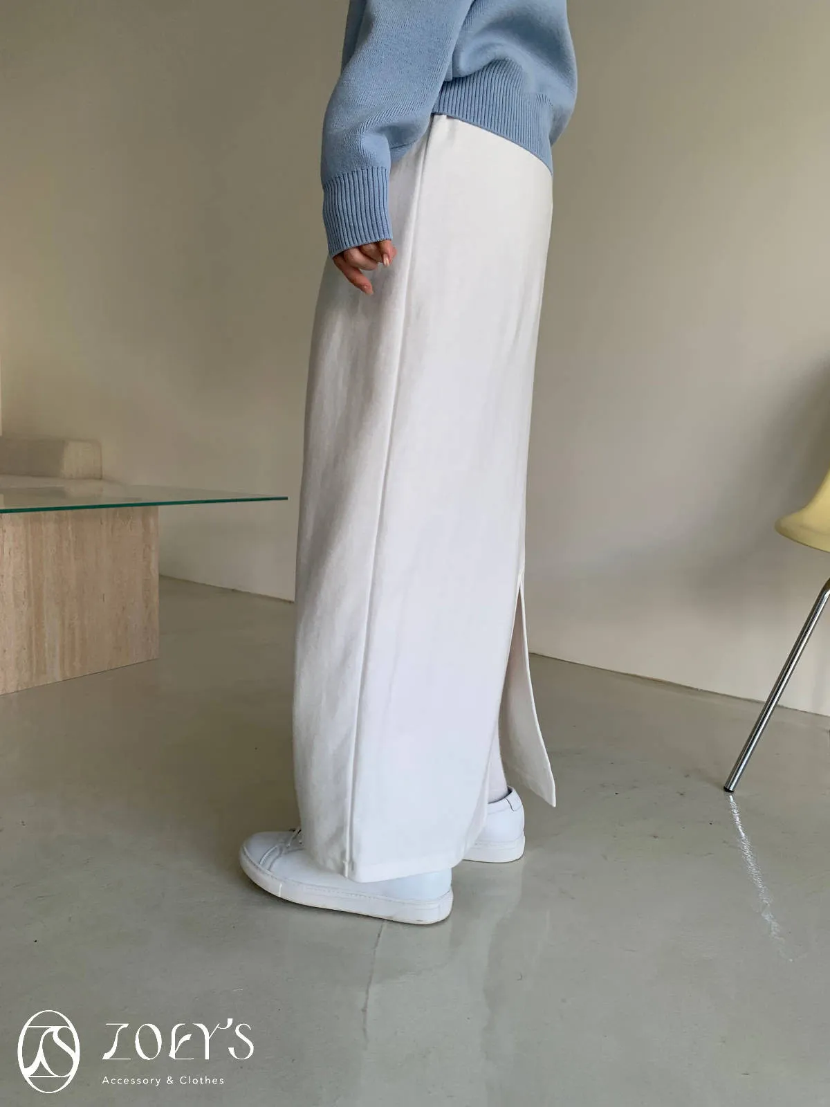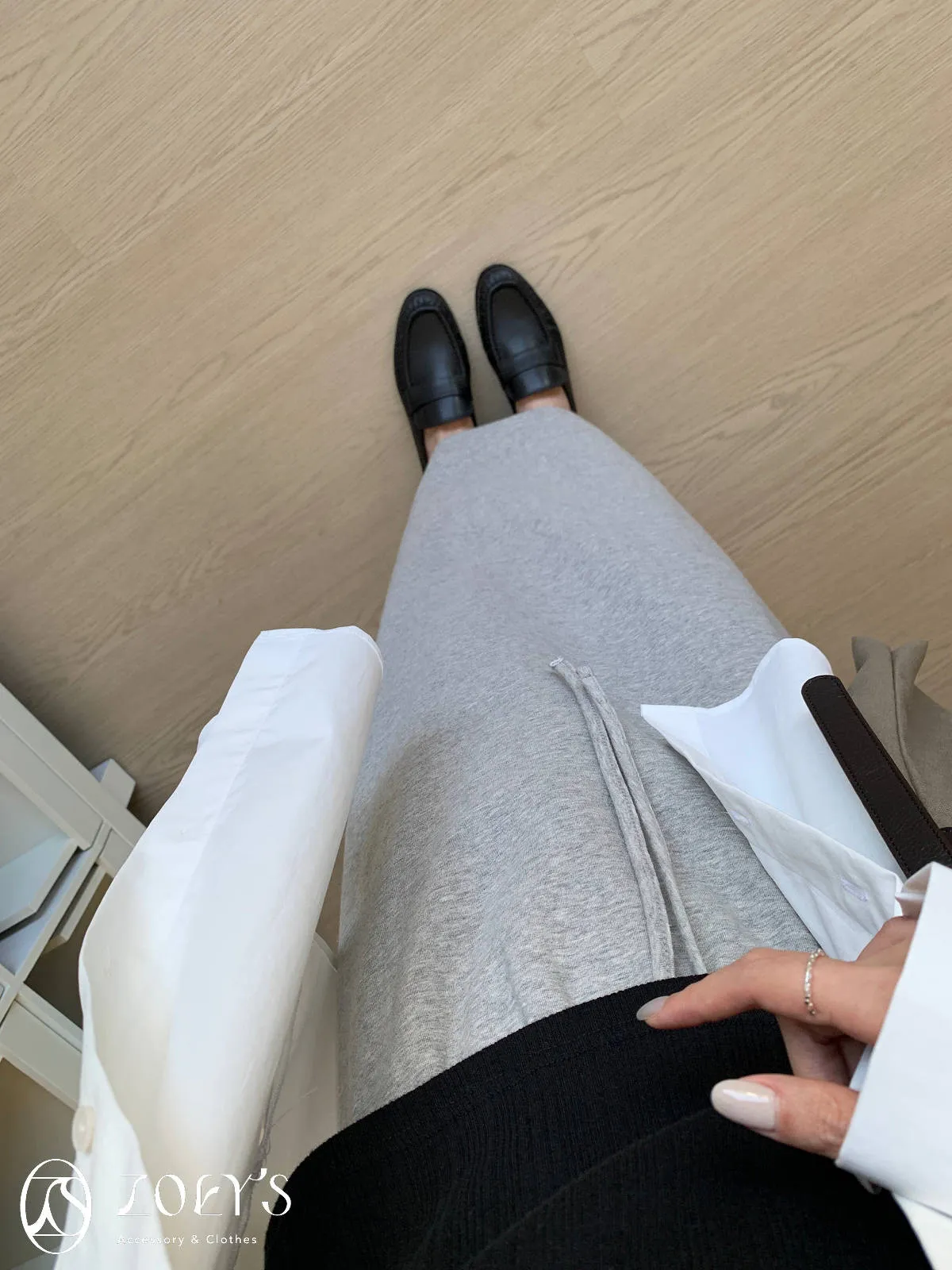 正韓 顯瘦柔軟開衩棉長裙 黑/白/深灰/淺灰