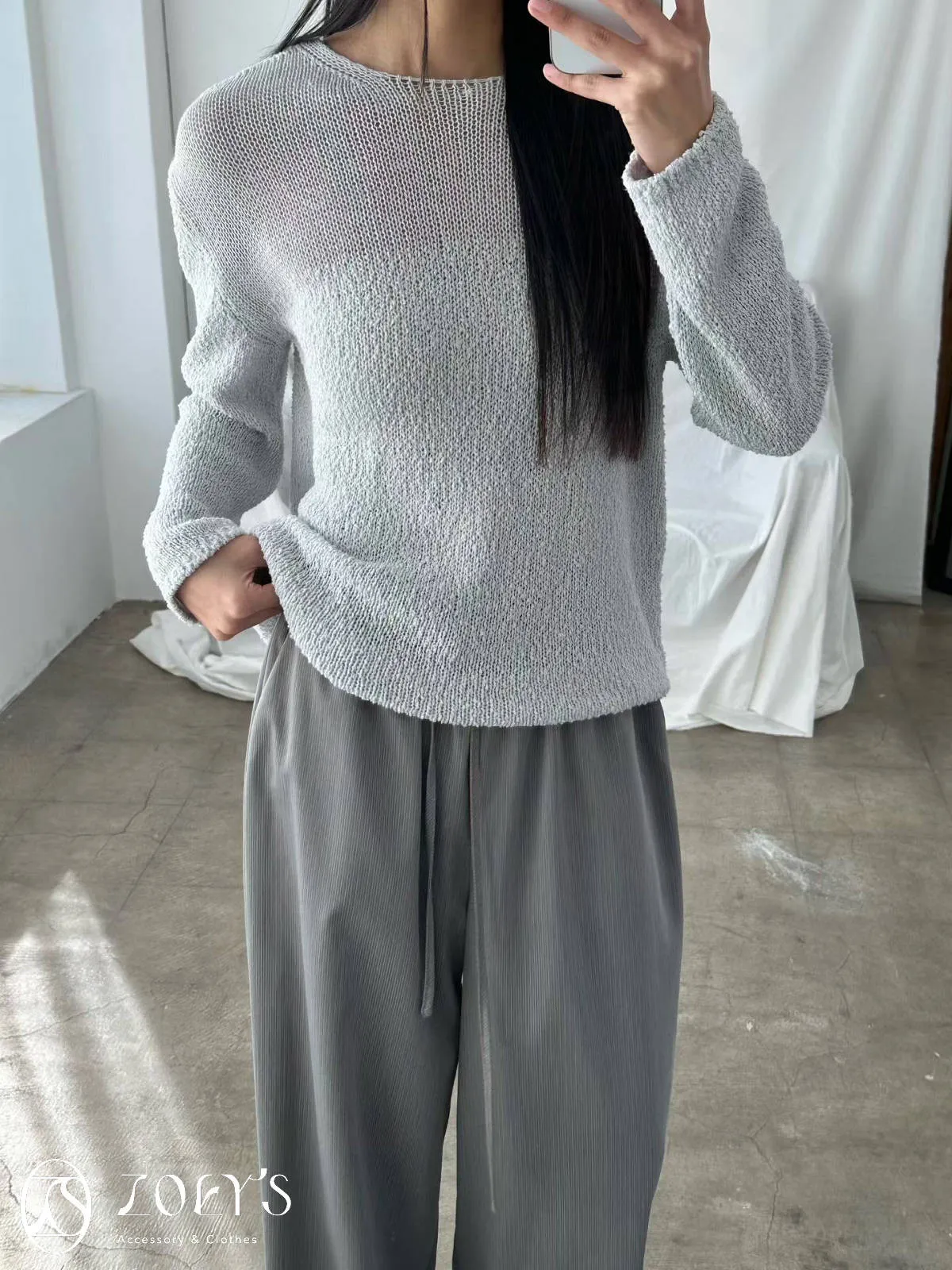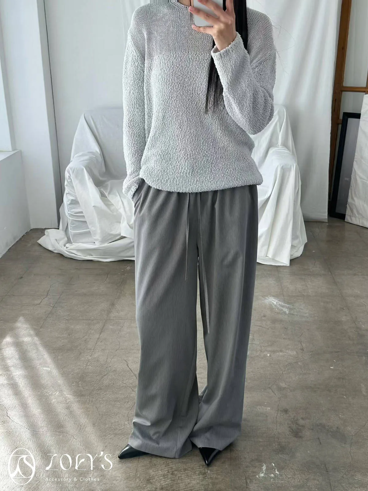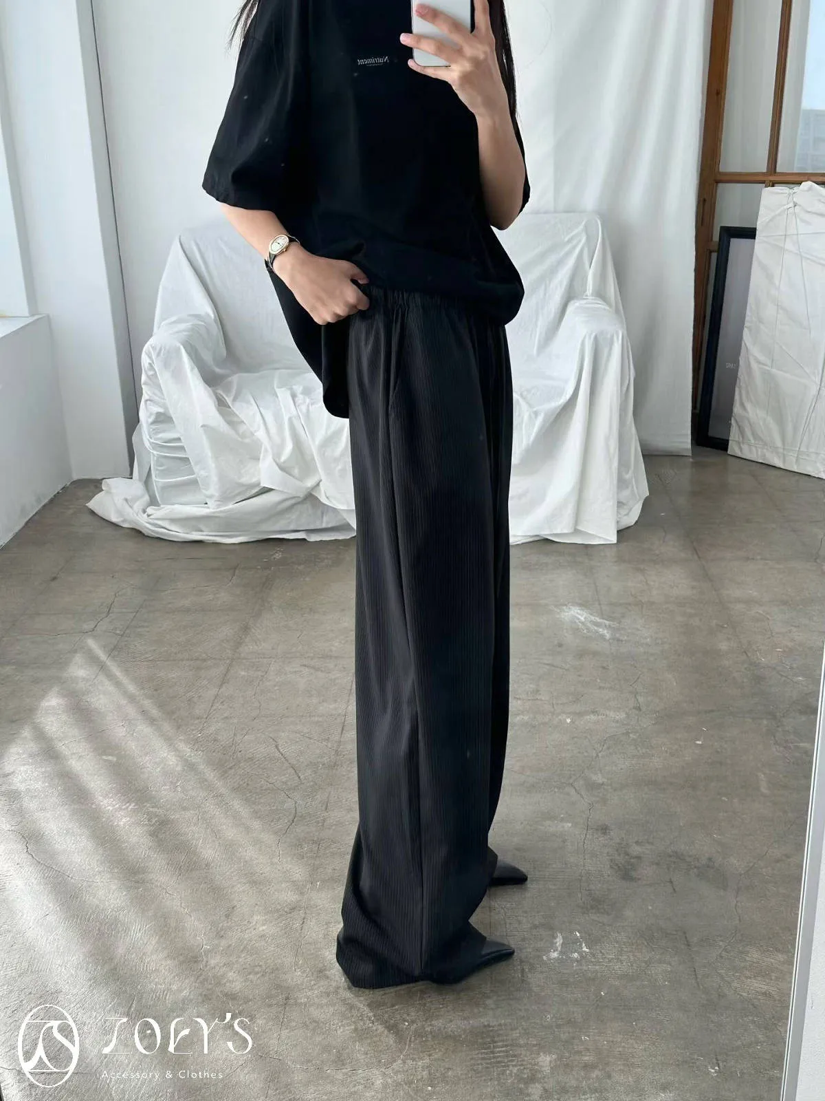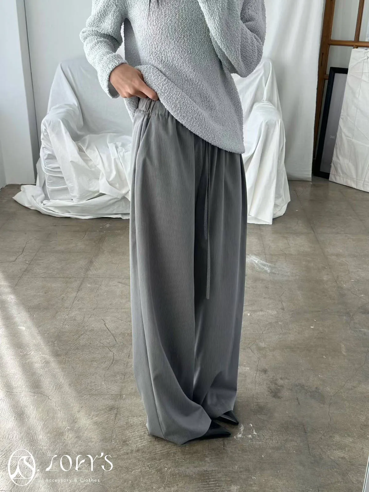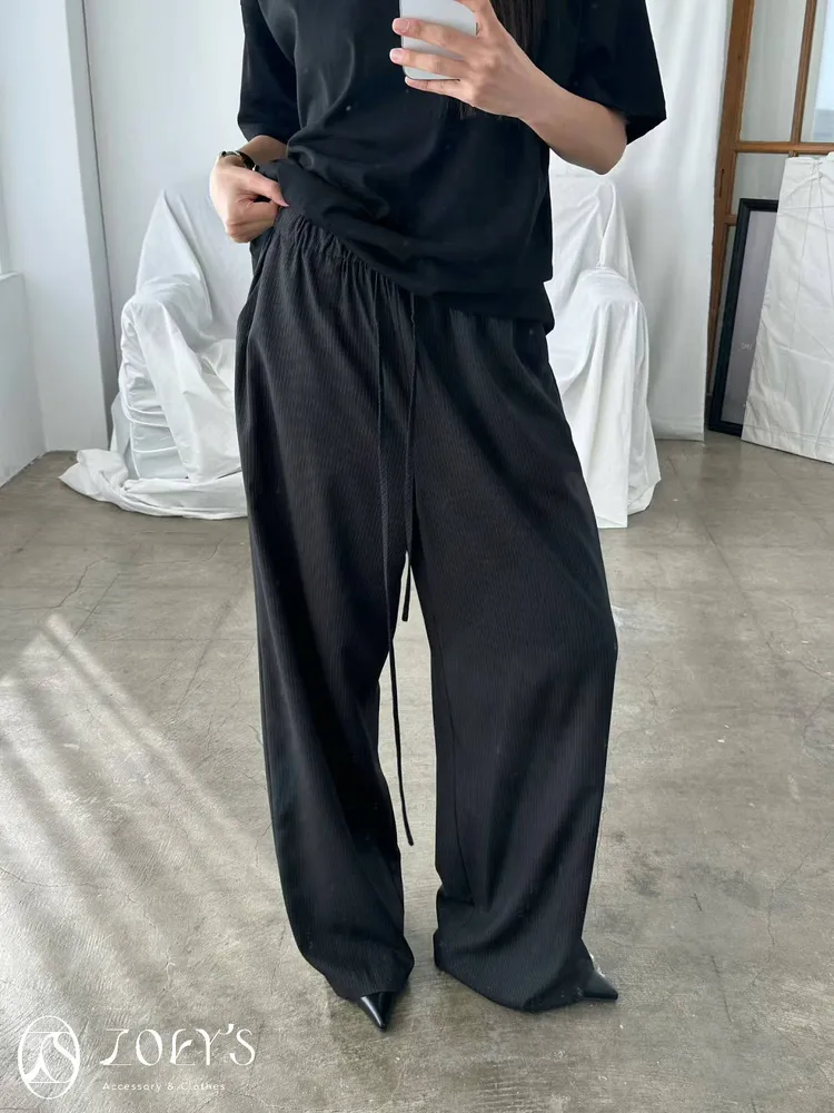 正韓 極細直線抽繩西裝寬褲 黑/灰
