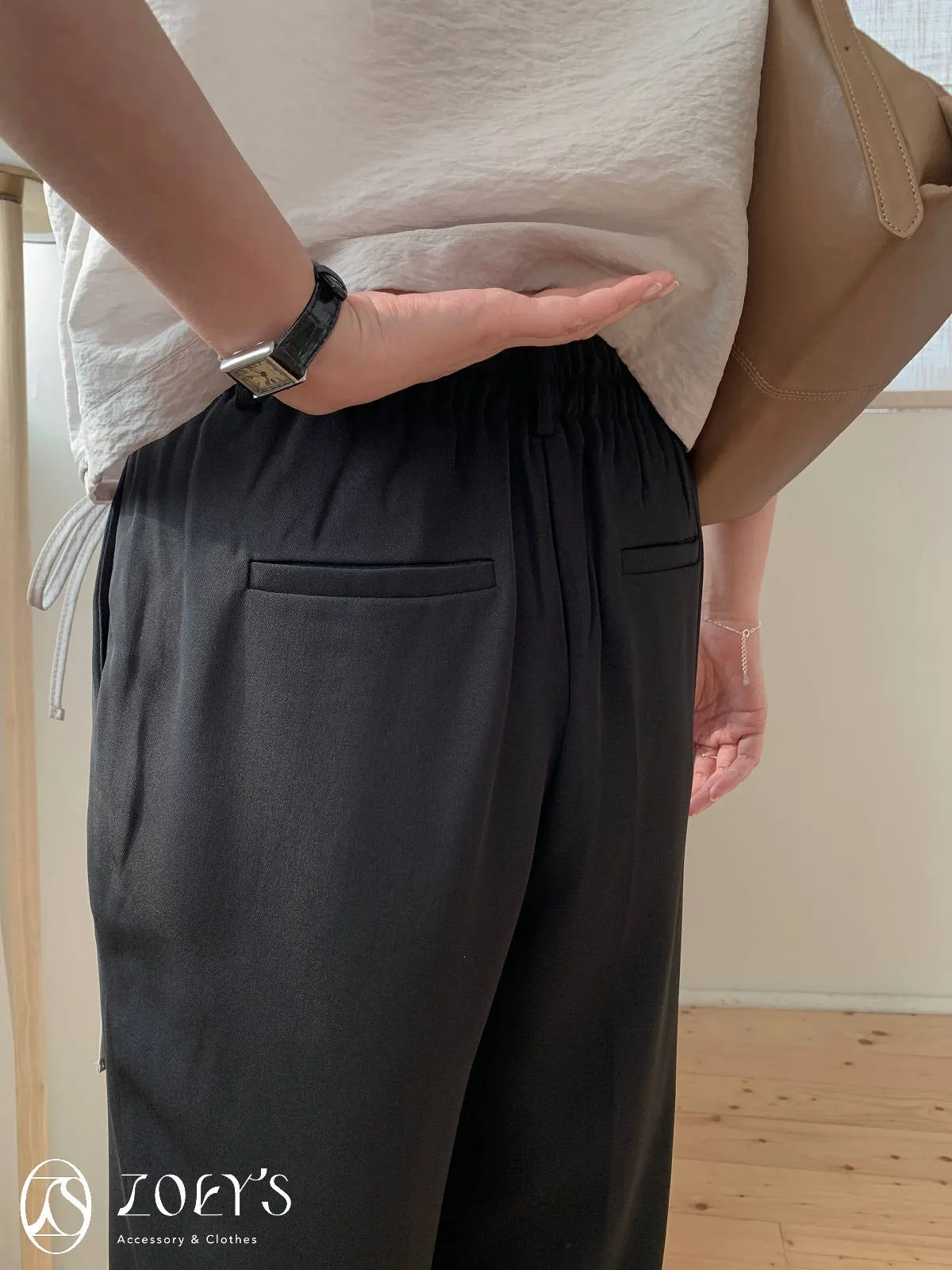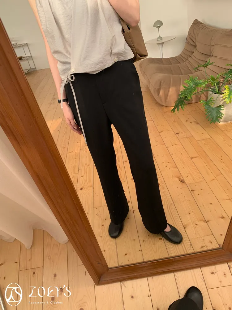 正韓 不易皺後鬆緊薄西裝褲 黑/咖 S/M/L/XL