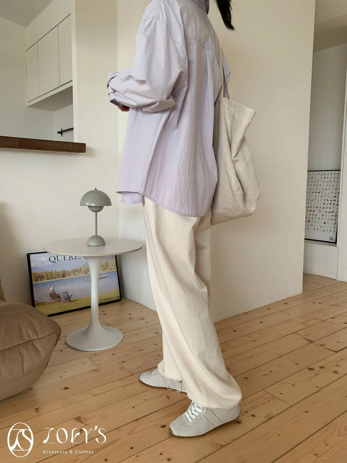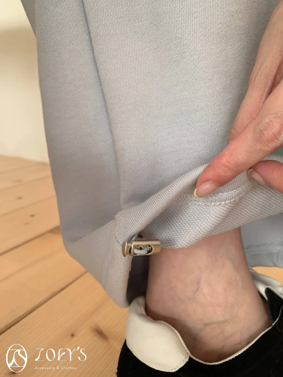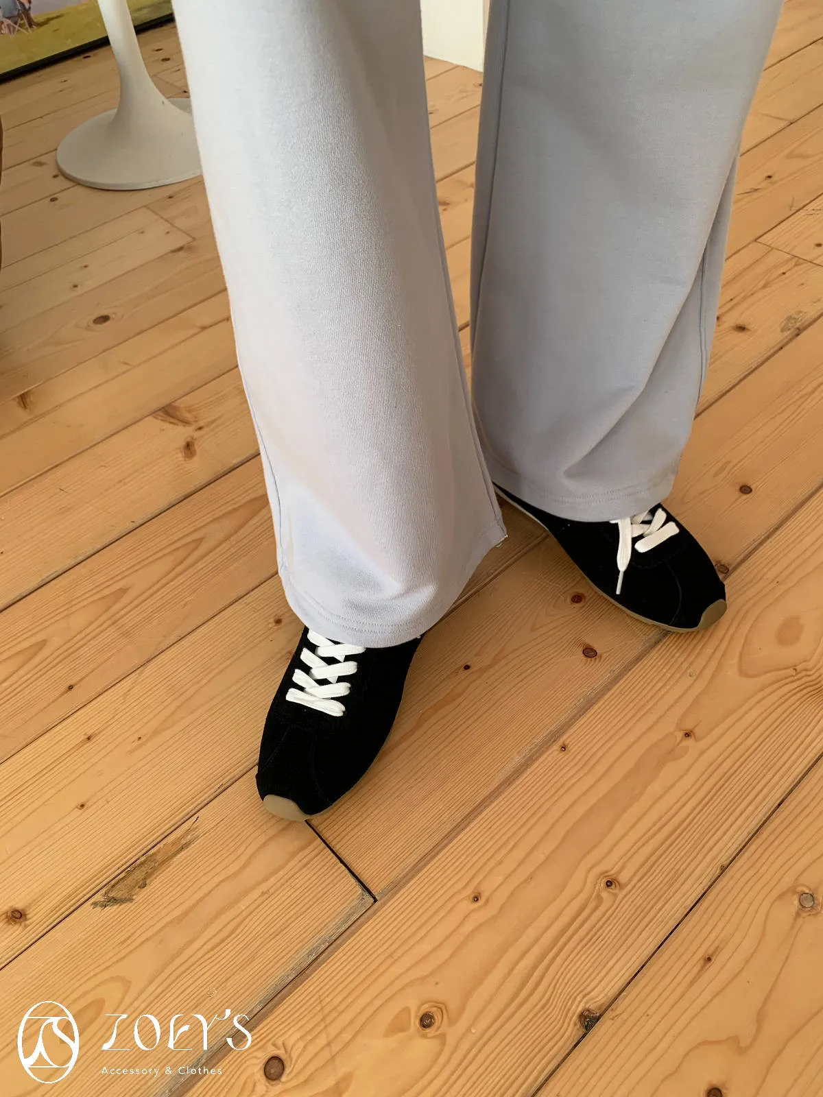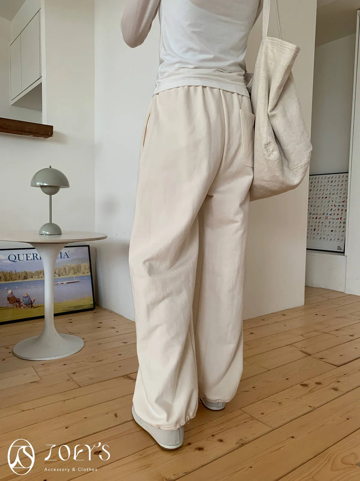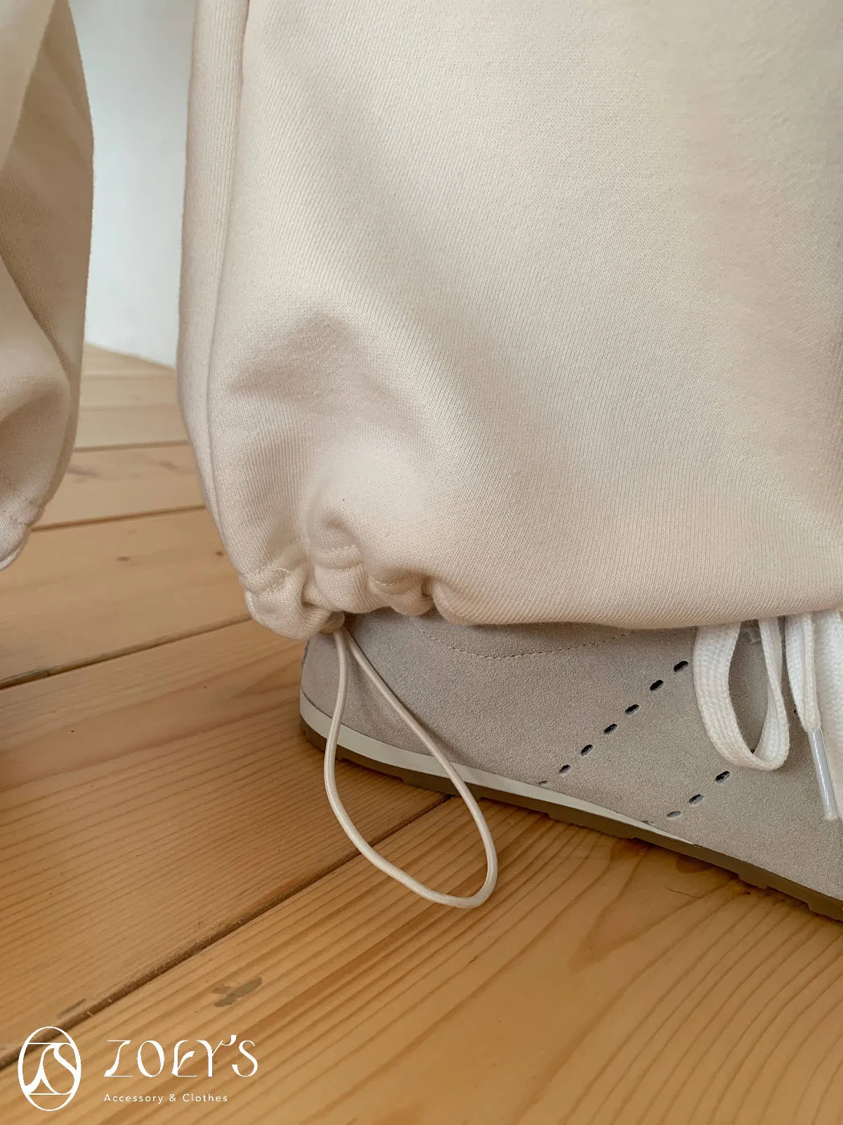 正韓 舒適抽繩棉長褲 水藍/米白