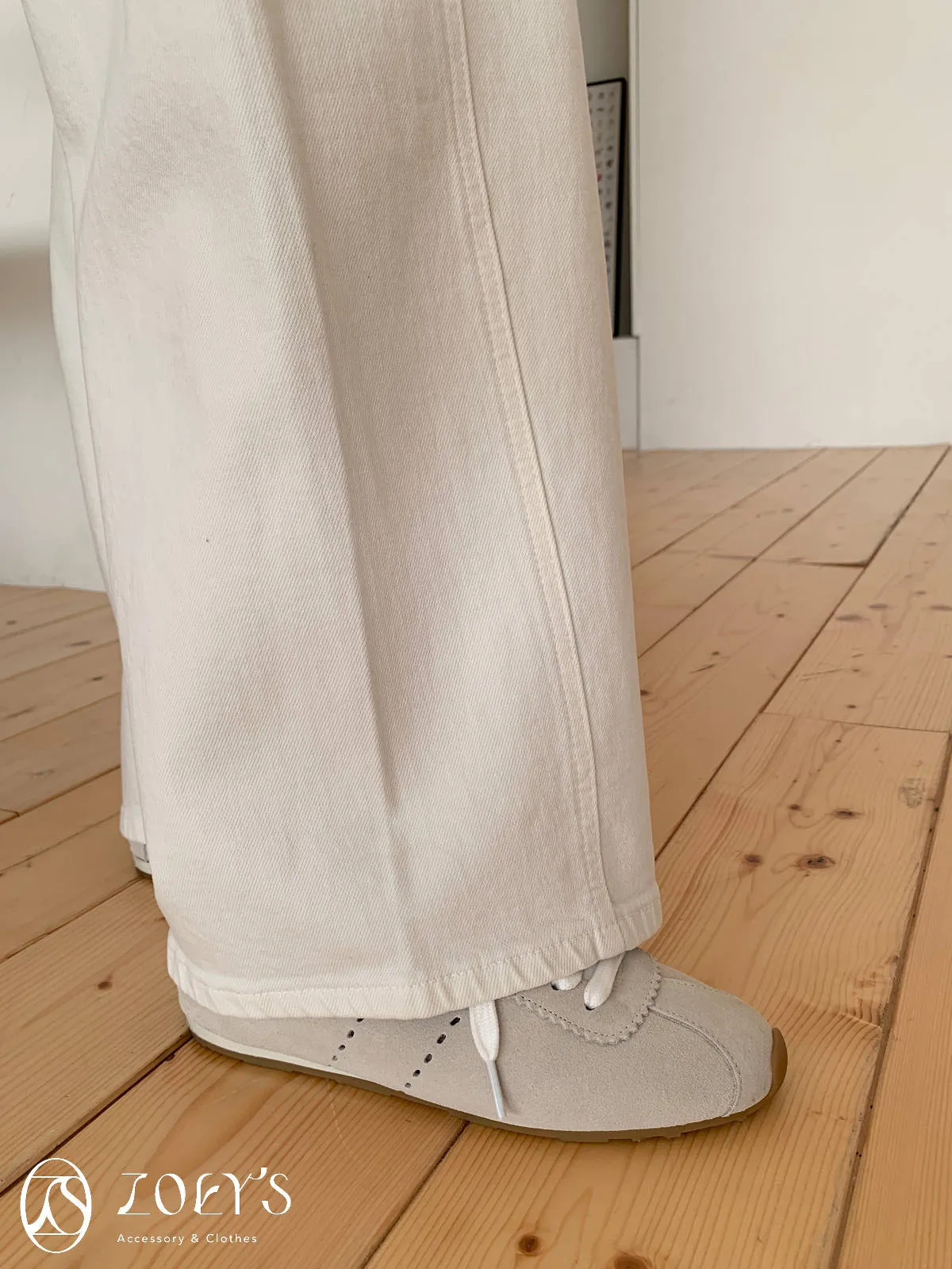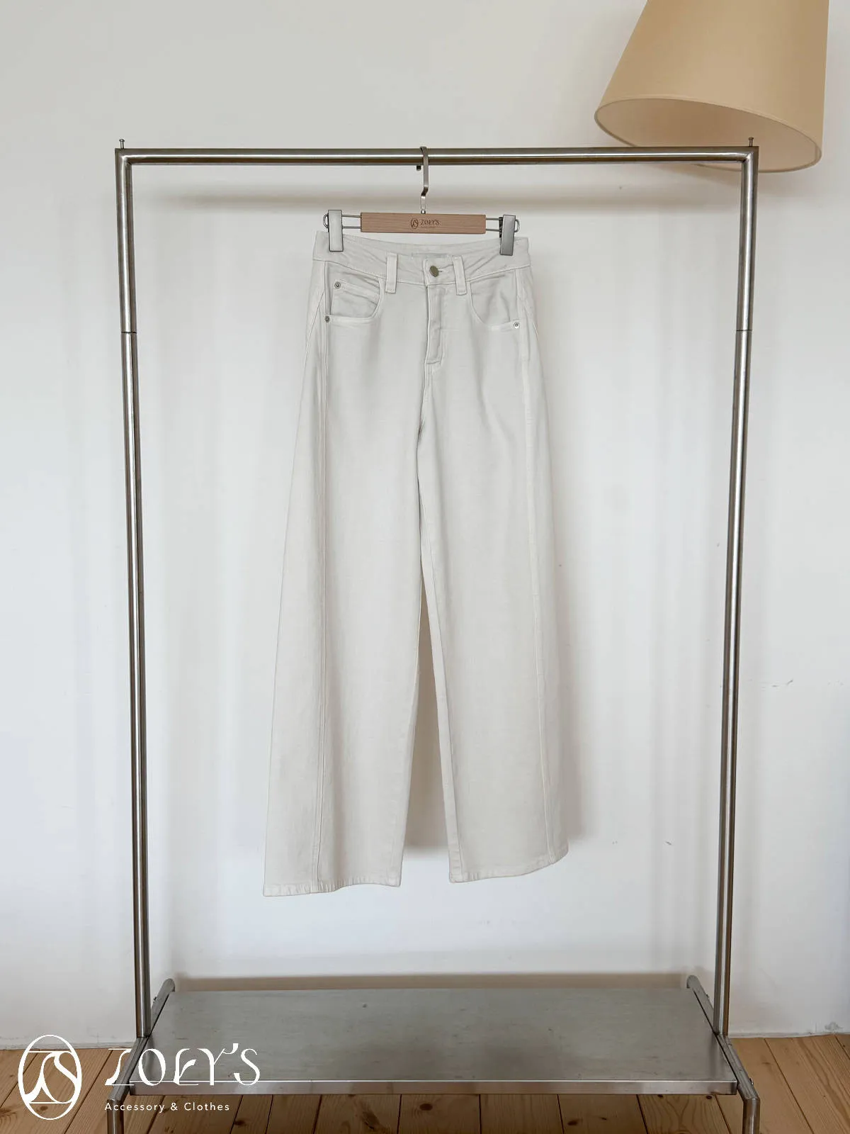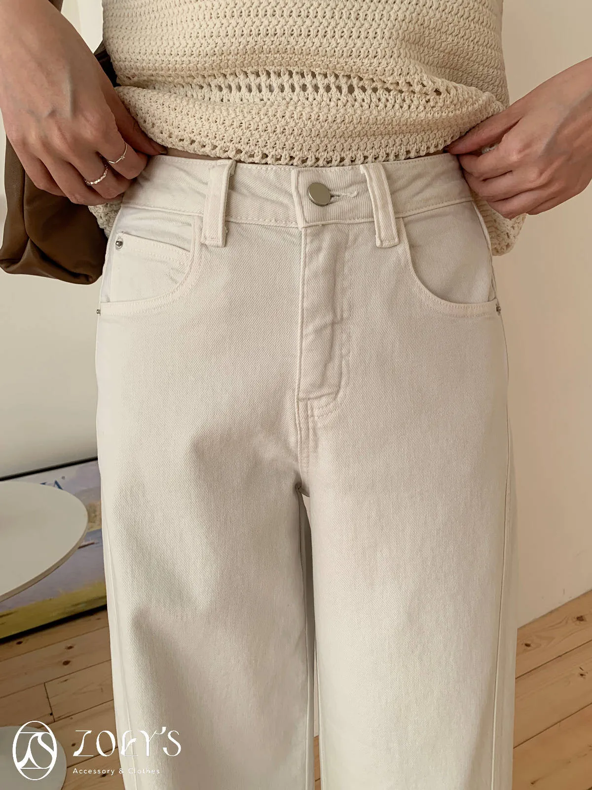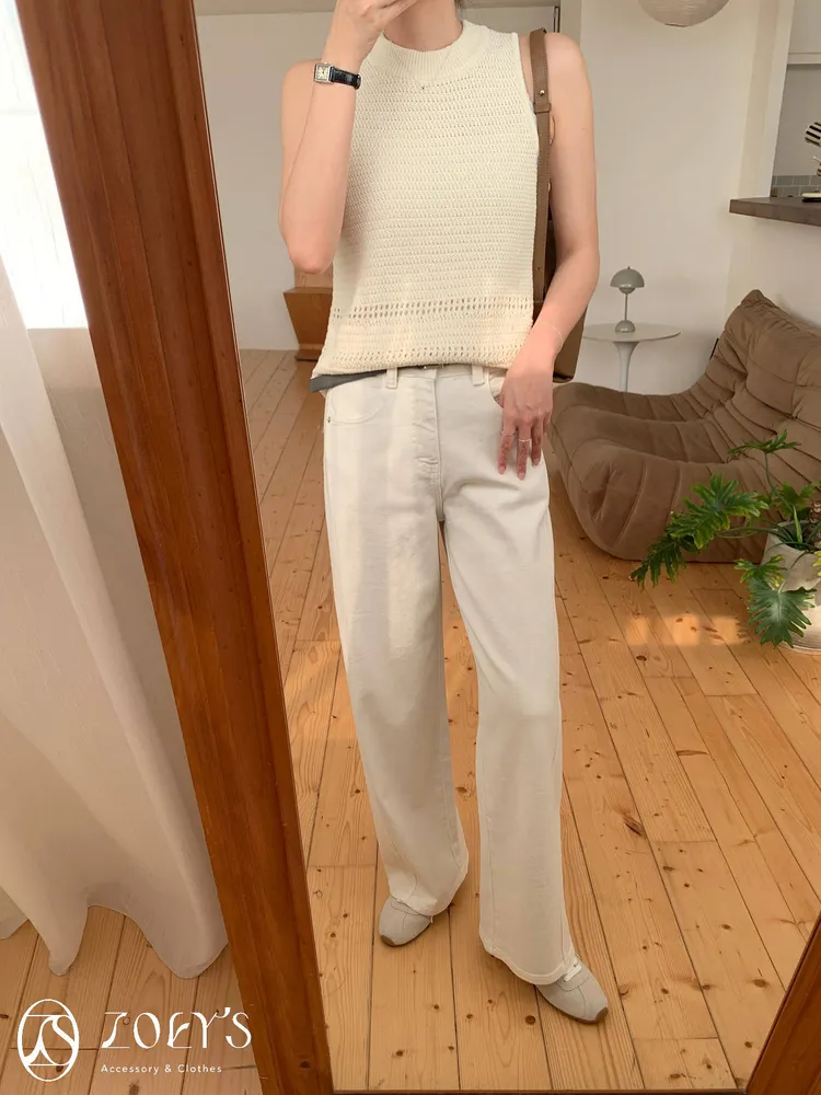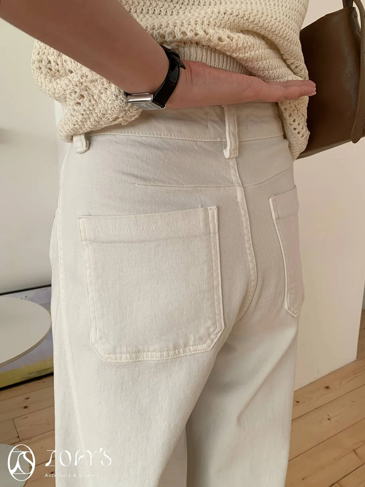 正韓 立體剪裁米白牛仔褲 S/M/L