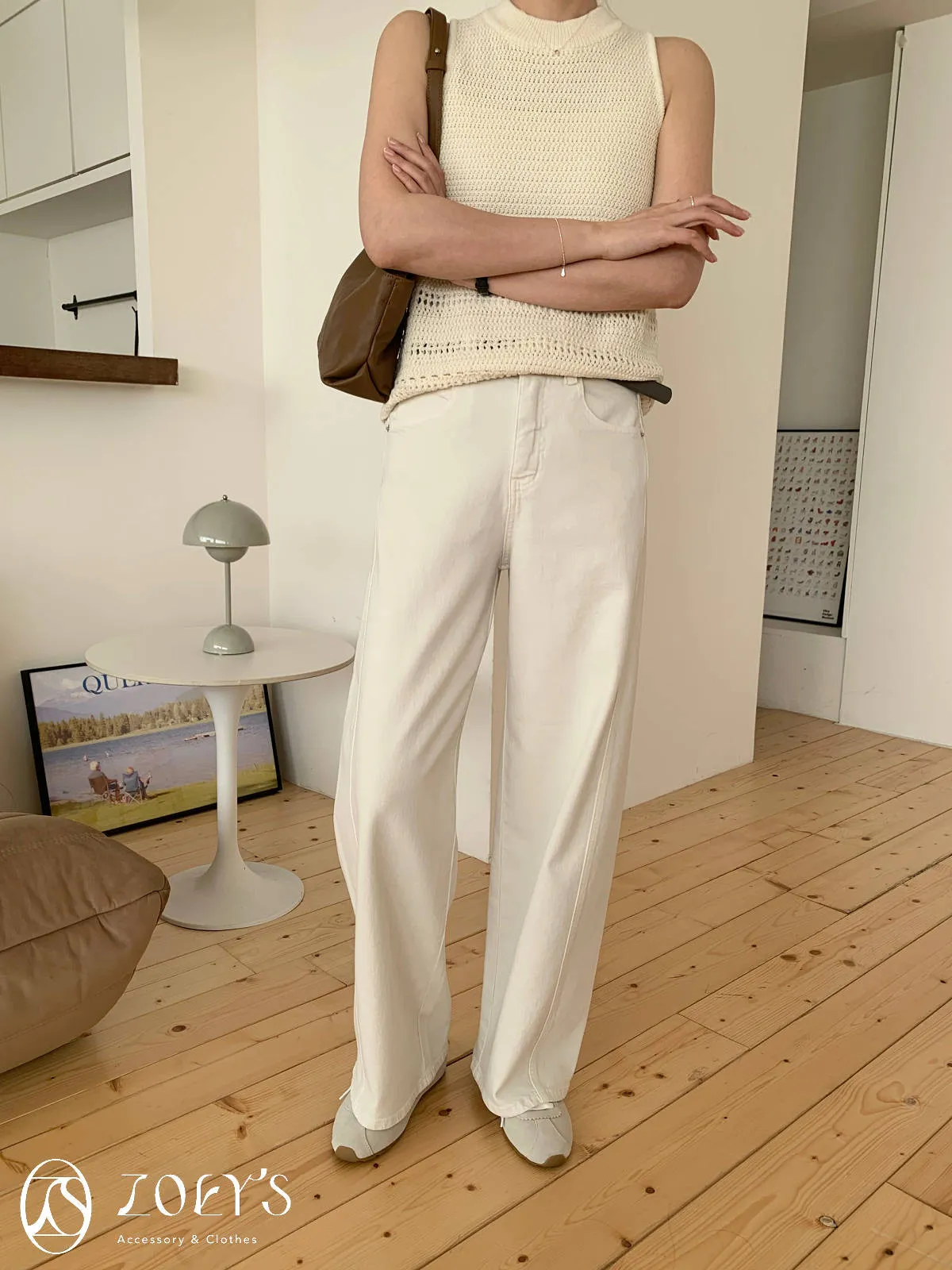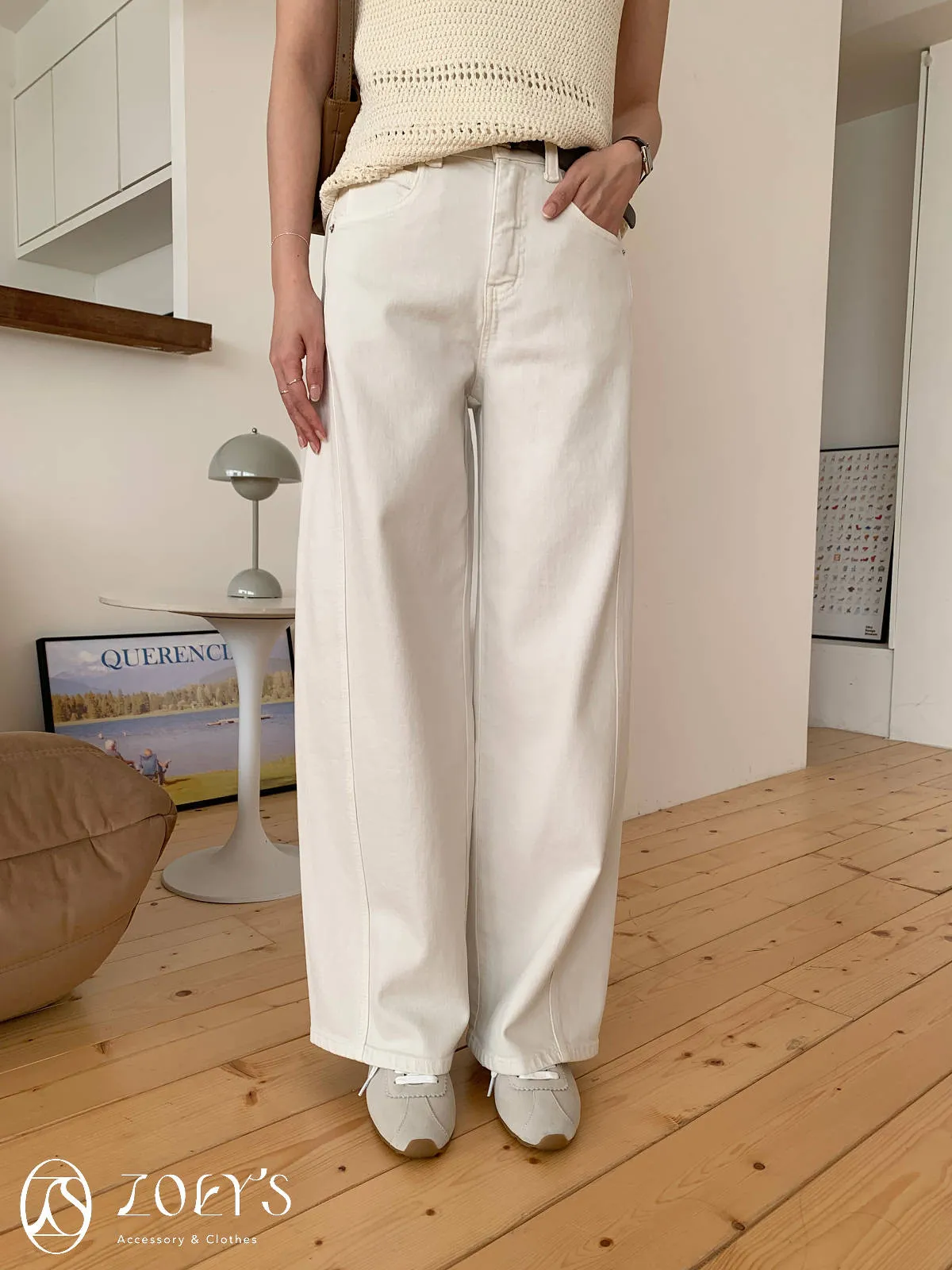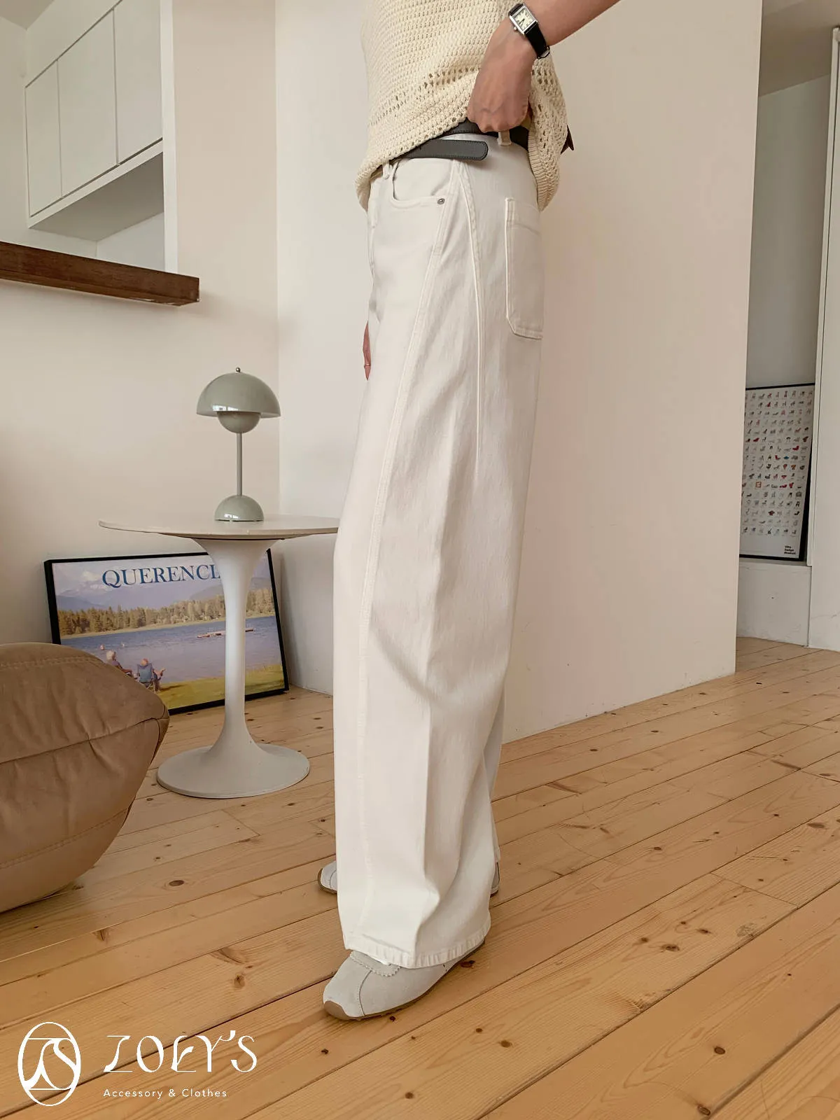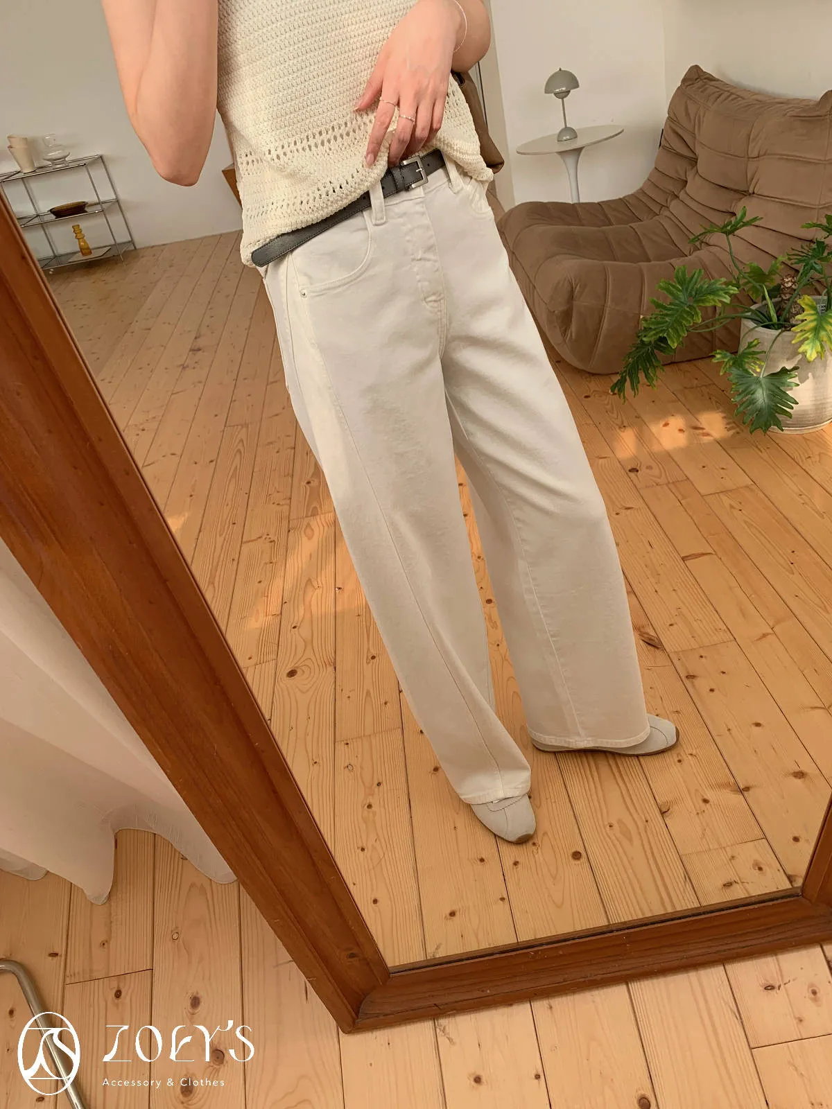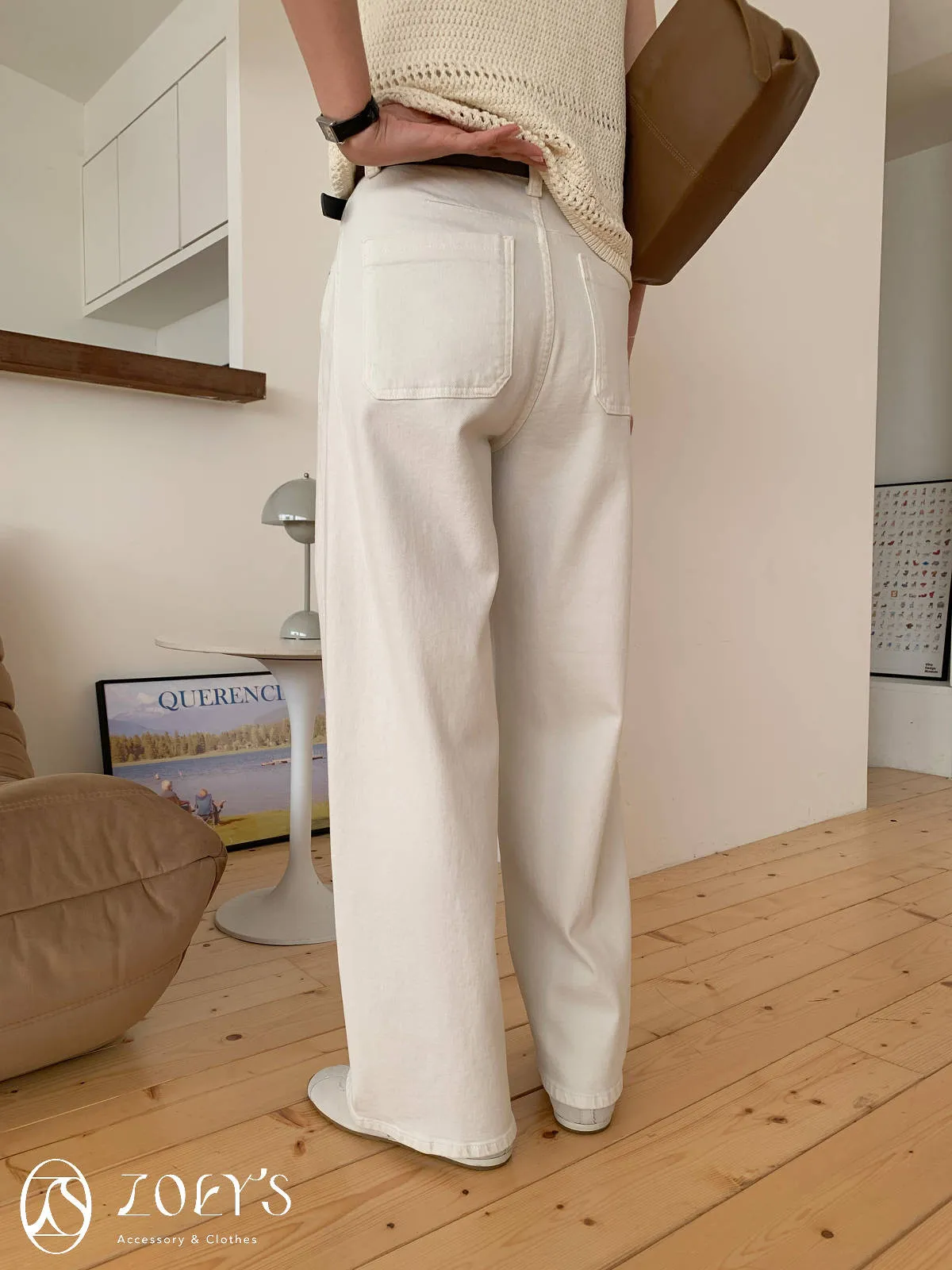 正韓 立體剪裁米白牛仔褲 S/M/L