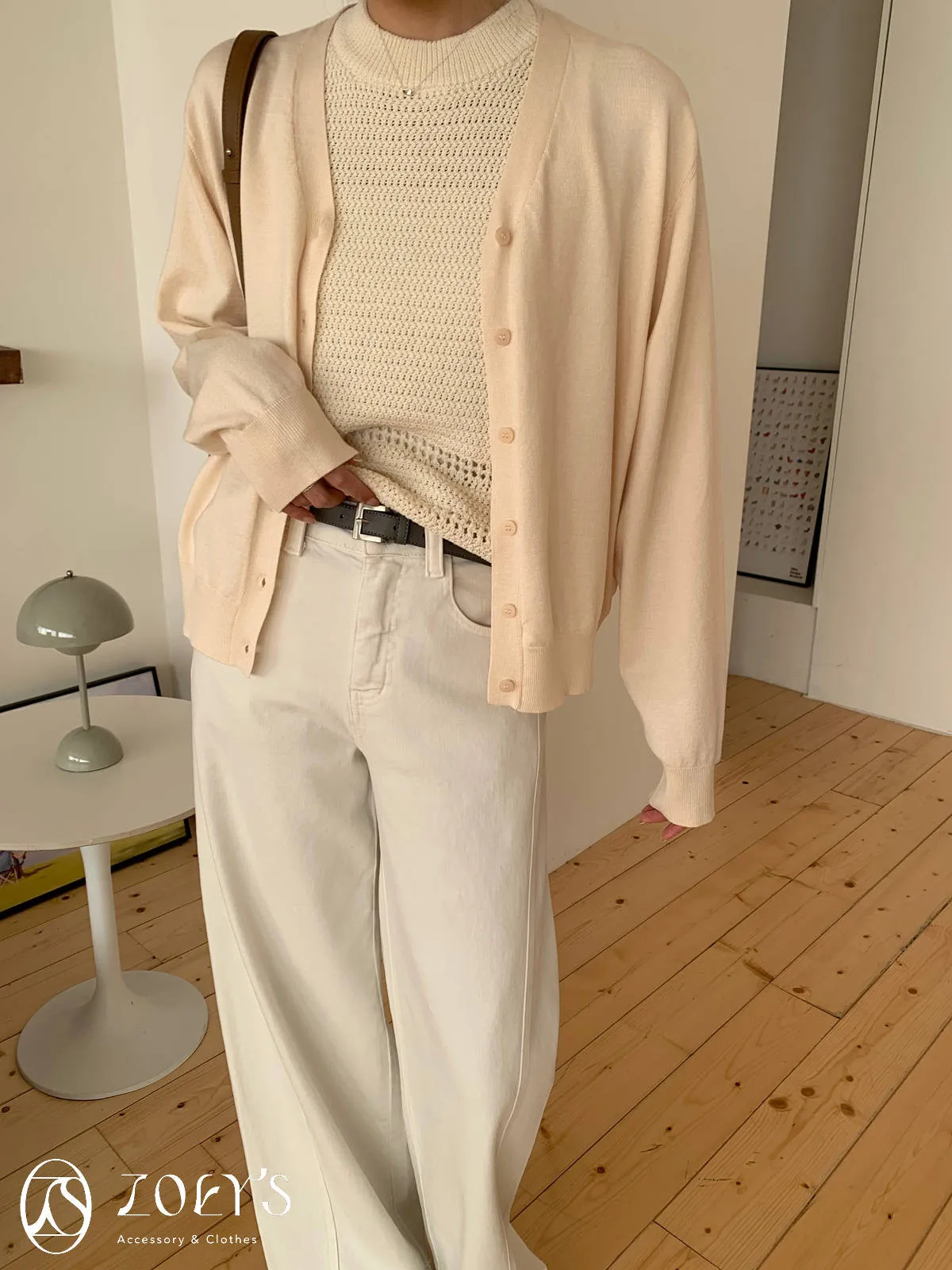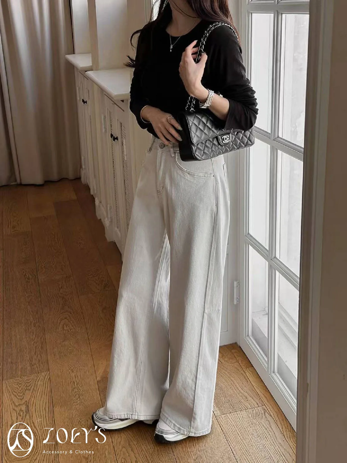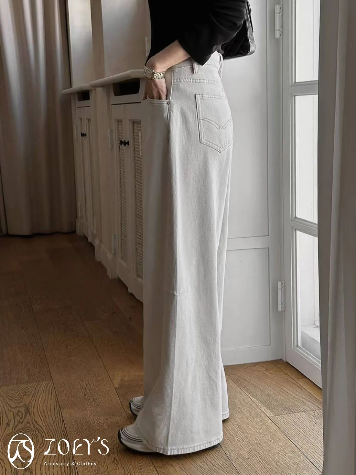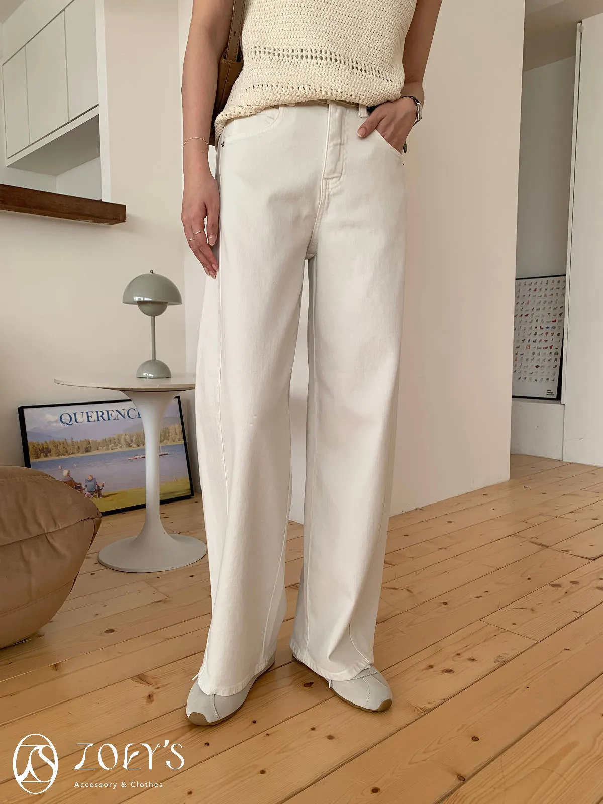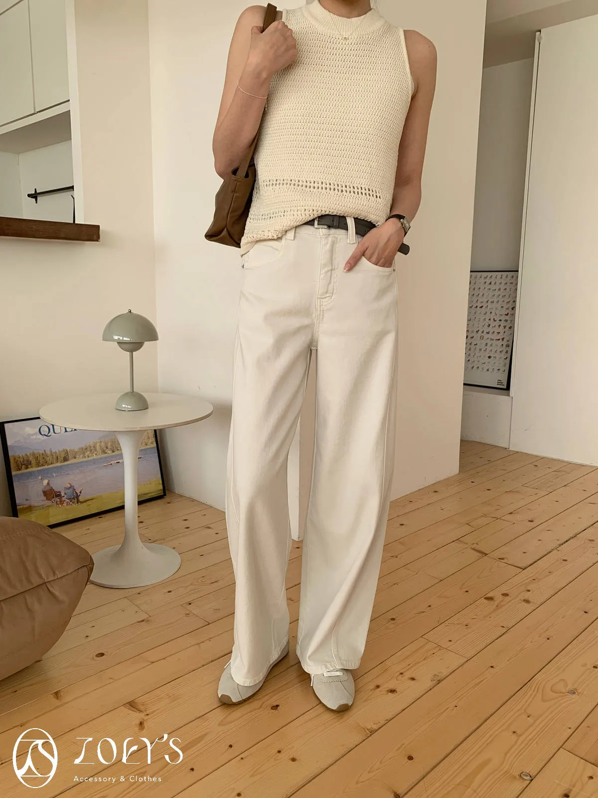 正韓 立體剪裁米白牛仔褲 S/M/L