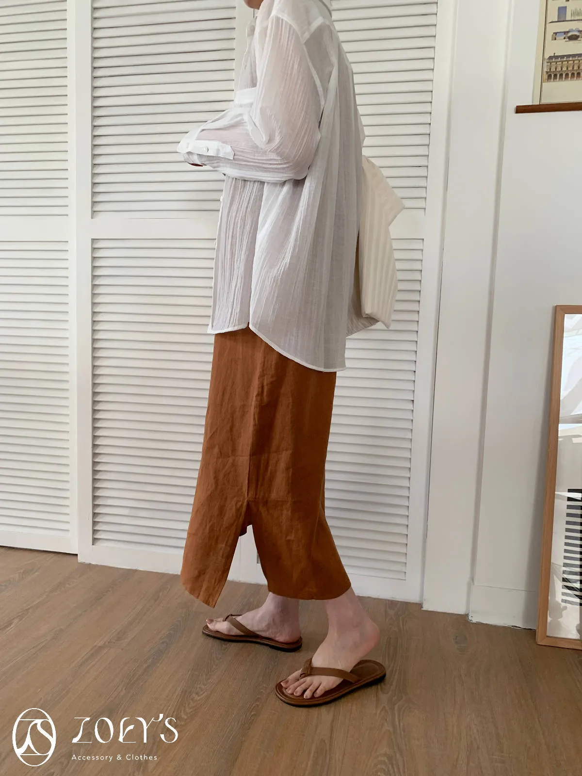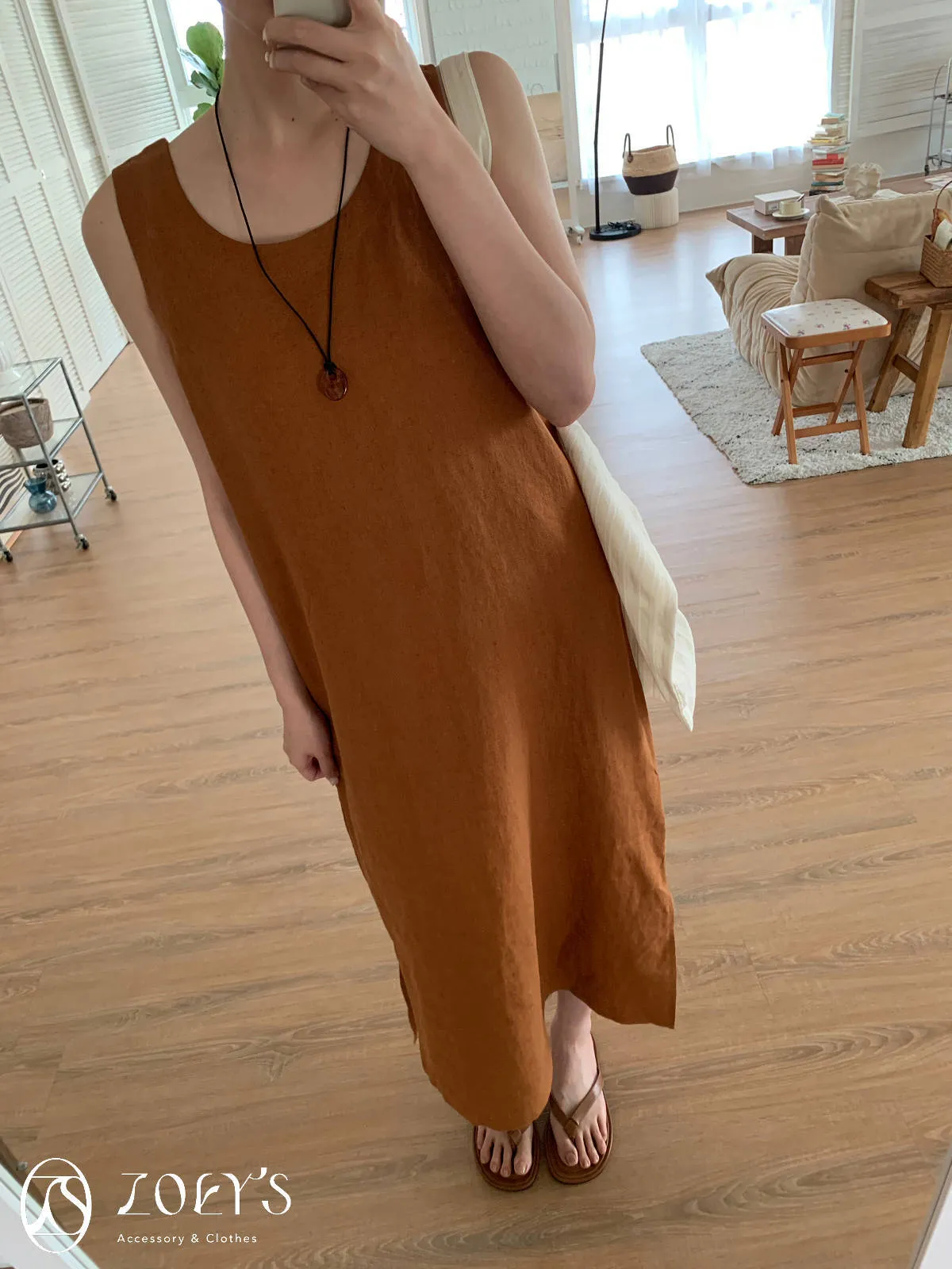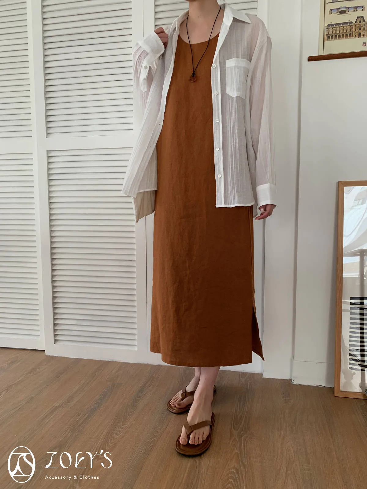 整件包含腋下都是寬寬鬆鬆有餘裕的,搭配輕涼布料和下襬開衩