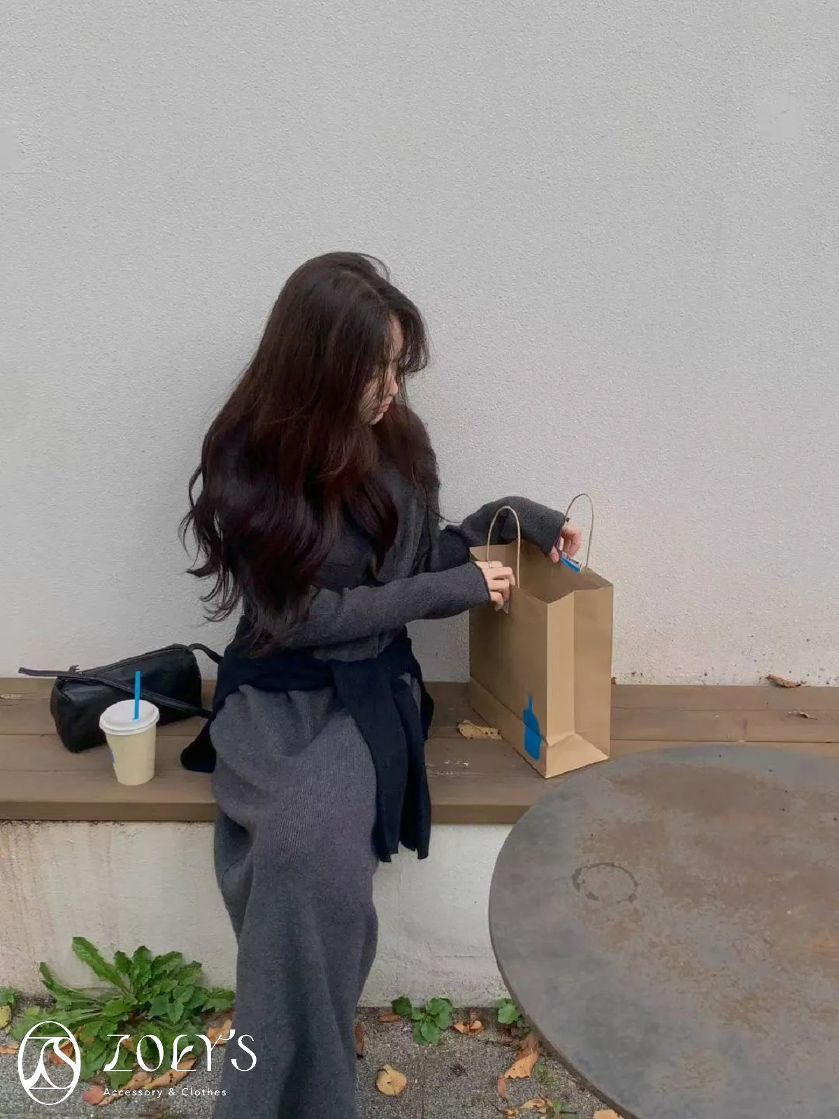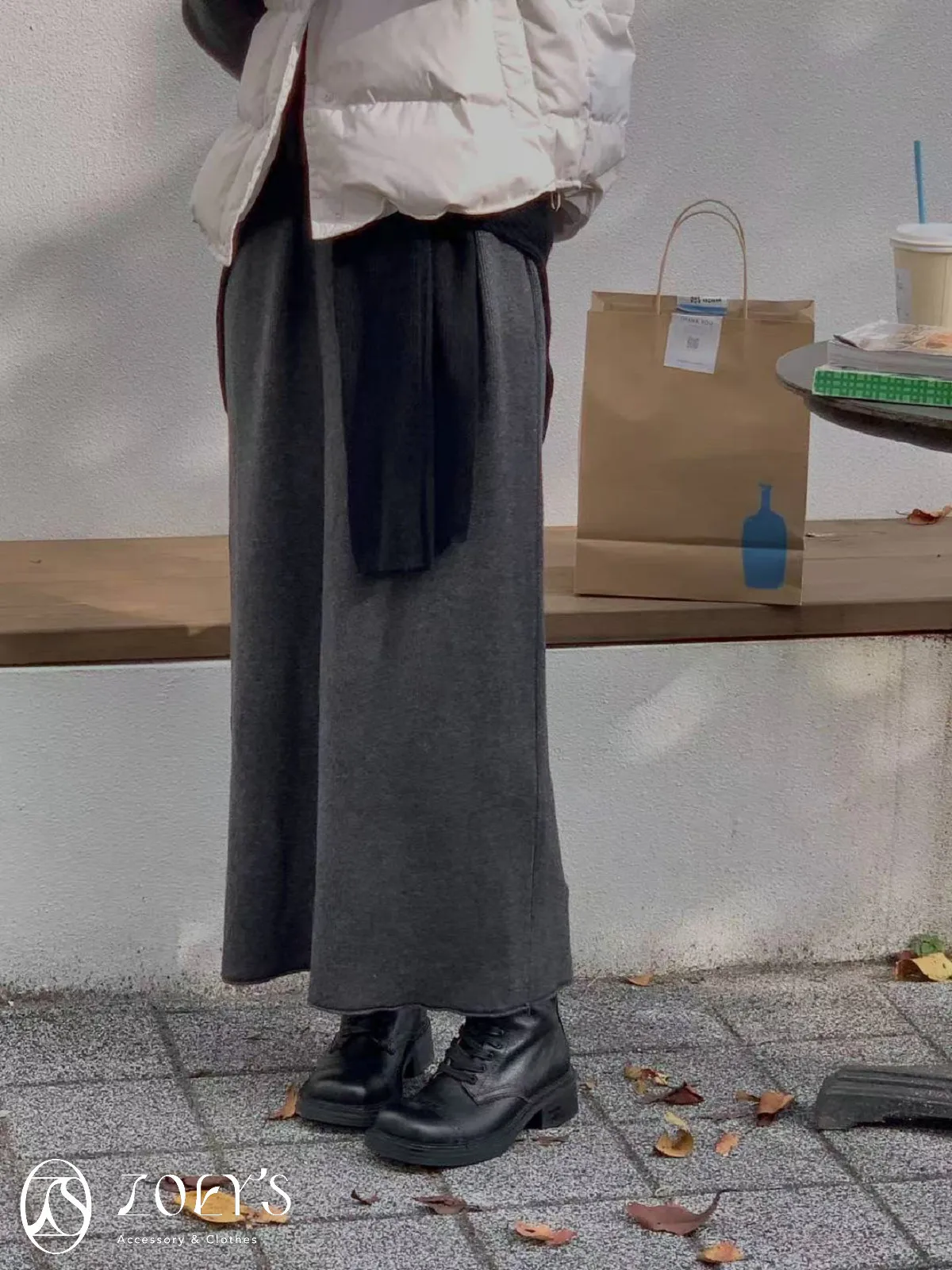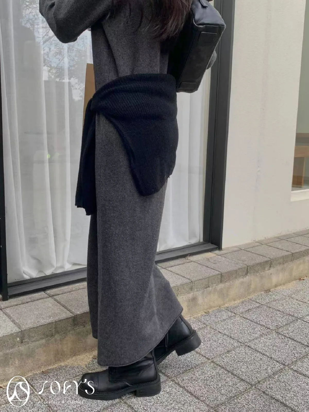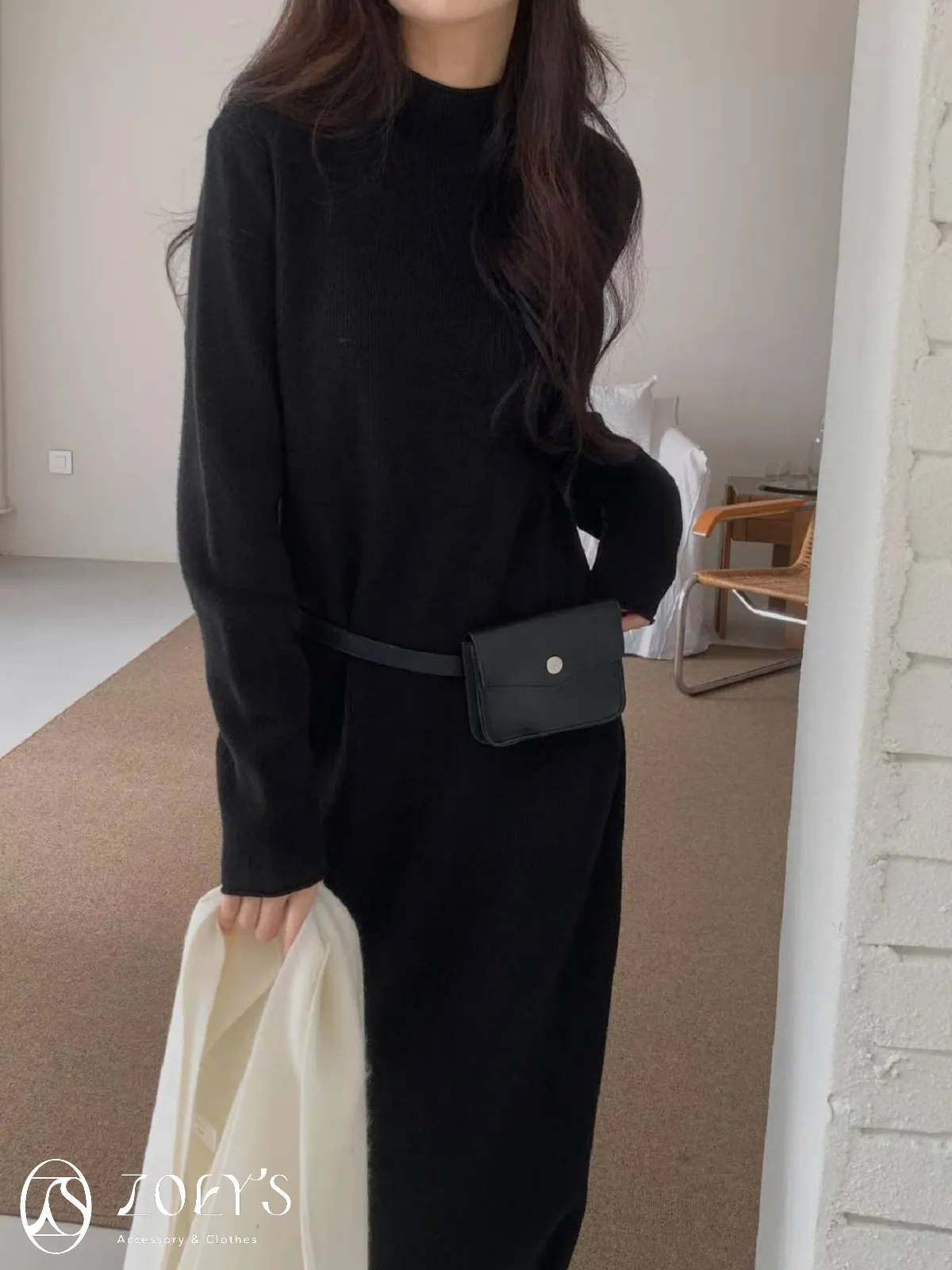 正韓 小立領羊毛連身長洋裝 黑/米/深灰