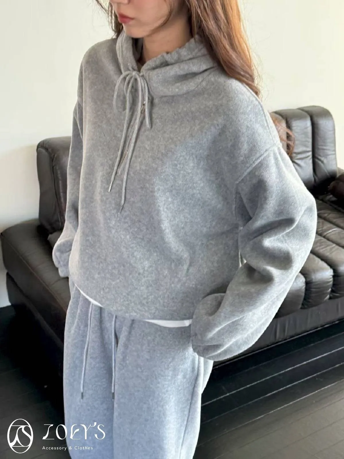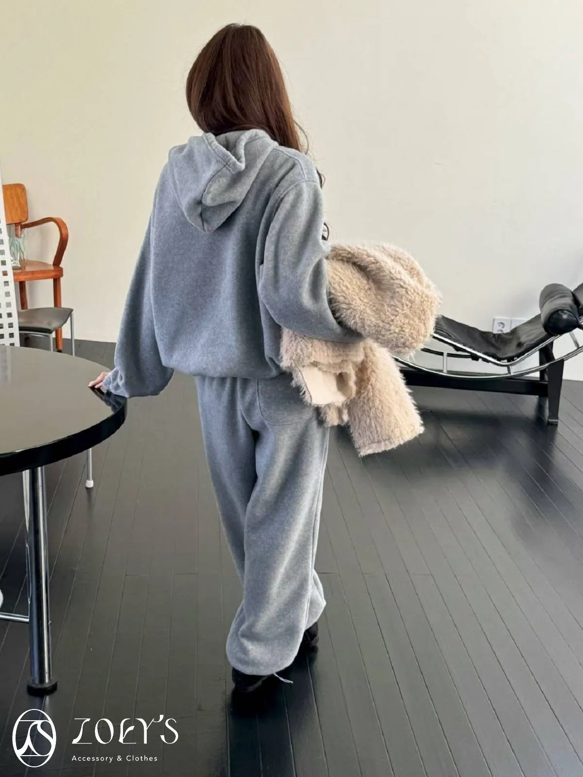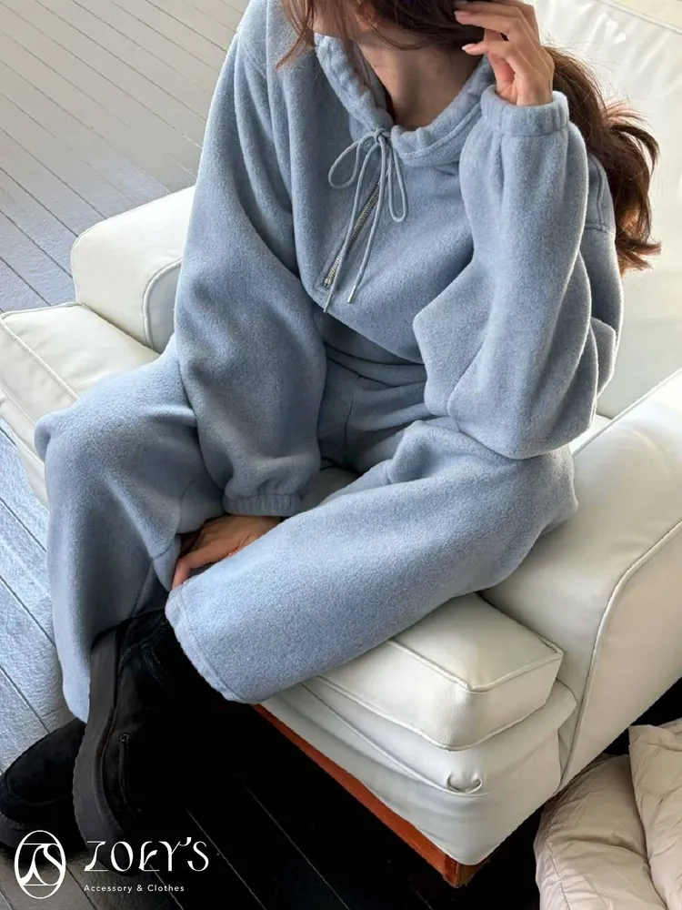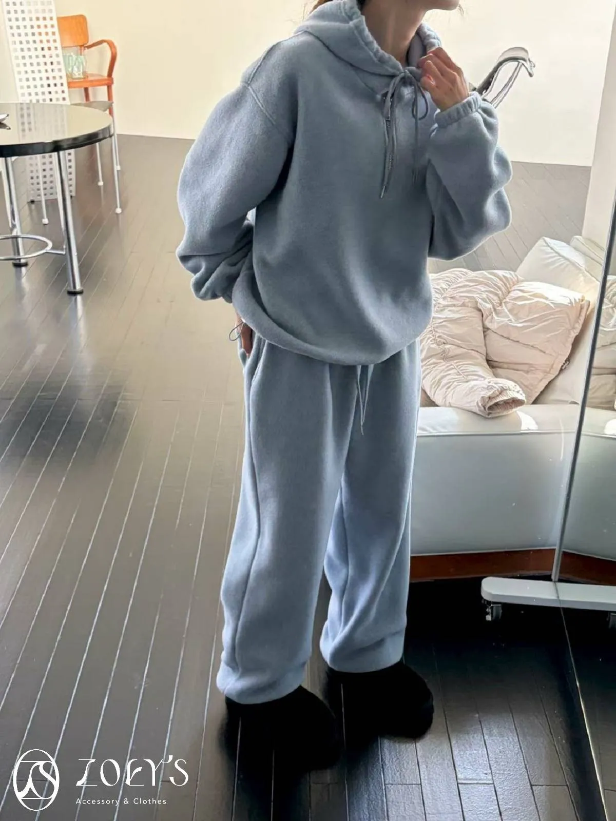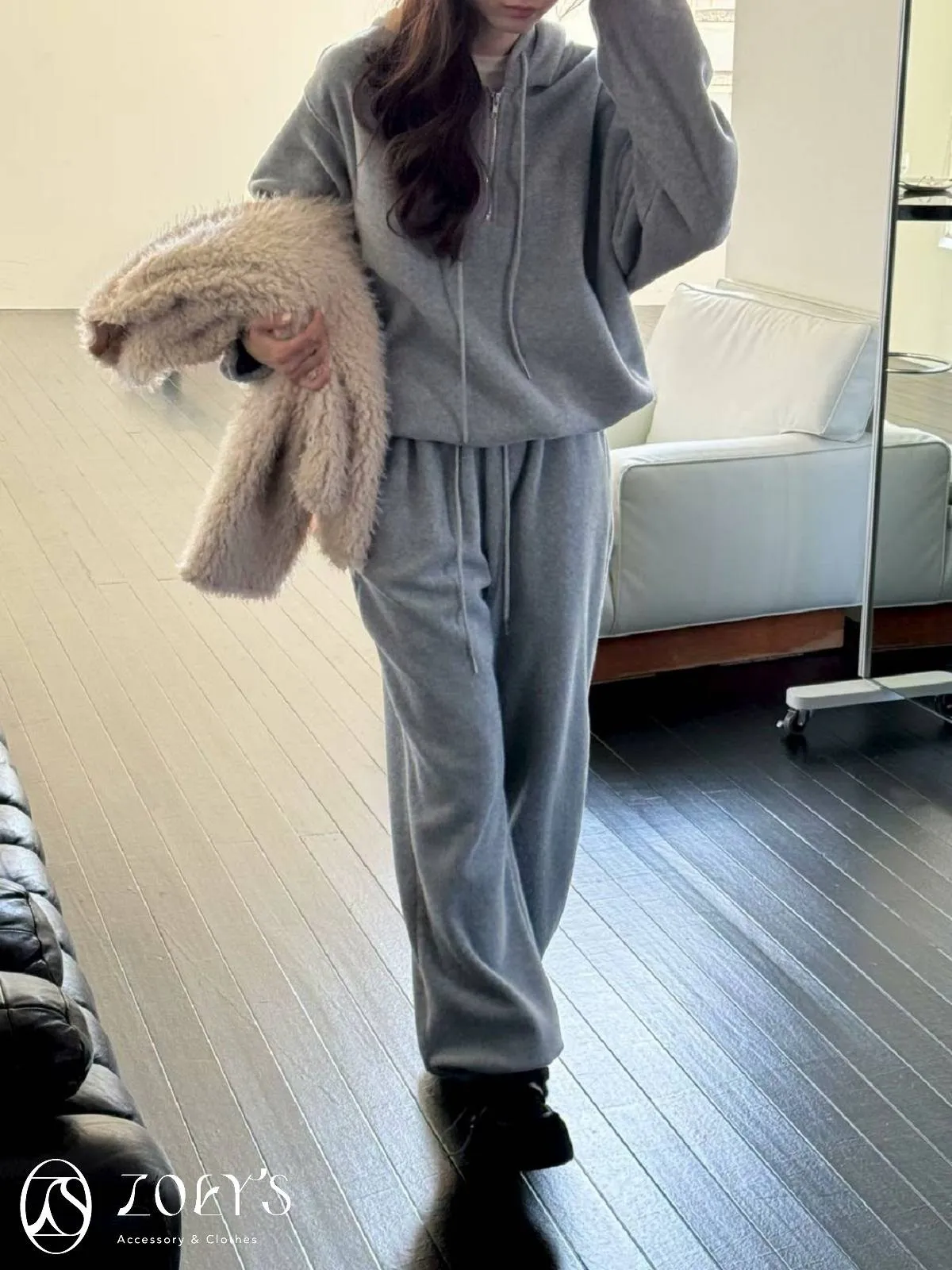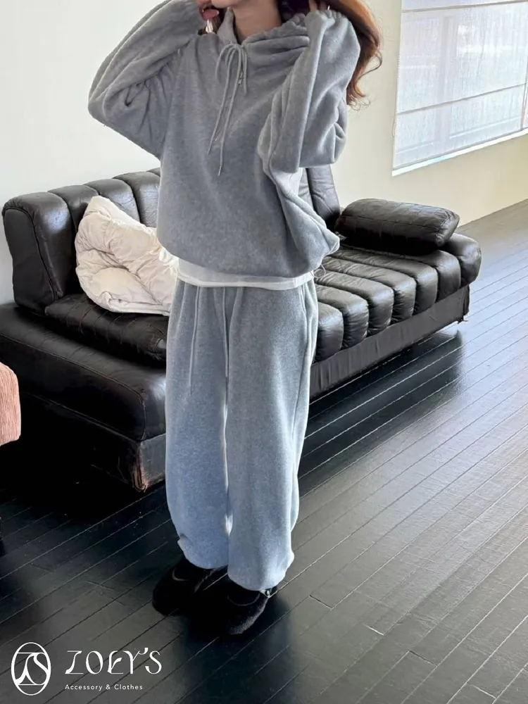 正韓 療癒觸感連帽上衣&長褲SET 藍/深灰/淺灰